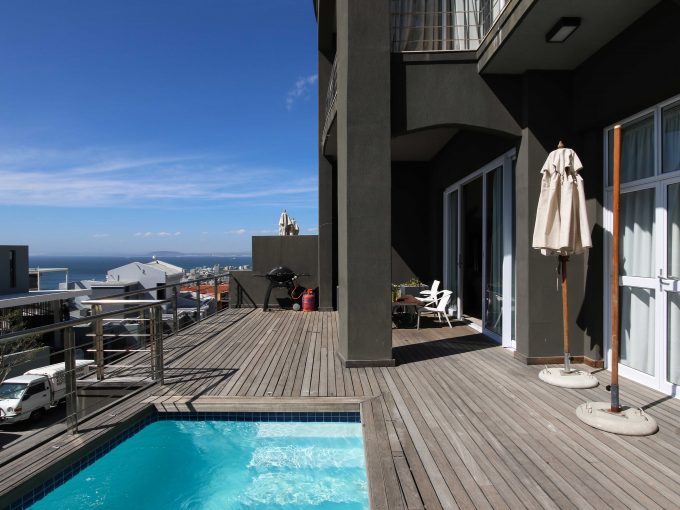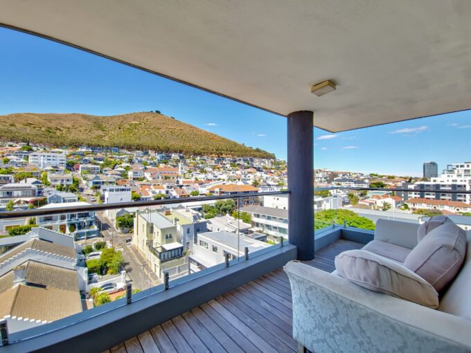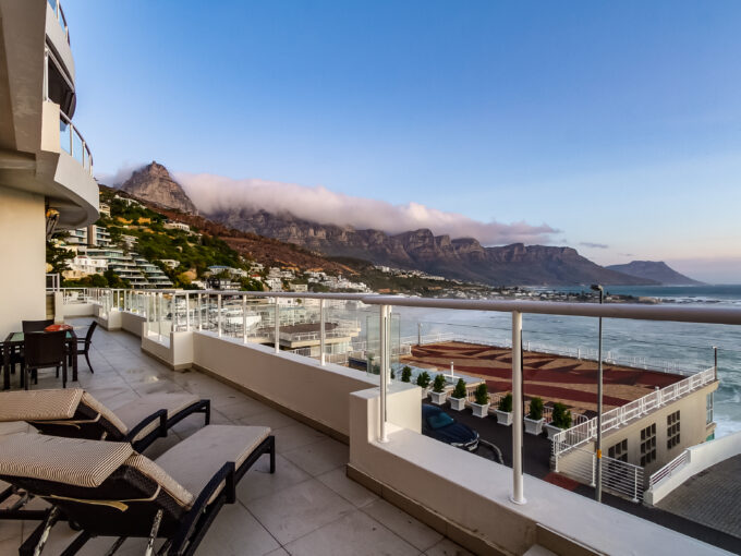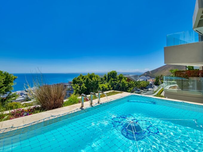 Gorgeous contemporary top-floor corner apartment with impressive panoramic mountain, ocean,…