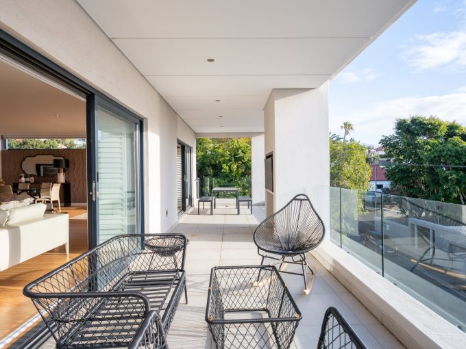 Gorgeous contemporary top-floor corner apartment with impressive panoramic mountain, ocean,…