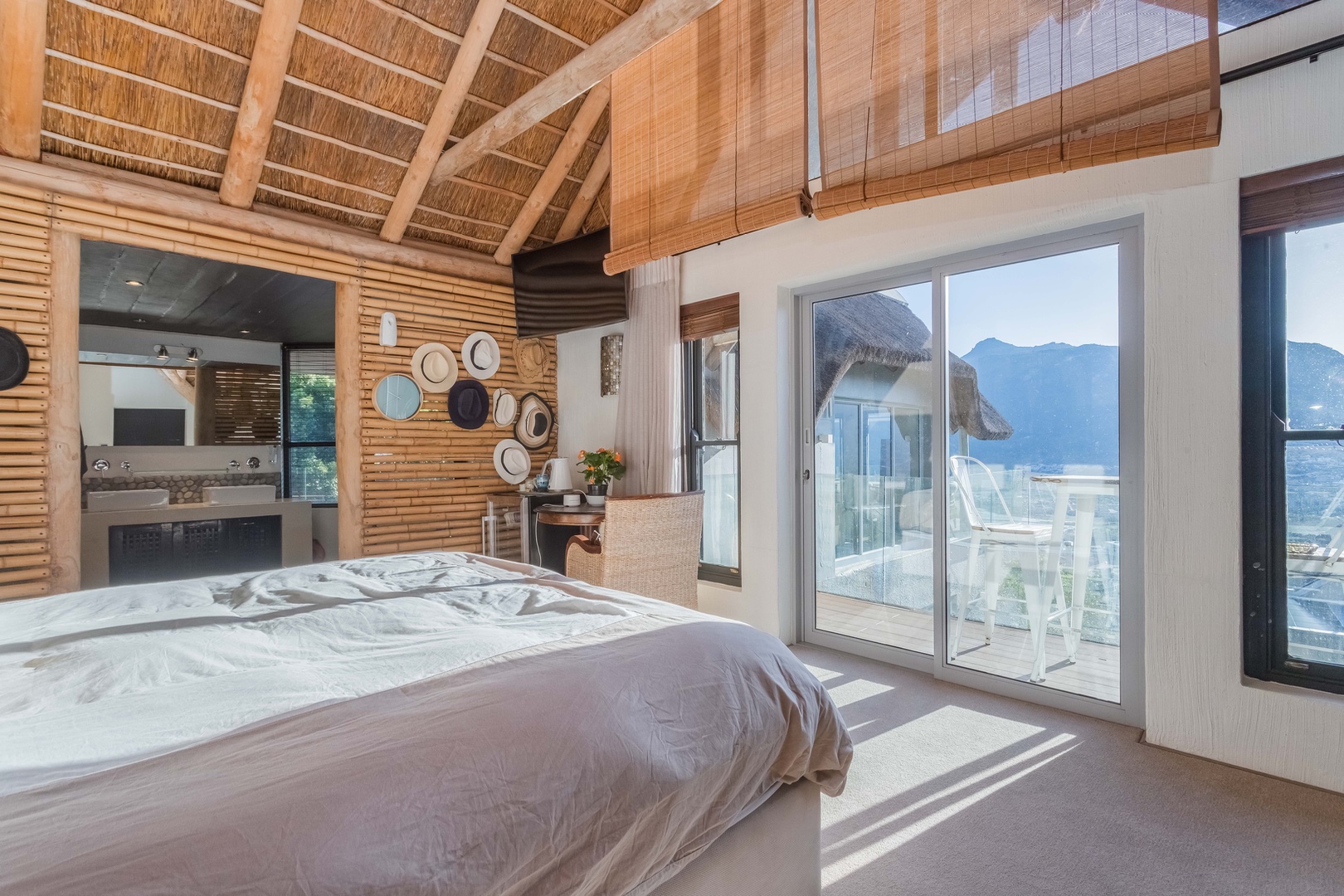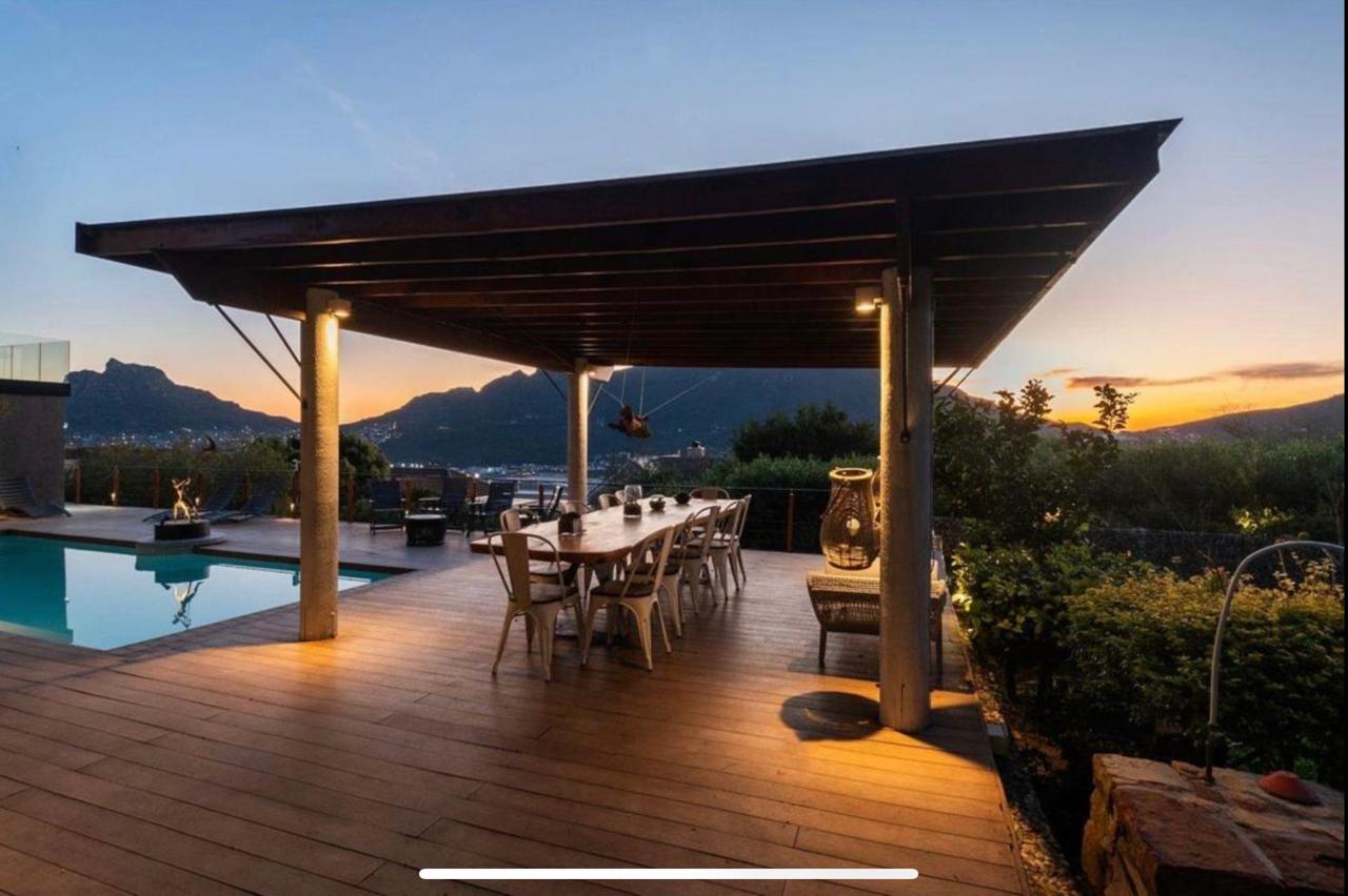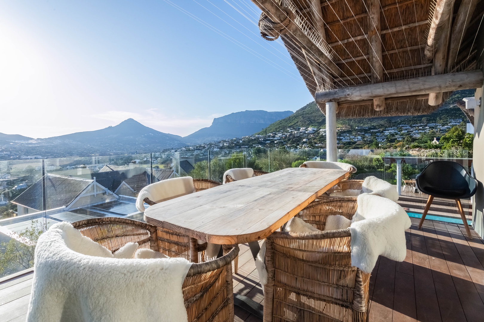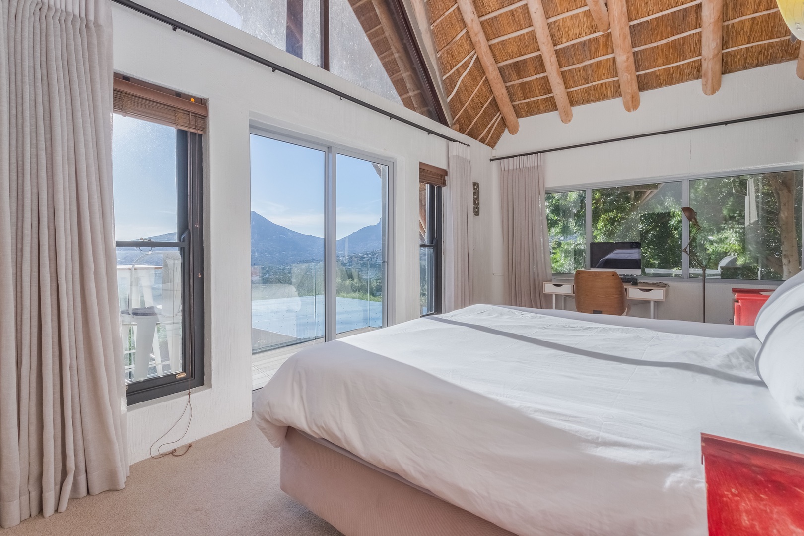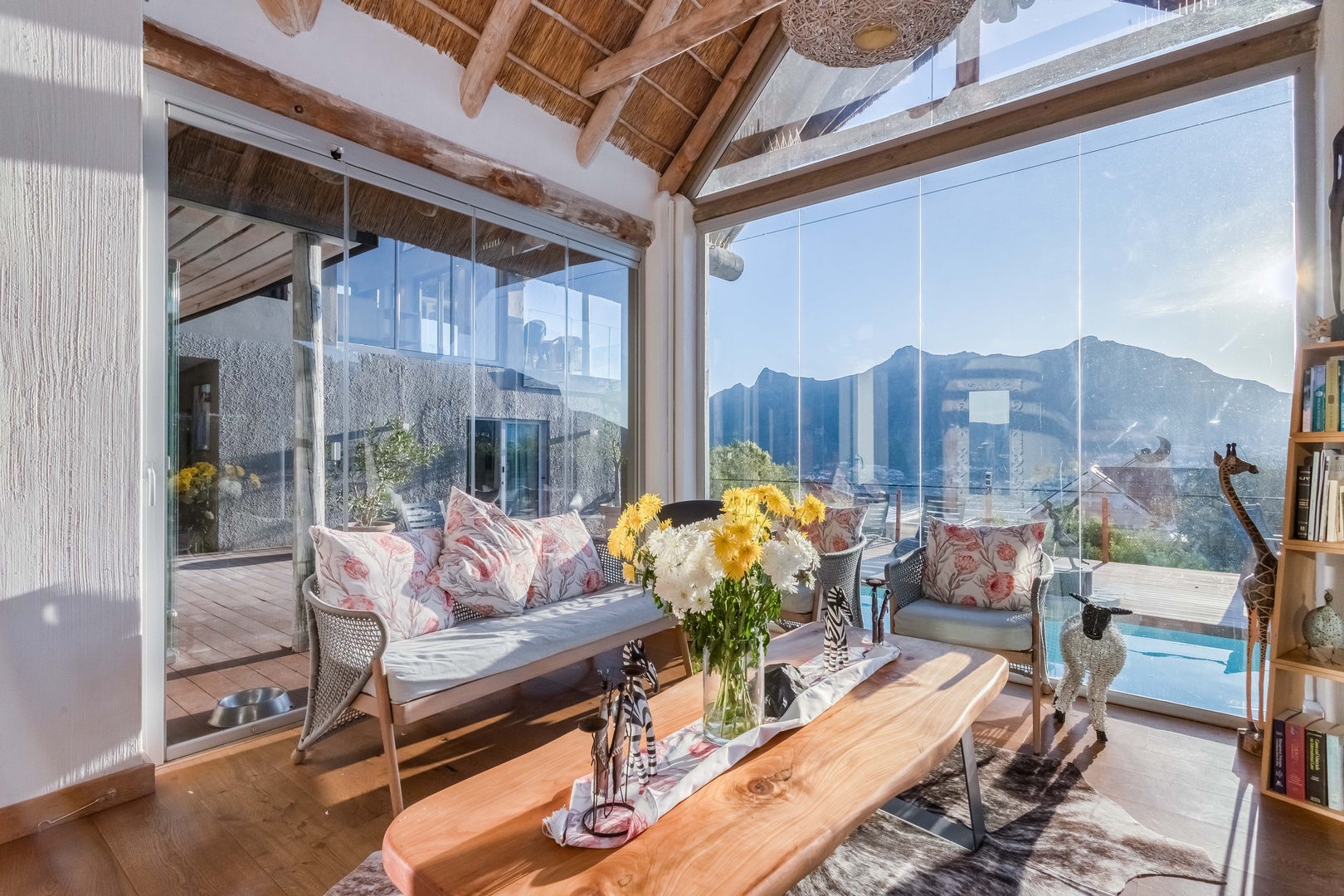 Perfectly positioned in a quiet cul du sac at the top of Hillcrest lies this beautiful home overlooking the azure ocean and white sandy bay backed onto the flourishing fynbos mountain reserve. On entrance you are drawn toward the magnificent views and sparkling pool, on this level there are floor to ceiling glass stacking doors all sides that gives you a sense of being at one with Mother Nature and maximises on the beauty that surrounds this unique home that has been carefully designed by the artistic owner and his architect