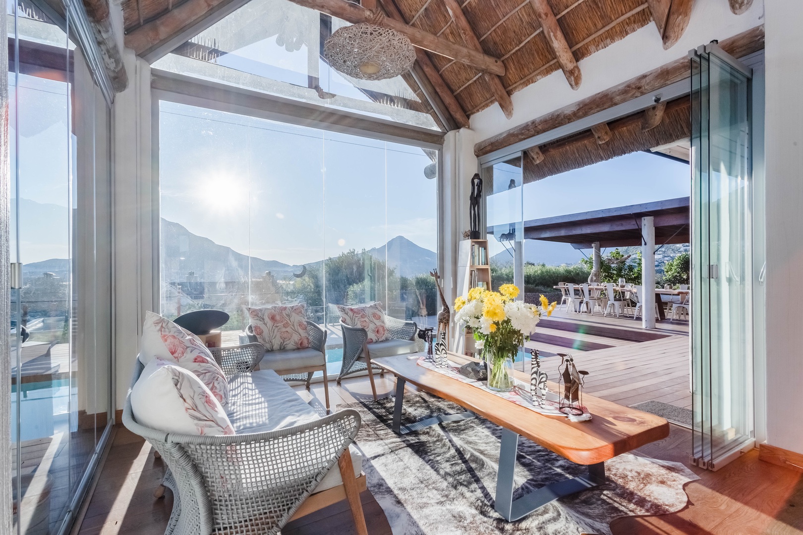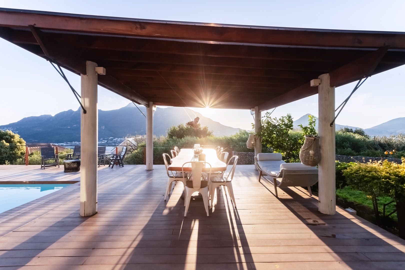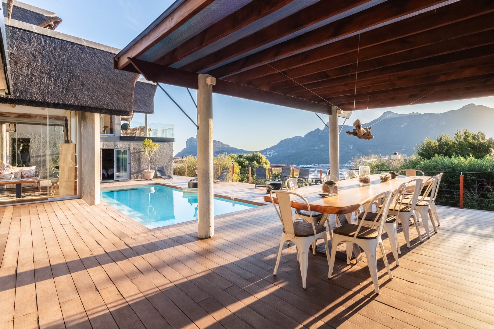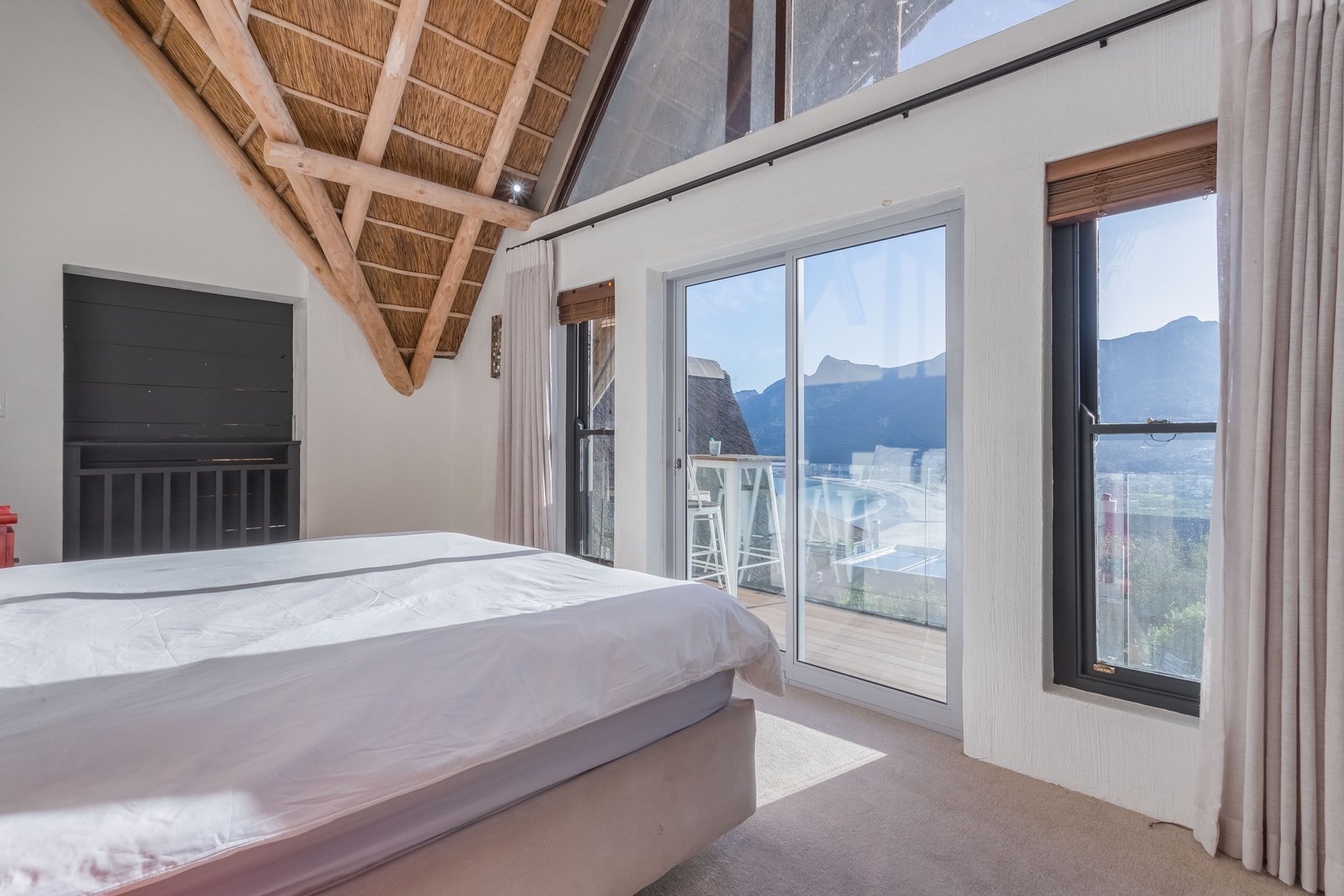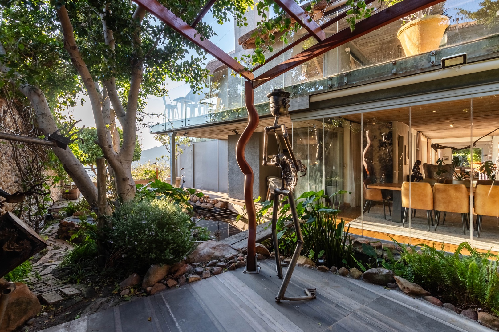 Perfectly positioned in a quiet cul du sac at the top of Hillcrest lies this beautiful home overlooking the azure ocean and white sandy bay backed onto the flourishing fynbos mountain reserve. On entrance you are drawn toward the magnificent views and sparkling pool, on this level there are floor to ceiling glass stacking doors all sides that gives you a sense of being at one with Mother Nature and maximises on the beauty that surrounds this unique home that has been carefully designed by the artistic owner and his architect