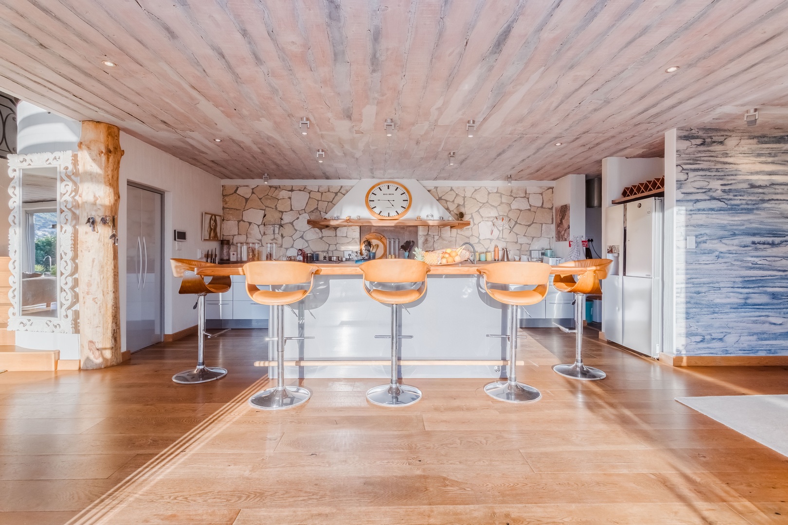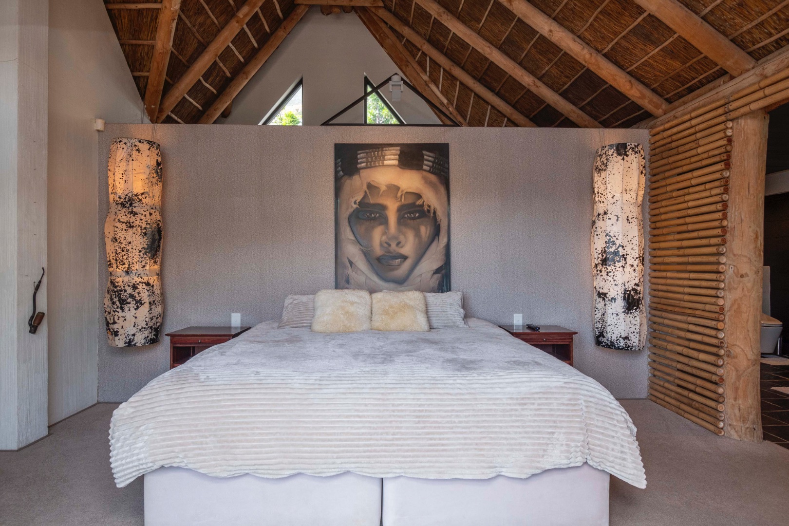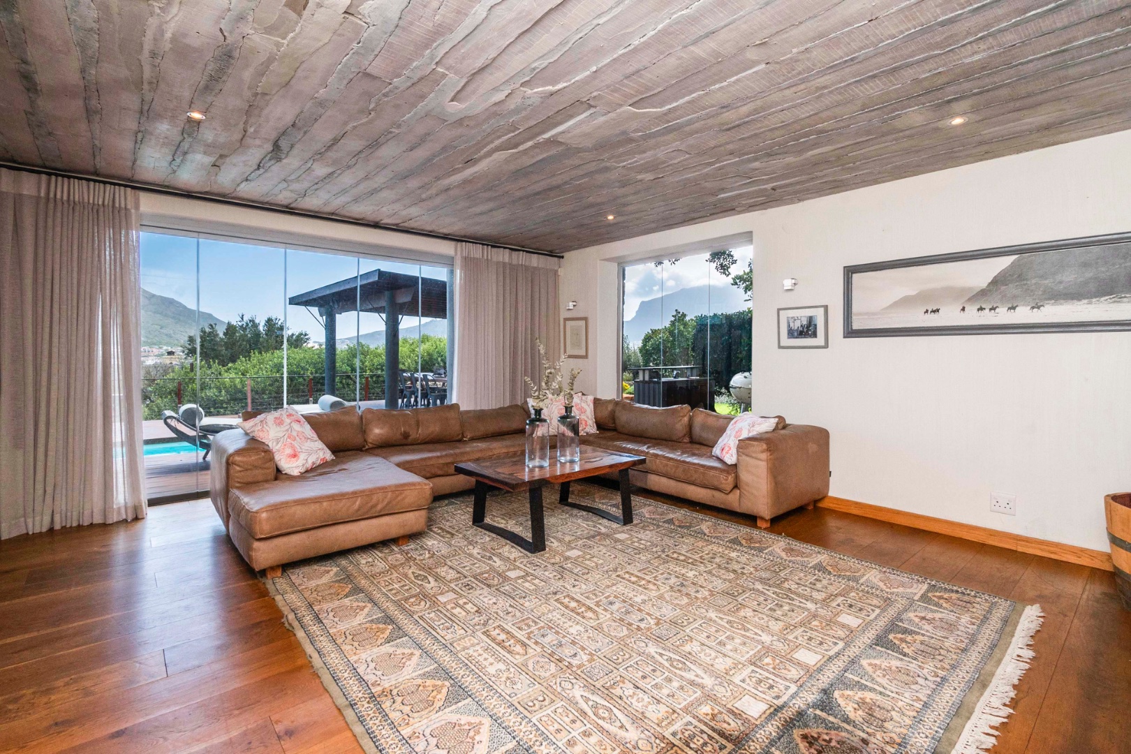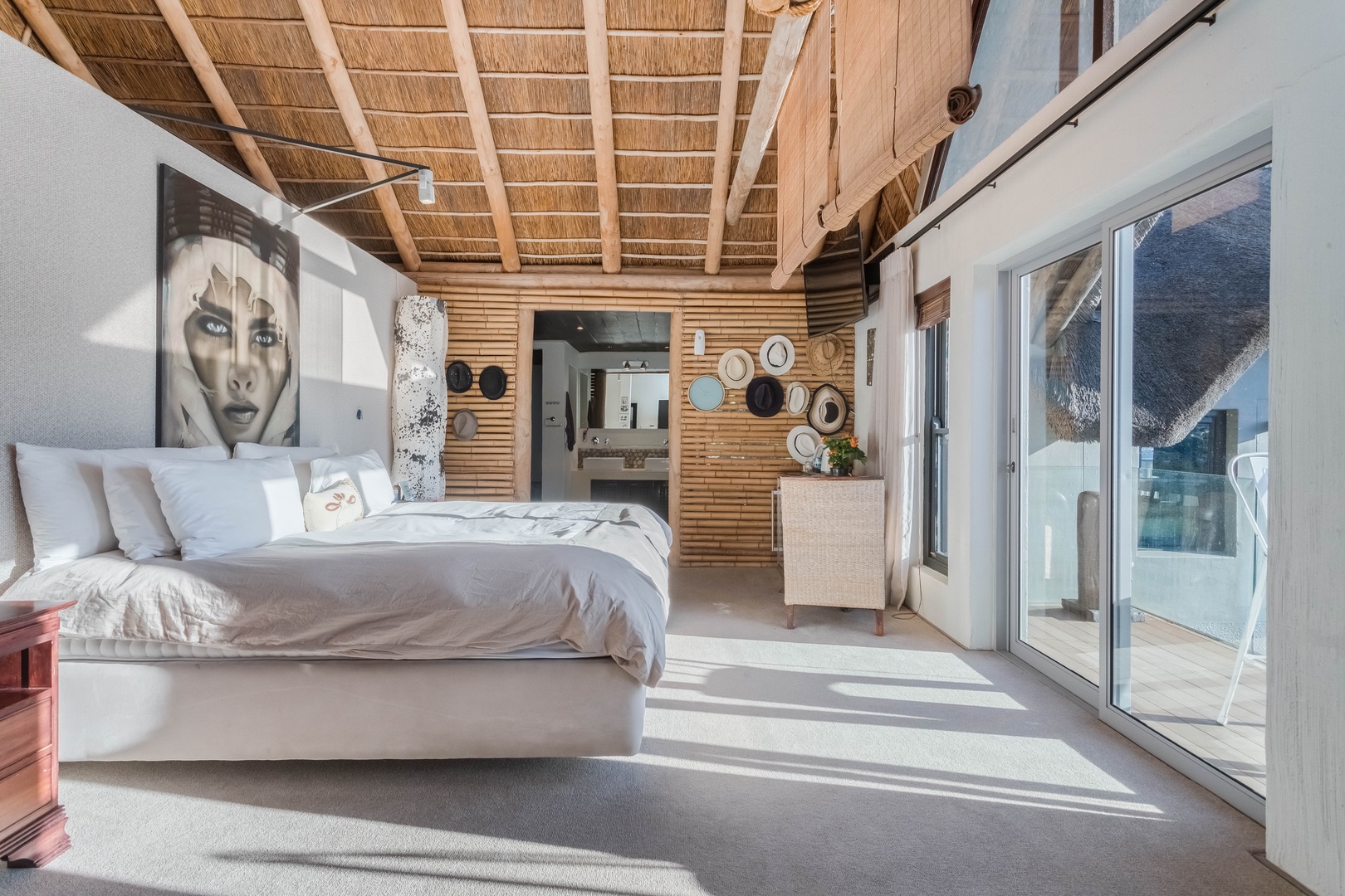 On the floor level you have an open kitchen kitted out with quality appliances like a Lafra oven/stove etc overlooking the pool with the dining and living room on either side. Dine next to the zen garden complete with a koi pond jungle vibes and have the cool ocean breeze sweep through your hair in summer with the glass stacking doors open or relax in front of the cosy wood burning fireplace in winter in the living room. Further on this level is a water closet and a wine cellar and the kitchen has direct access to a generous double automated garage. Outside you have a large deck surrounding the pool with a garden to your right and a lovely bedroom en-suite to your left.