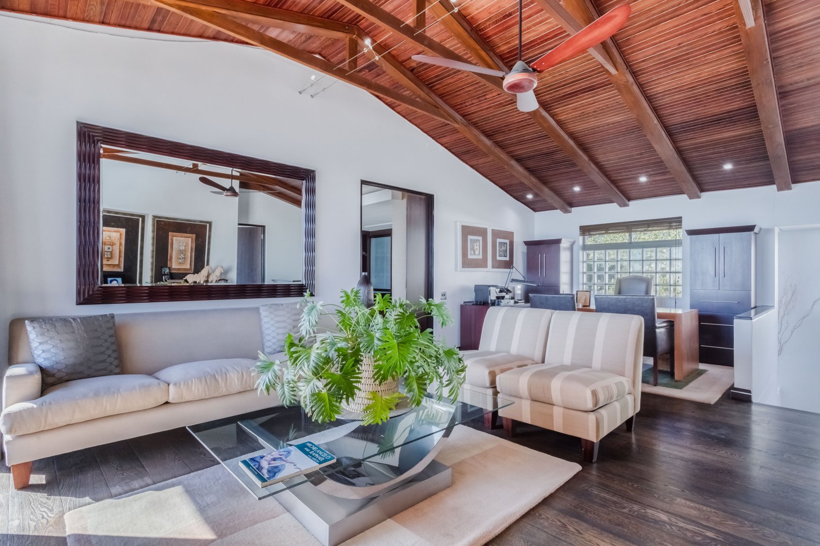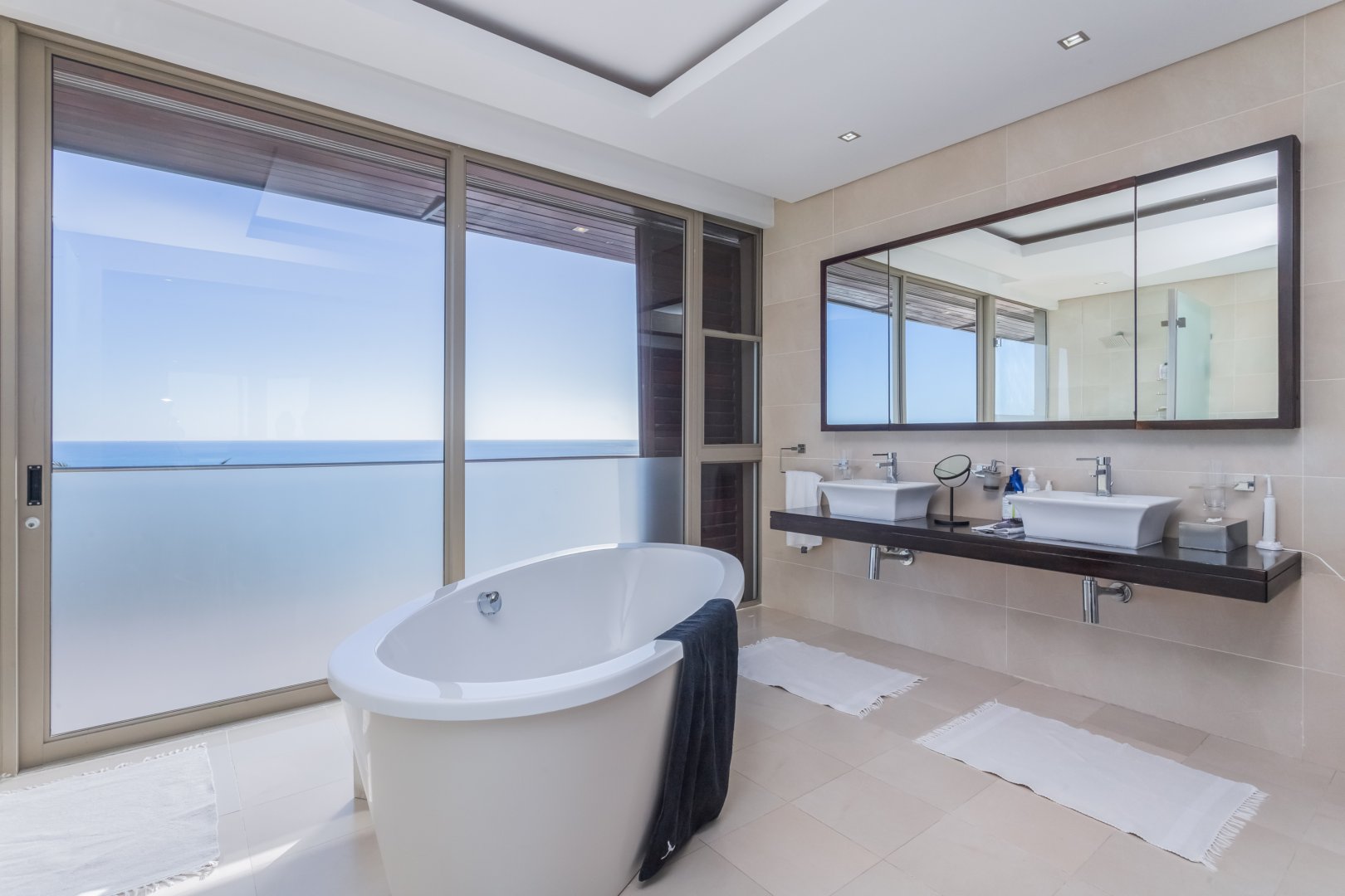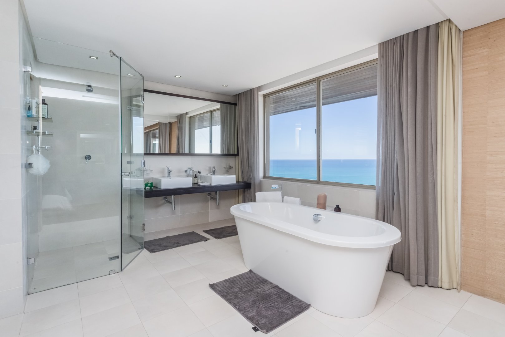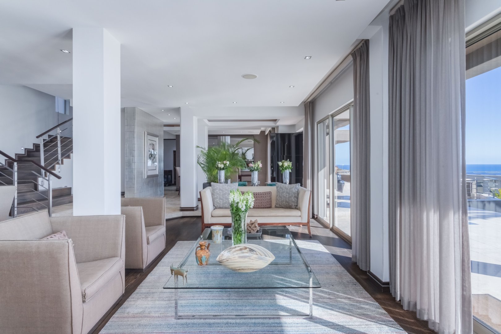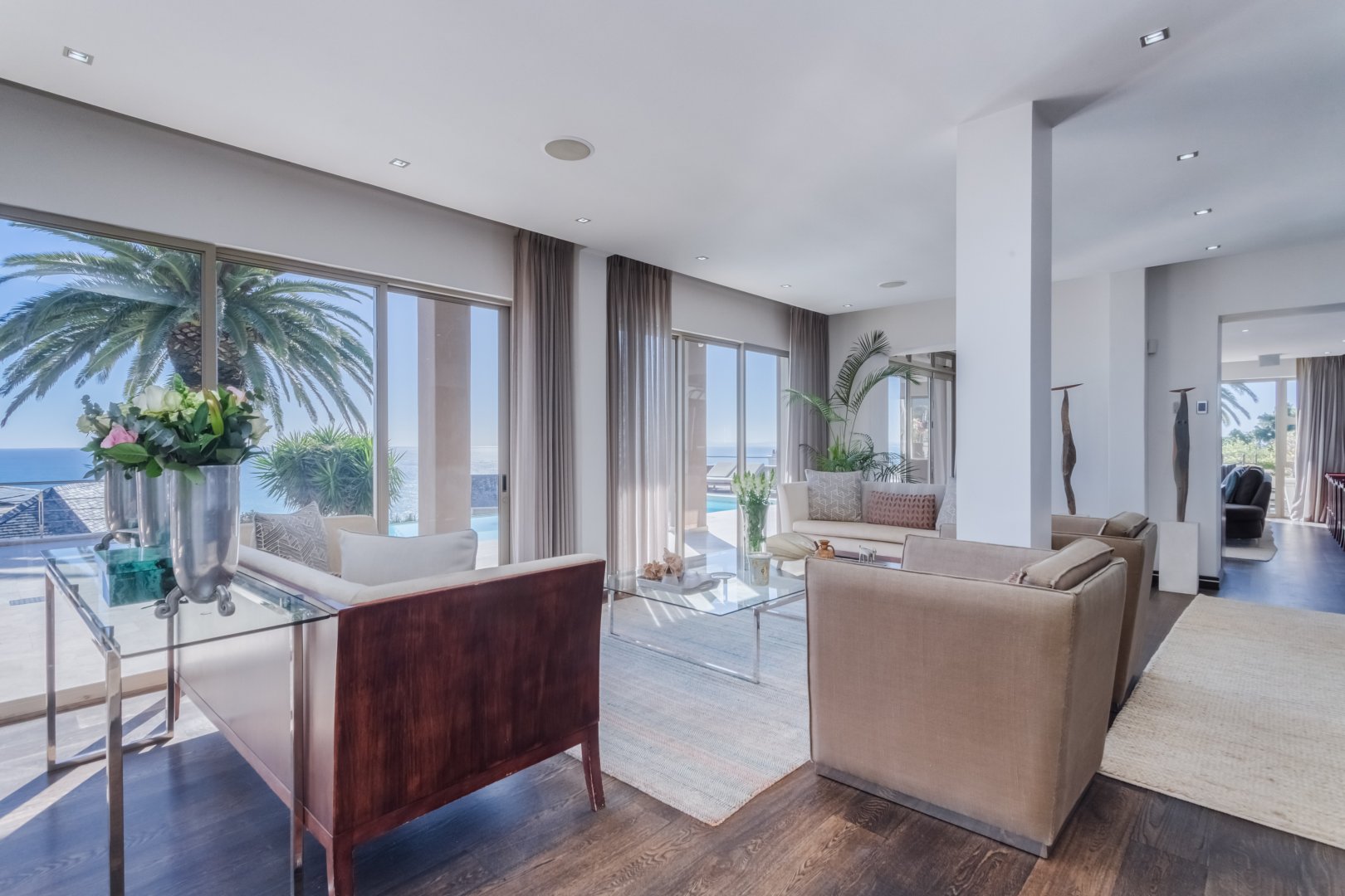 As you reach the third floor, you’ll be greeted by a versatile lounge area that can be tailored to your needs. Whether you’re looking for a cozy space to unwind or a functional home office, this floor provides the flexibility you desire. Additionally, you’ll find two spacious en-suite bedrooms on this level, each boasting dressing rooms and private patios with sensational ocean views. In the main bedroom, you’ll even discover a separate living area, adding an extra touch of luxury.