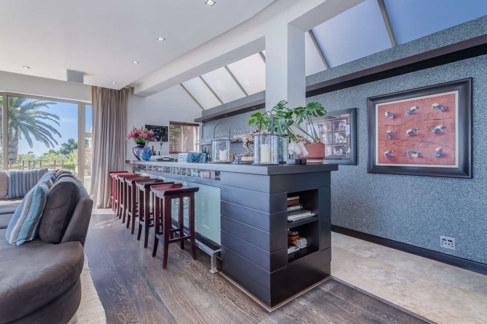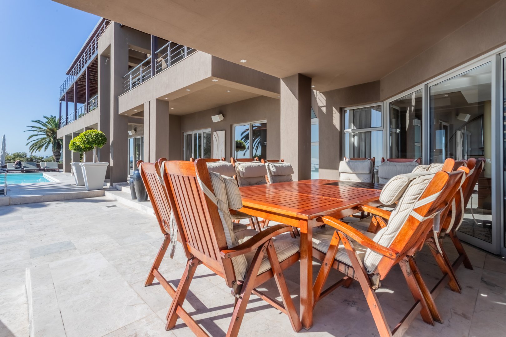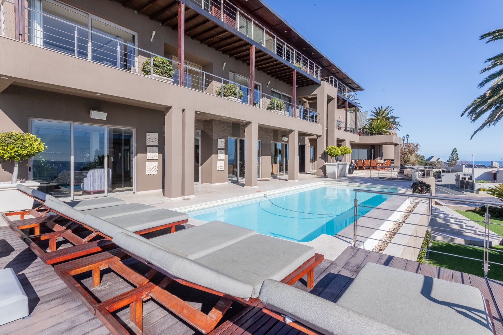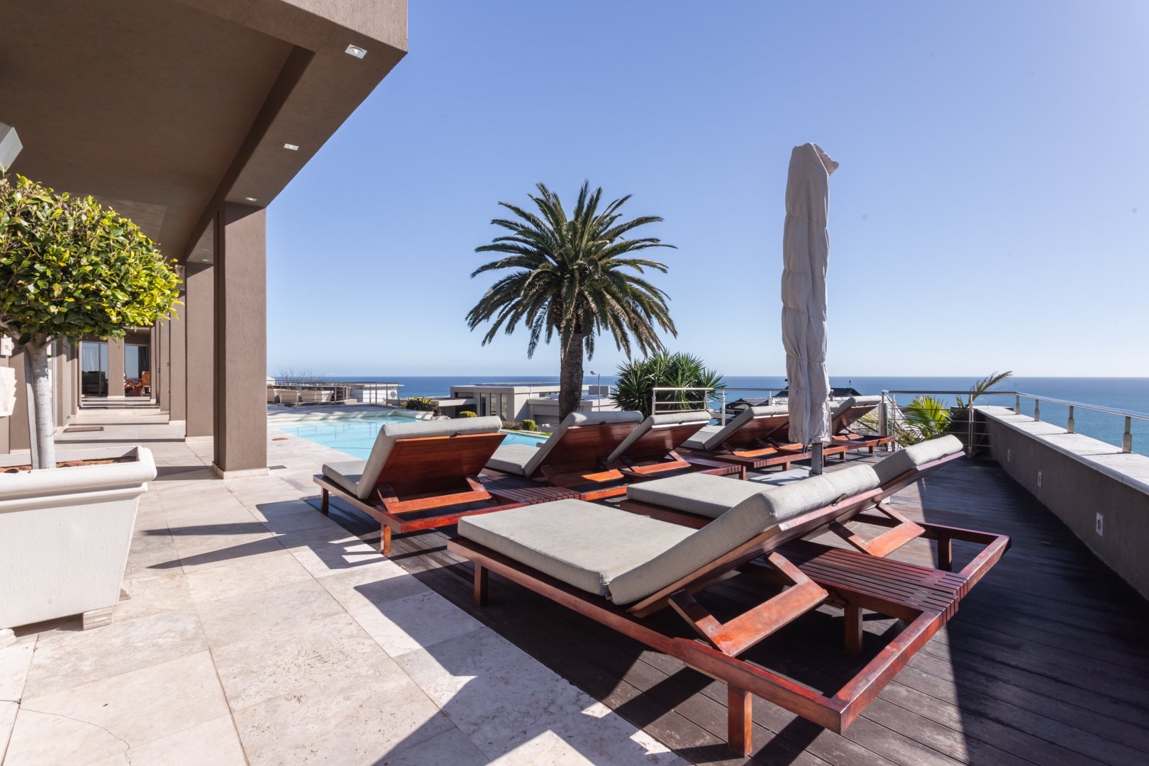 The first level offers a variety of entertainment areas both indoors and outdoors. The seamless connection between the interior and exterior spaces allows you to indulge in the surrounding beauty of lush gardens, swaying palm trees, and endless ocean views. Spend your days lounging by the swimming pool or basking in the warm African sun on the comfortable loungers.
