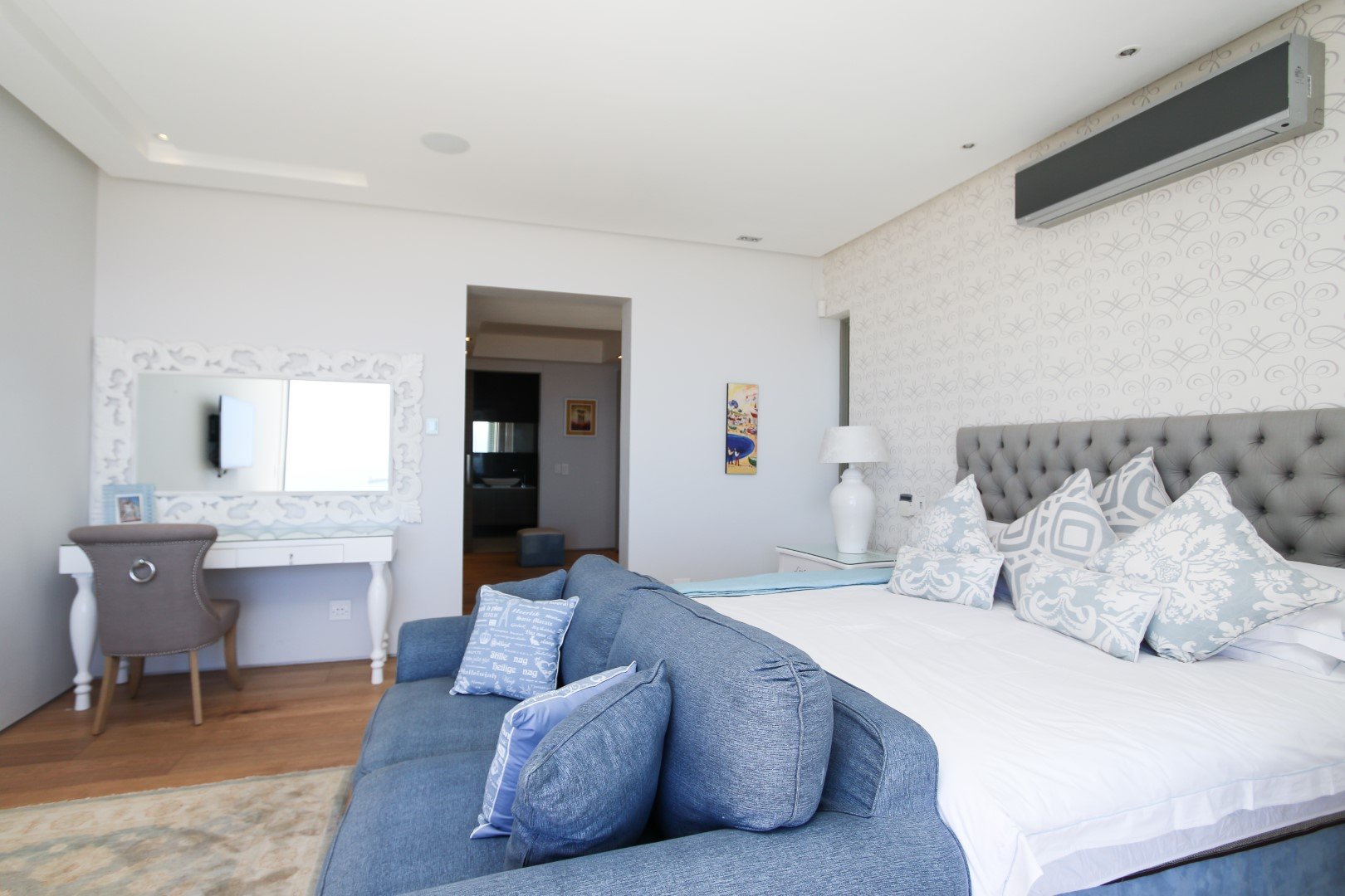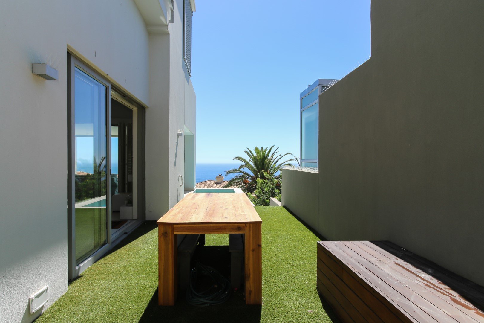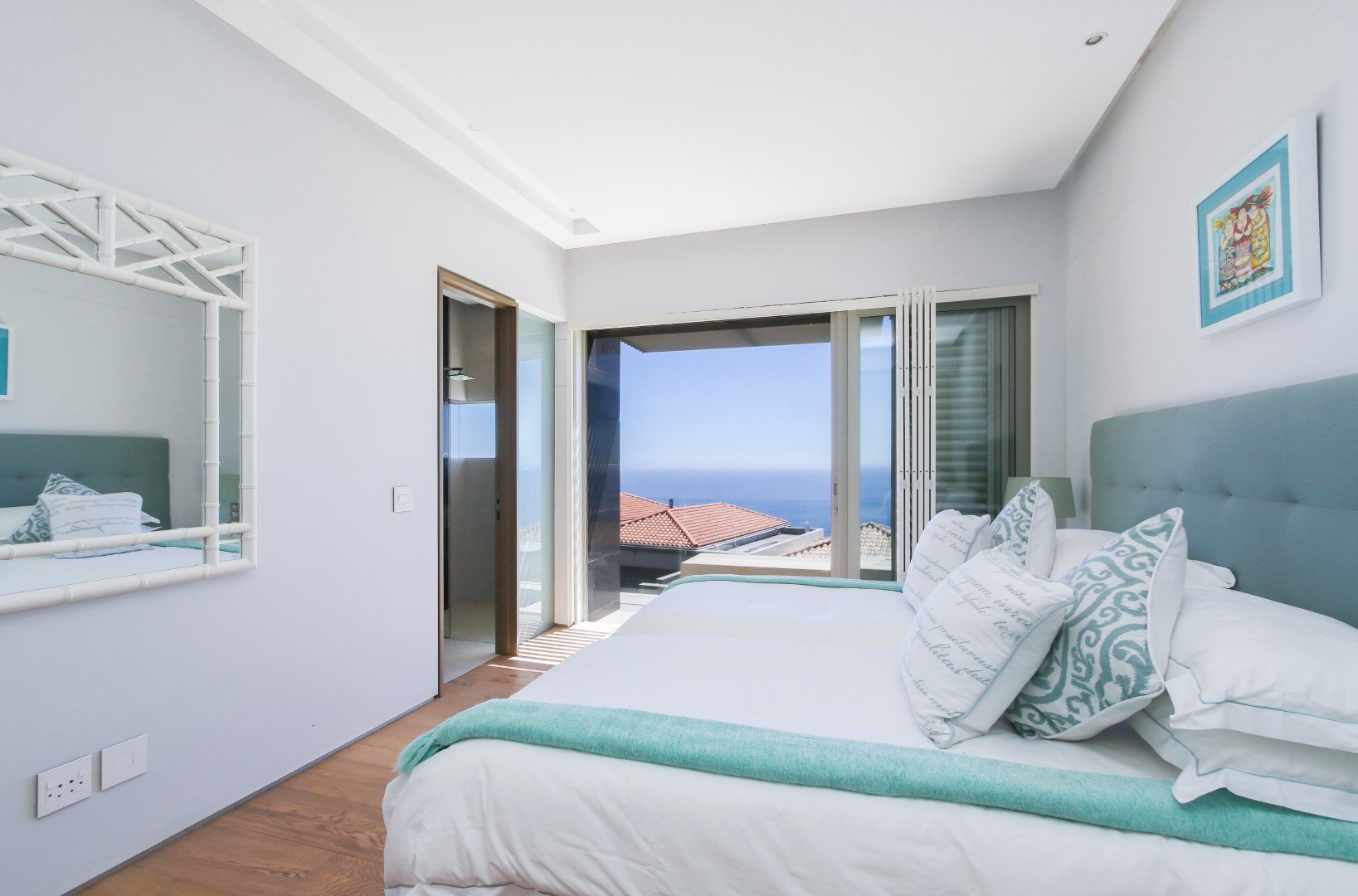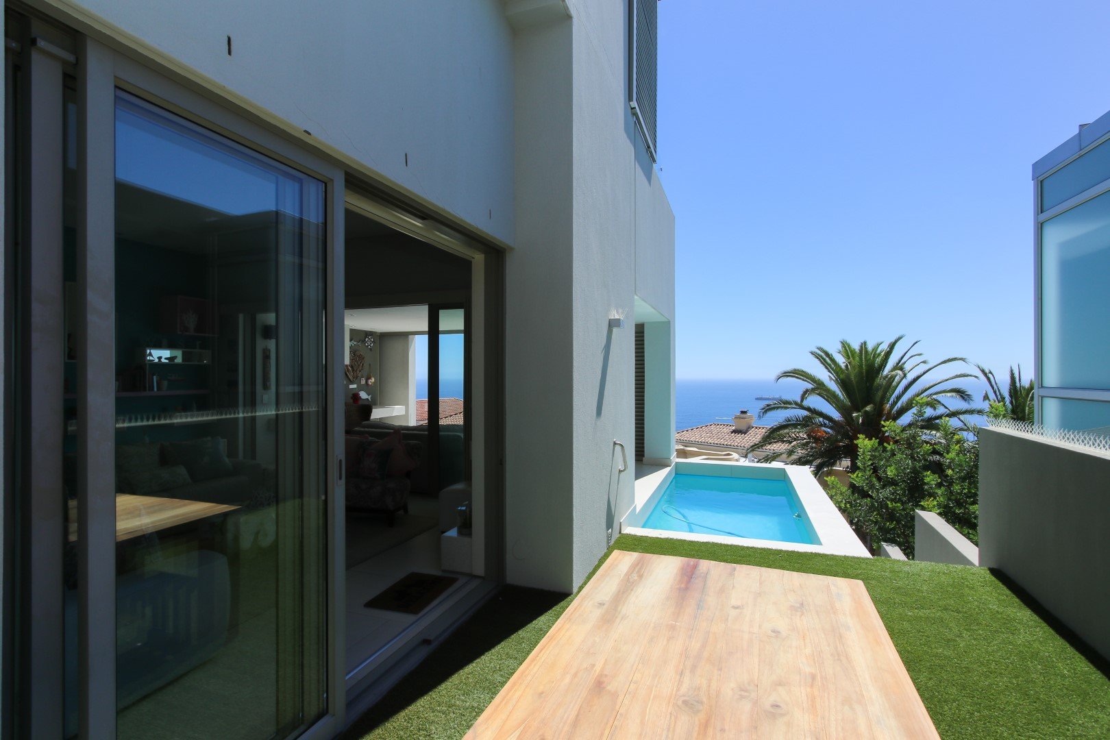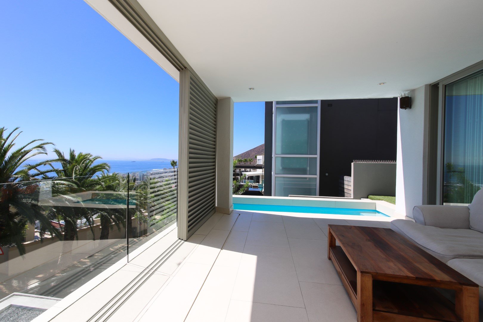 Perfect lockup and go apartment located high up on the Fresnaye hills with spectacular, sweeping views of the Atlantic Sea Board. The apartment comprises of a 3 bedrooms, all en-suite, each of which are ocean facing and have access to a terrace maximising the views. Open plan kitchen with scullery, lounge and dining area flow out on to entertainment terrace with braai and plunge pool.