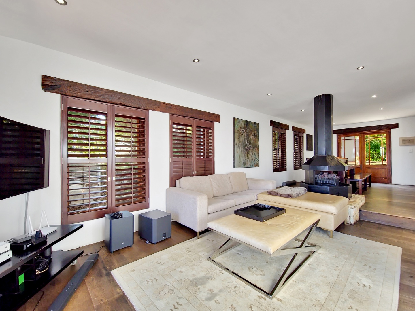 On the ground level there are 3 single automated garages, a garden cottage, maids quarters and a study. Gaze across a sparkling pool toward the ocean on the first level, where you will also find a cosy lounge with gas fire place that flows out to the terrace, further on this level is an open kitchen and scullery that leads to the back garden. Another large formal lounge can be found on the other side of the staircase. On the top level is the master bedroom en-suite and two additional bedrooms that share a bathroom.