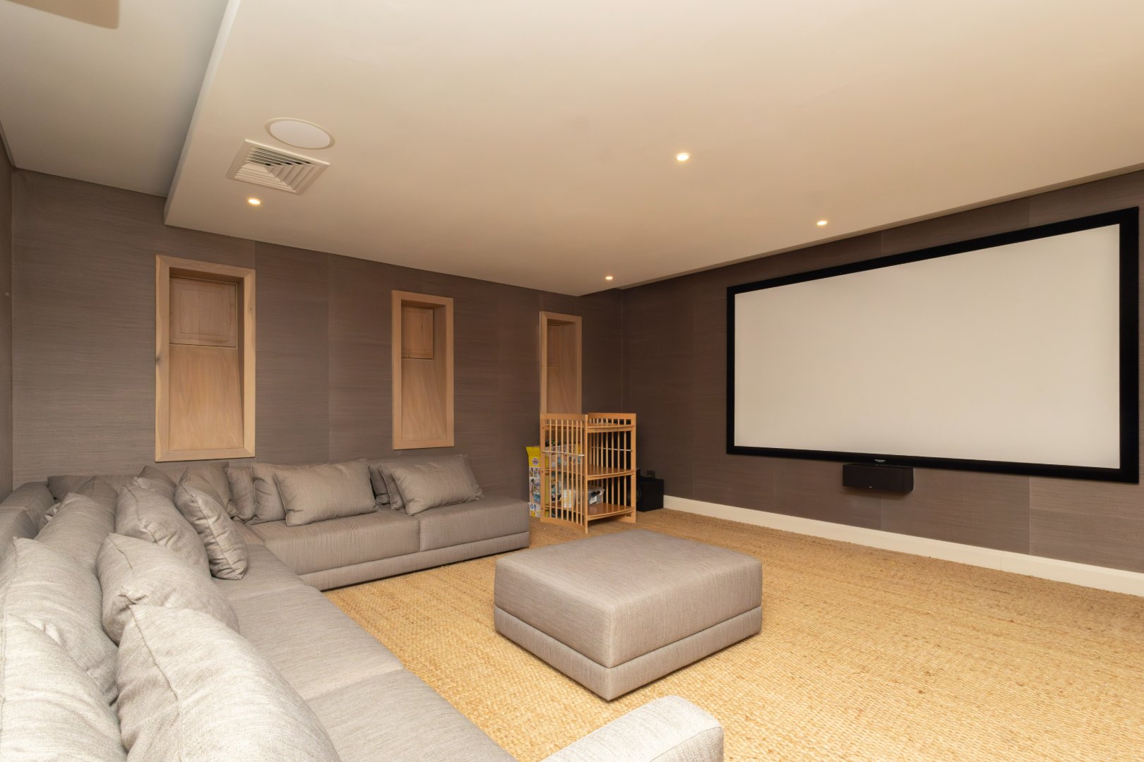 Two of the four bedrooms are en-suite, each thoughtfully designed with luxurious finishes and soft furnishings that create a calm, inviting atmosphere. The dedicated cinema room offers the perfect setting for intimate movie nights or relaxed family evenings.
