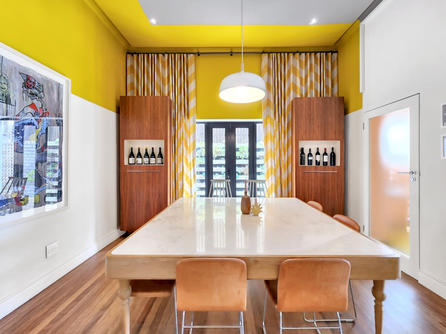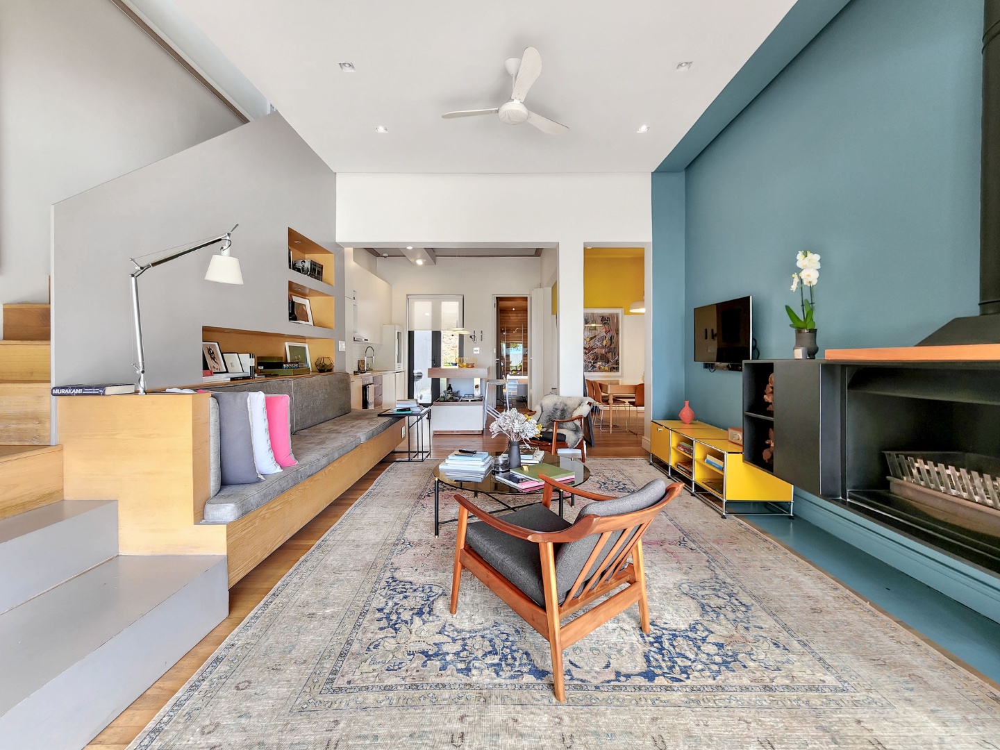 Welcome to this light and bright Japanese-design-inspired home with clean lines, high ceilings and a delightful colourful flair.