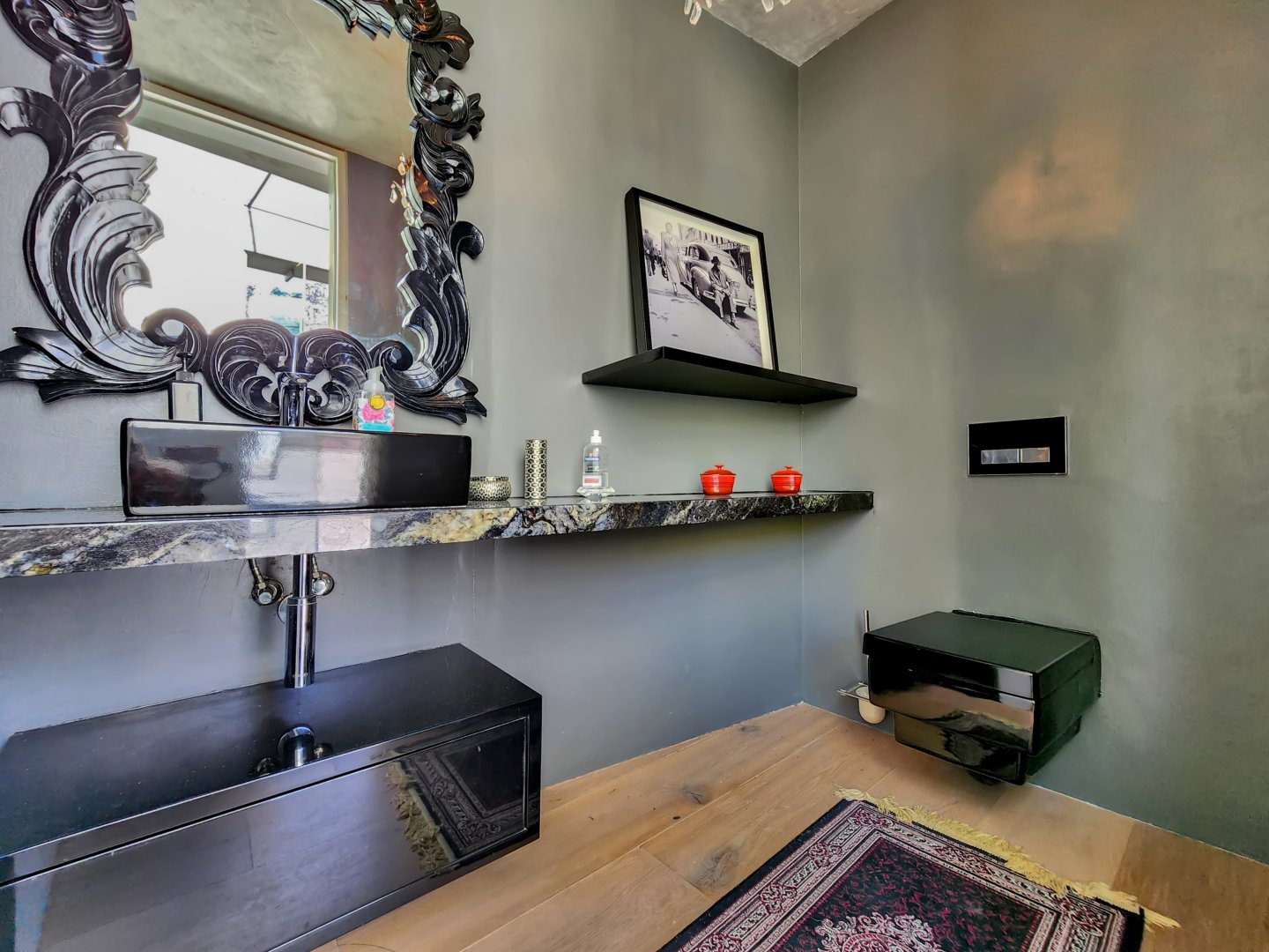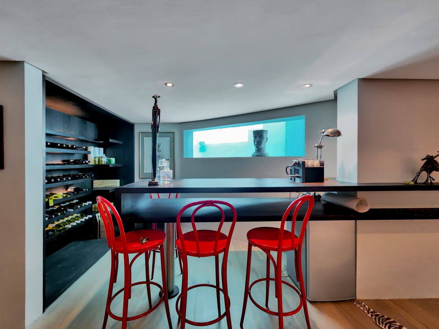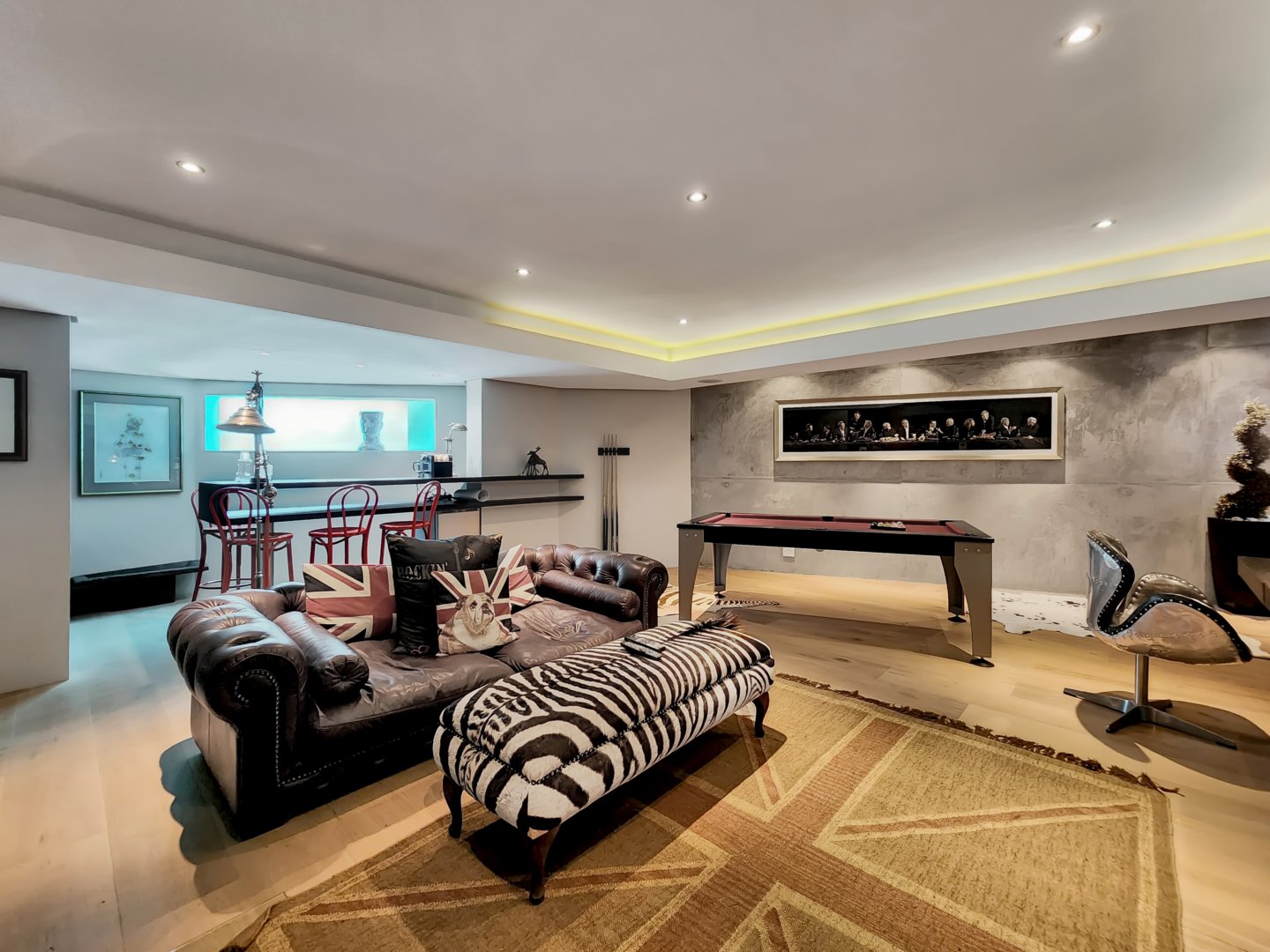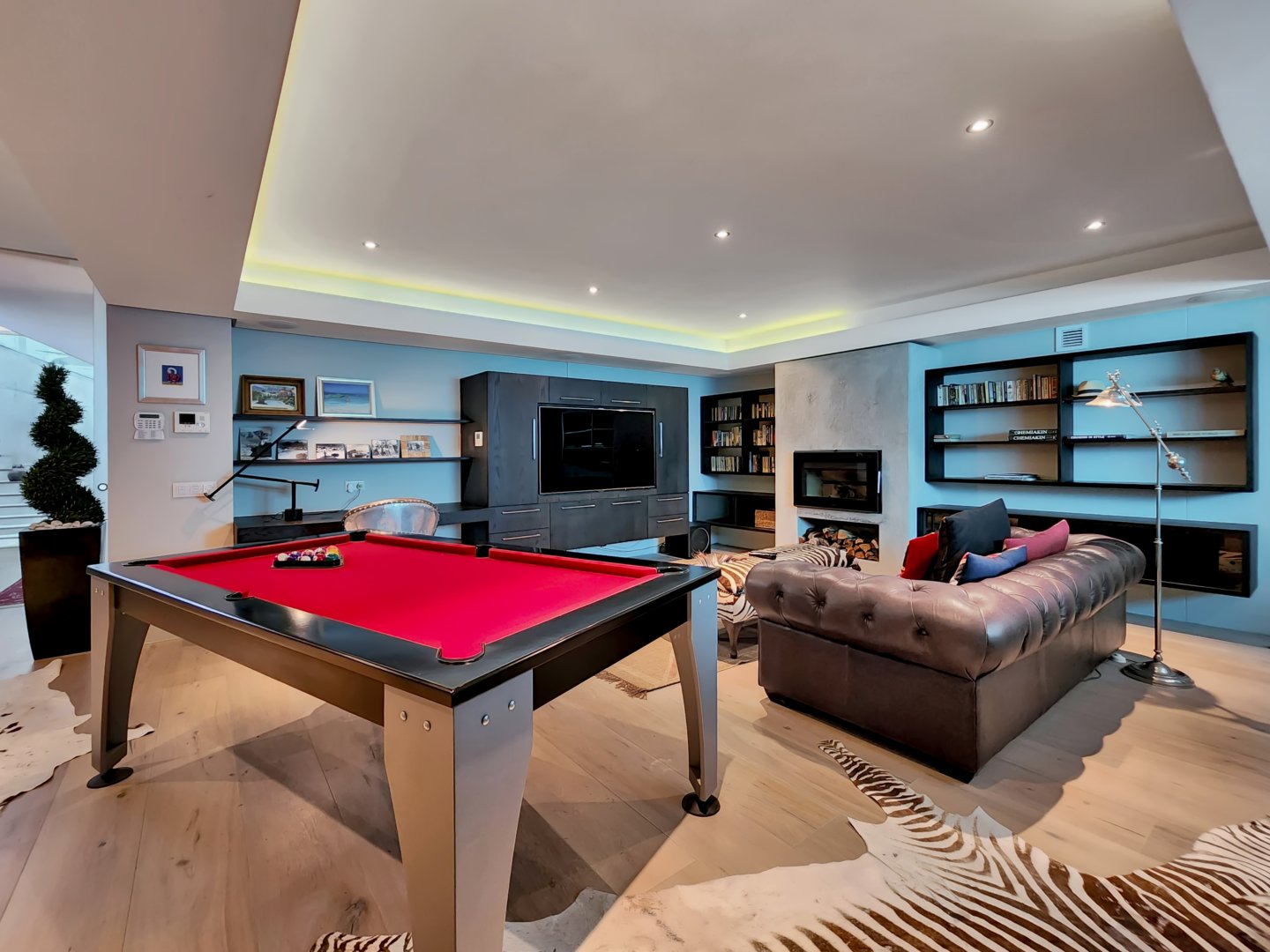 In the lower area, you’ll find 2 Bedrooms en suite as well as a third entertainment area with Bar, pool table, tv, wine cellar and fireplace.
