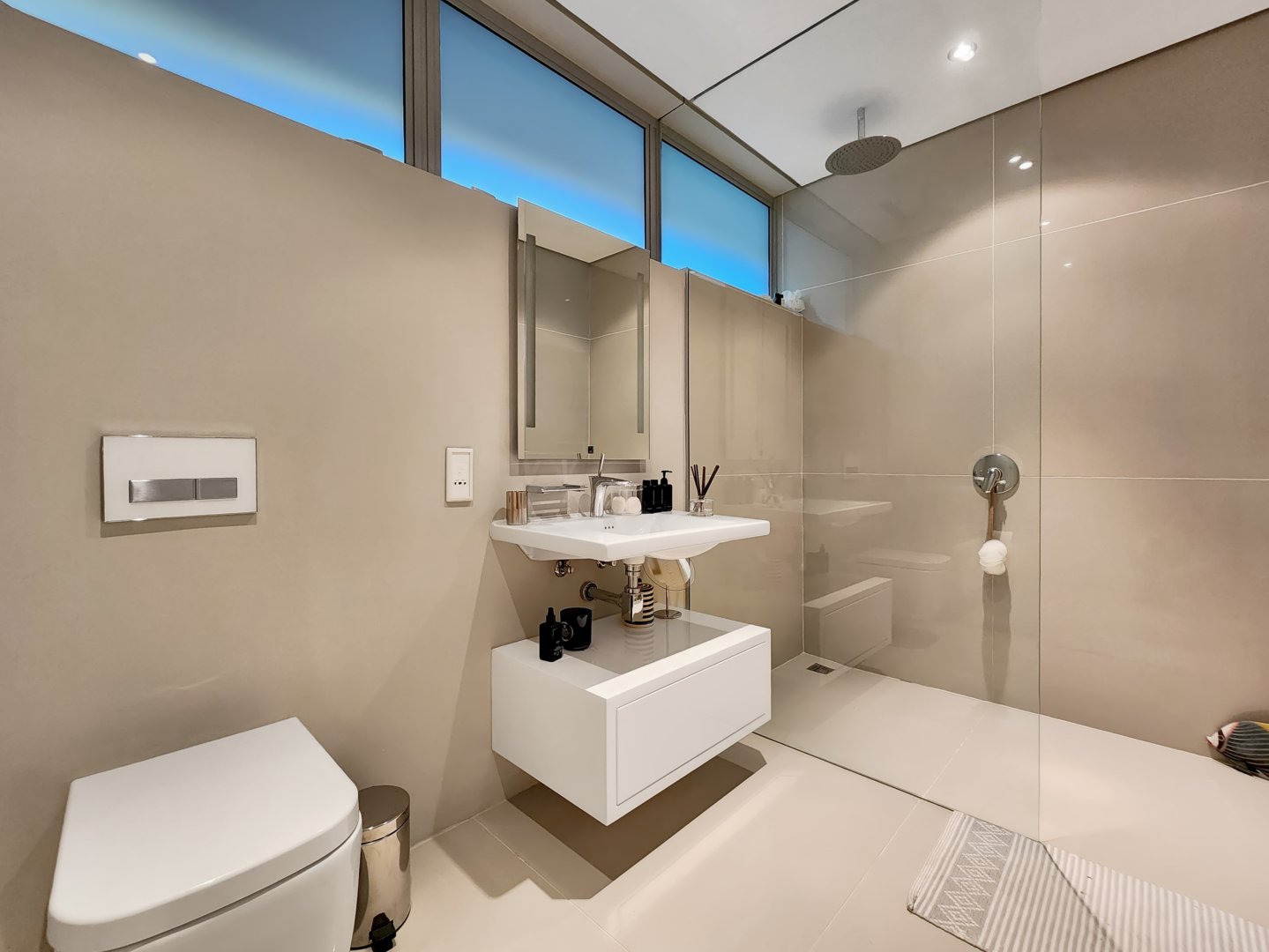 The entry-level offers a beautiful lounge that leads onto the pool area as well as the main bedroom en suite.
