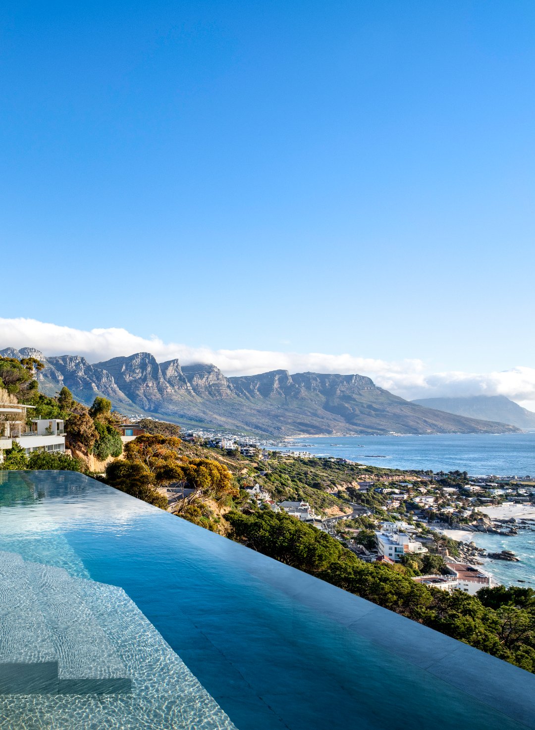 This magnificent villa is designed by leading South African architecture firm SAOTA with granite & glass throughout. This 5-levelled, luxury villa, set high up in Clifton on the slopes of Lions Head, is designed to blend in with the mountain and maximise the magnificent views of the 12 Apostles mountain range, Lion’s Head and the Atlantic Ocean. The tasteful interior generates a sense of serenity from the moment that you walk through the front door.