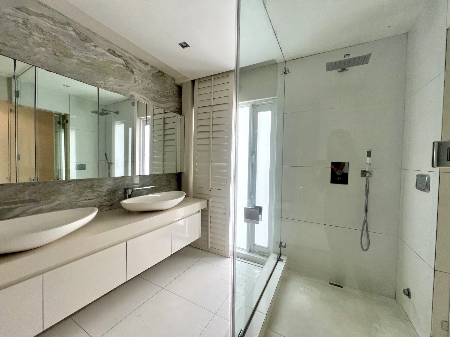 This penthouse presents three generously appointed bedrooms, each with its own en-suite bathroom. Two of the bedrooms are complemented by adjoining studies, offering both privacy and convenience. Additionally, two guest bathrooms ensure comfort for visitors.