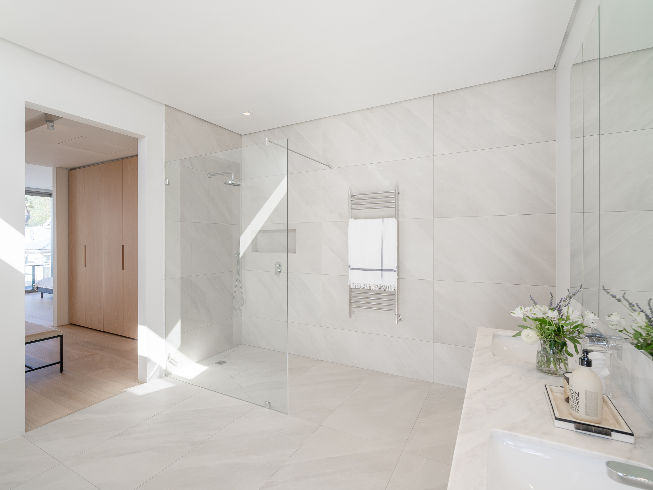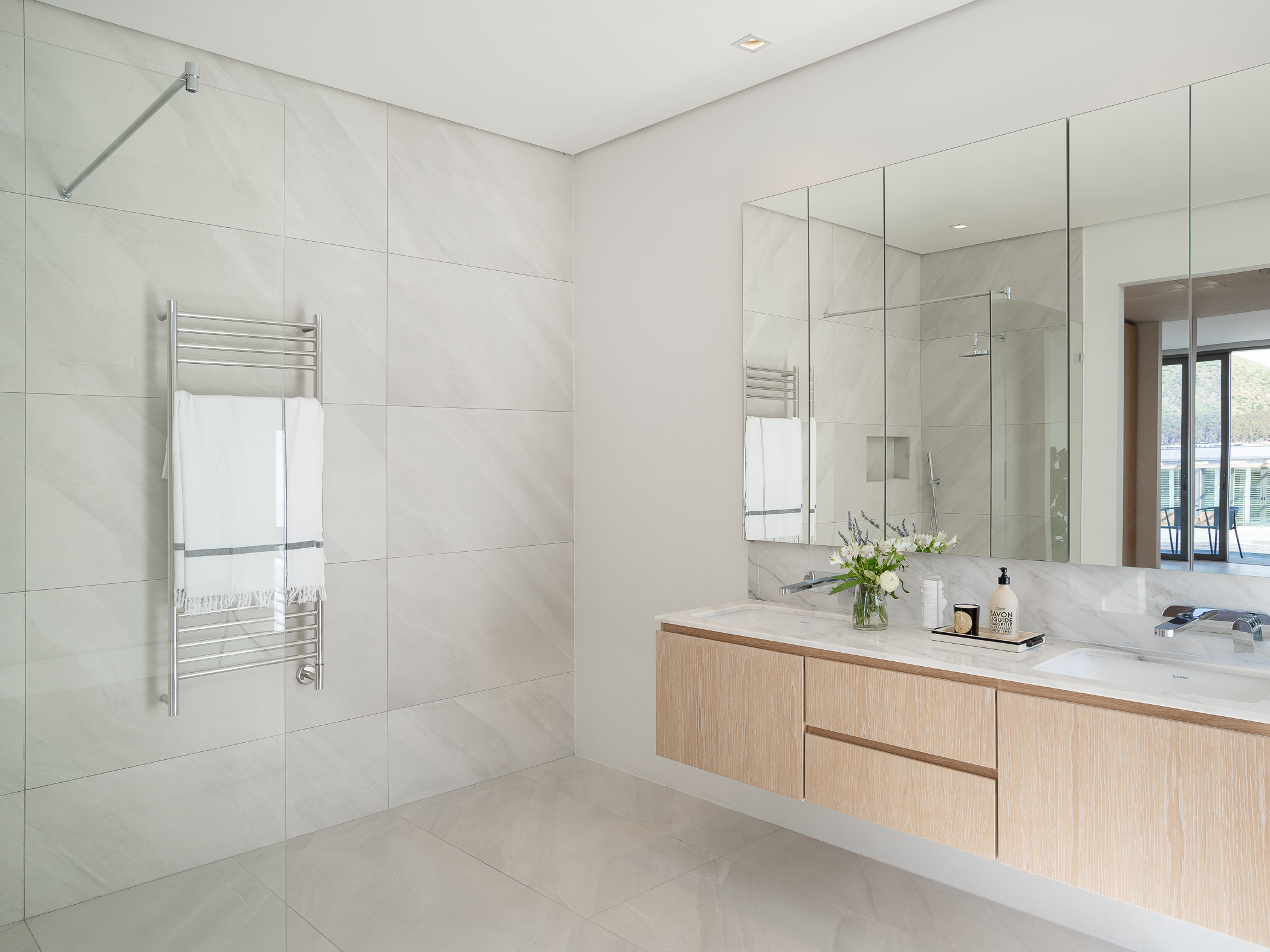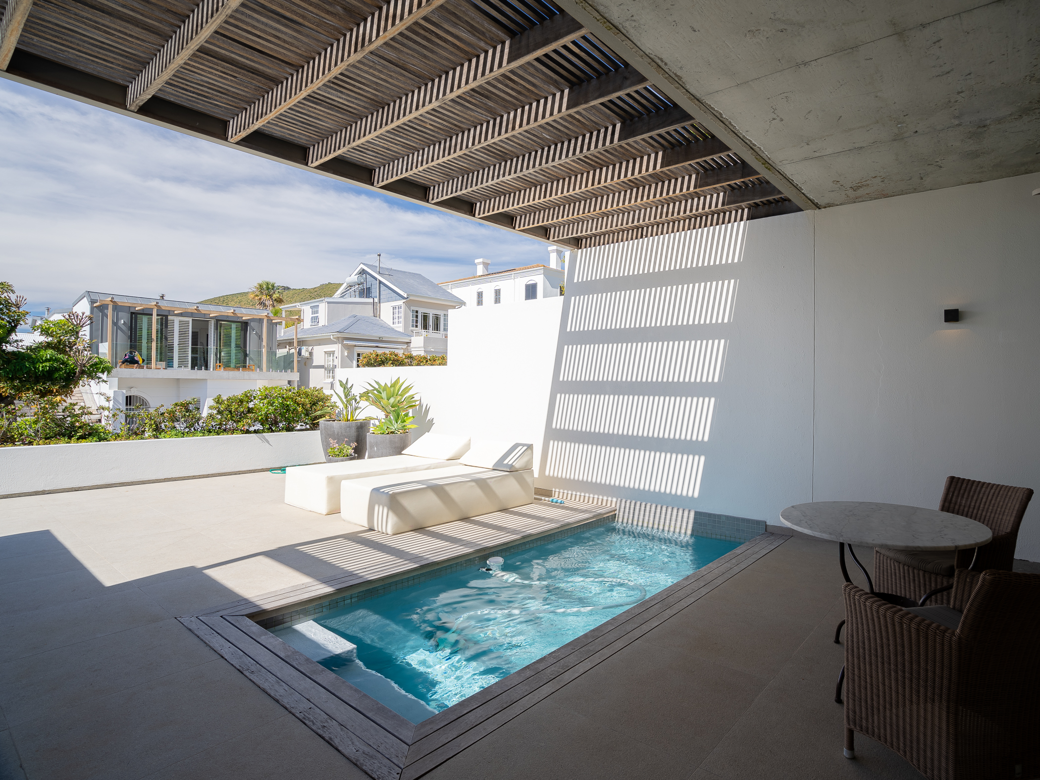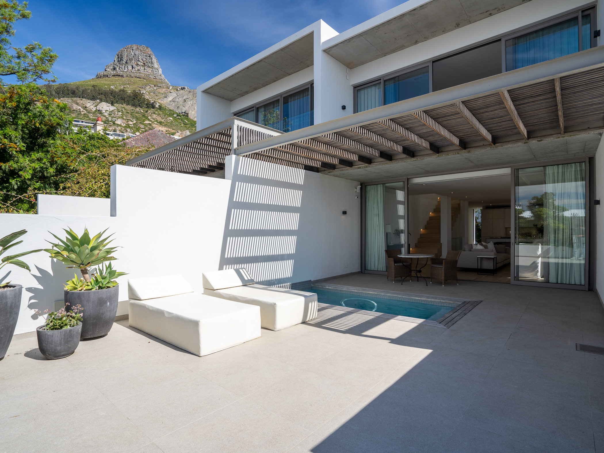 The upper floor offers two-bedroom suites, which come with a view. The main suite is incredibly sumptuous with a walk-in closet and a perfectly luxurious bathroom, (inclusive of vanity mirror lighting) there has been no design stone left unturned. The second bedroom suite has a  lovely Lion’s Head view and again is en-suite.