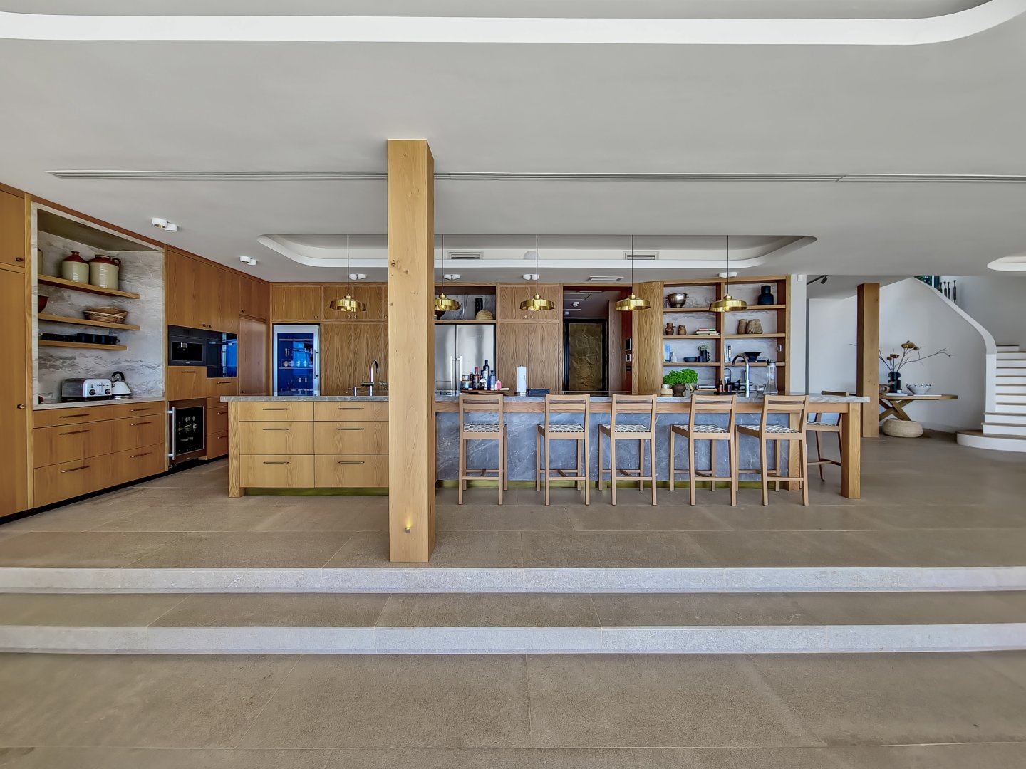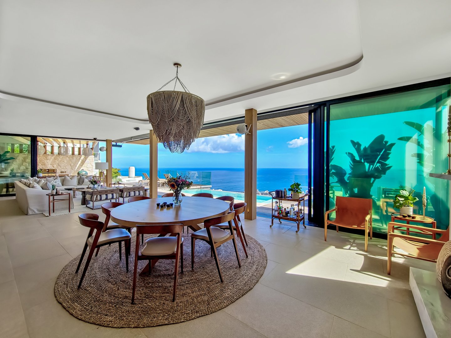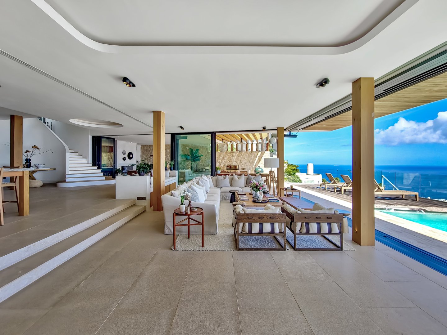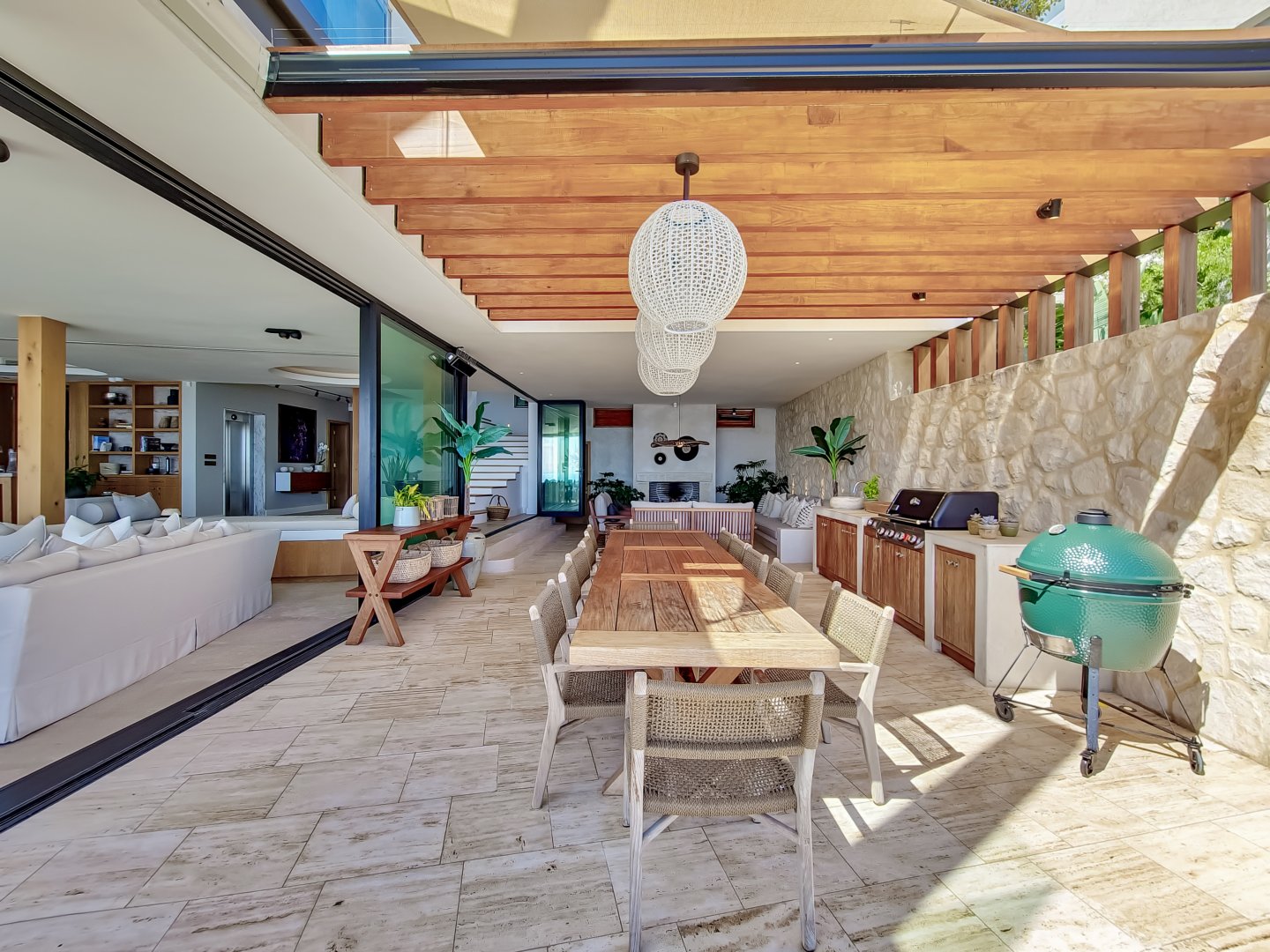 It’s spacious and modern, with everything you need for a comfortable stay, including an elevator. Each of the five bedrooms has its own balcony and ocean views. Plus, there’s a heated pool, outdoor dining area, and plenty of space to entertain.