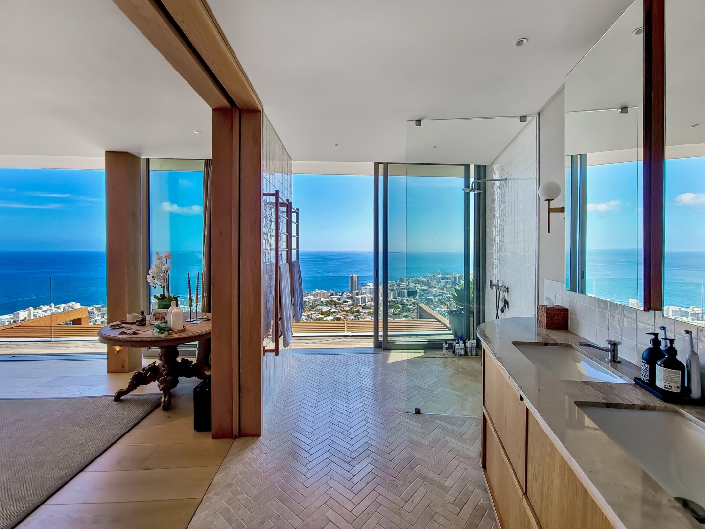Nestled on the calm slopes of wind-free Fresnaye, one of Cape Town’s most sought-after areas, this newly built villa offers stunning views and all the lavish amenities you need for your perfect vacation.