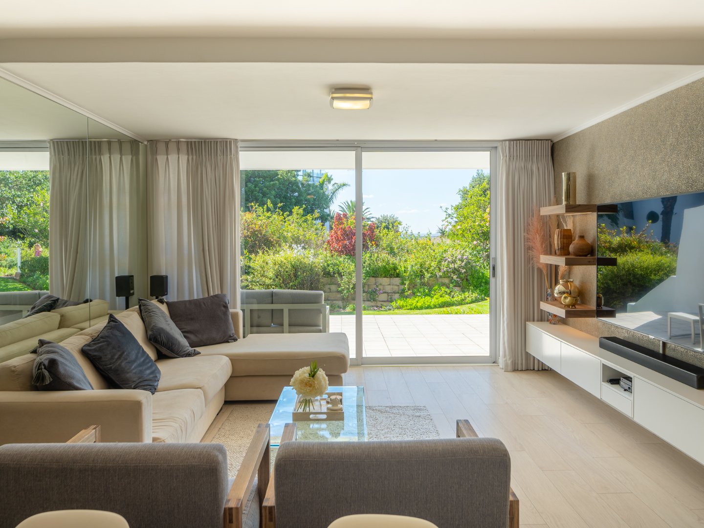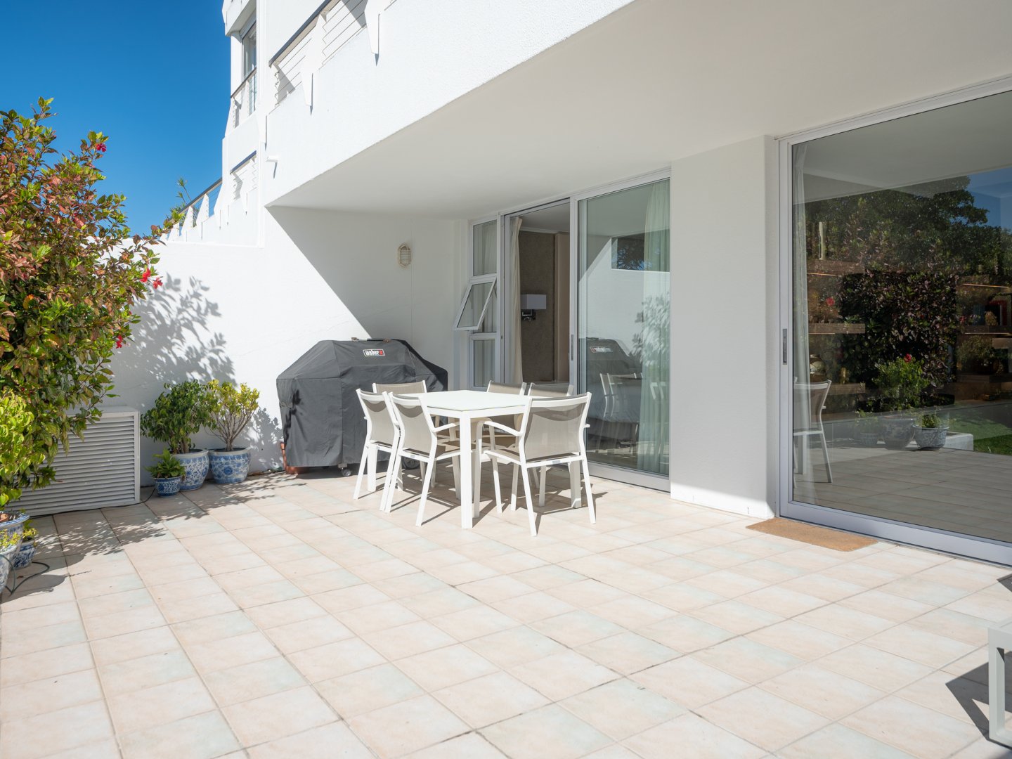 The apartment comes fully furnished with all appliances and has an open plan kitchen, dining and lounge which connects to a spacious terrace and communal garden.