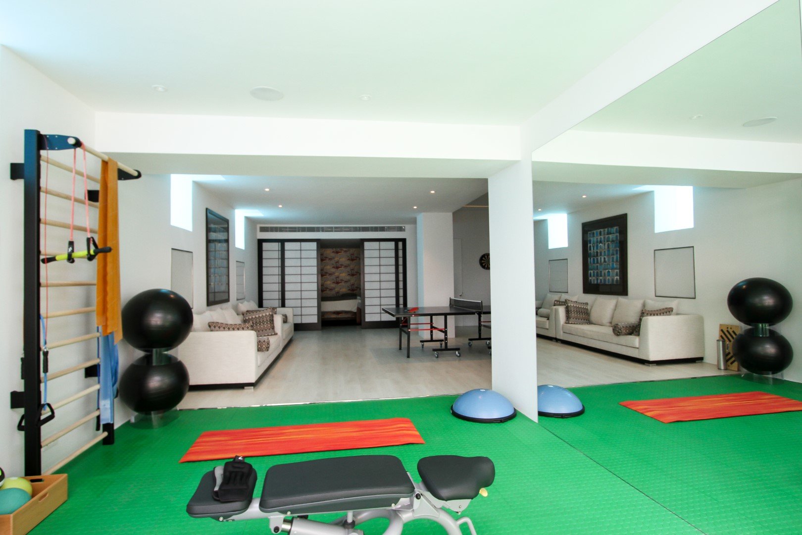 The lower level is a haven for entertainment, featuring a cinema, lounge, pool table, and an impressive wine cellar. Adjacent to this entertainment area, you’ll find a fully equipped gym with its own bathroom, as well as an office that can double as a fifth bedroom.