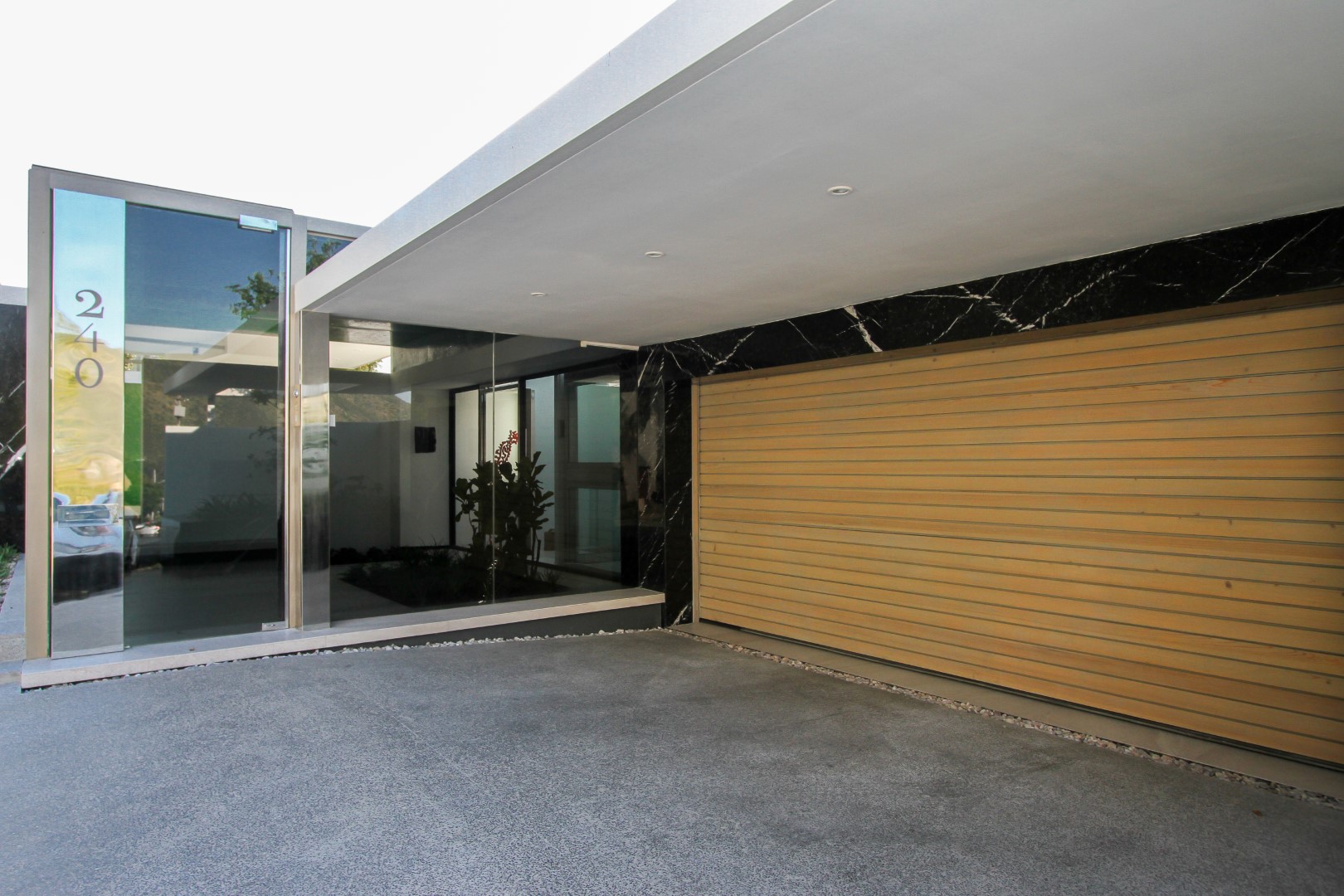The level below is the central hub of the home, with a seamless transition between indoor and outdoor living spaces. A modern kitchen, complete with a freestanding island and concealed scullery, effortlessly flows into the dining area and lounge. There’s also a second lounge with an open bar area. All living areas open up to a magnificent outdoor terrace featuring an 18-meter infinity pool and a built-in barbecue area. Delight in al fresco dining and host unforgettable gatherings. Additionally, there is a fourth bedroom with an en-suite bathroom on this level, ensuring privacy for your guests. A guest restroom is conveniently located on this floor.