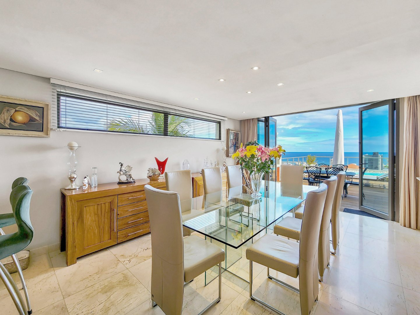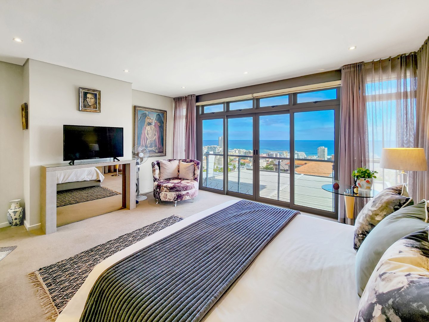 This exquisite home on Ocean View Drive boasts an elegant multi-level design facing northwest in a prime location. Impeccably presented with meticulous attention to detail, it offers spacious living areas, oversized bedrooms, and breathtaking views of Sea Point and the Atlantic Ocean. From the moment you step inside, you’ll be captivated by the thoughtful design and luxurious features.
