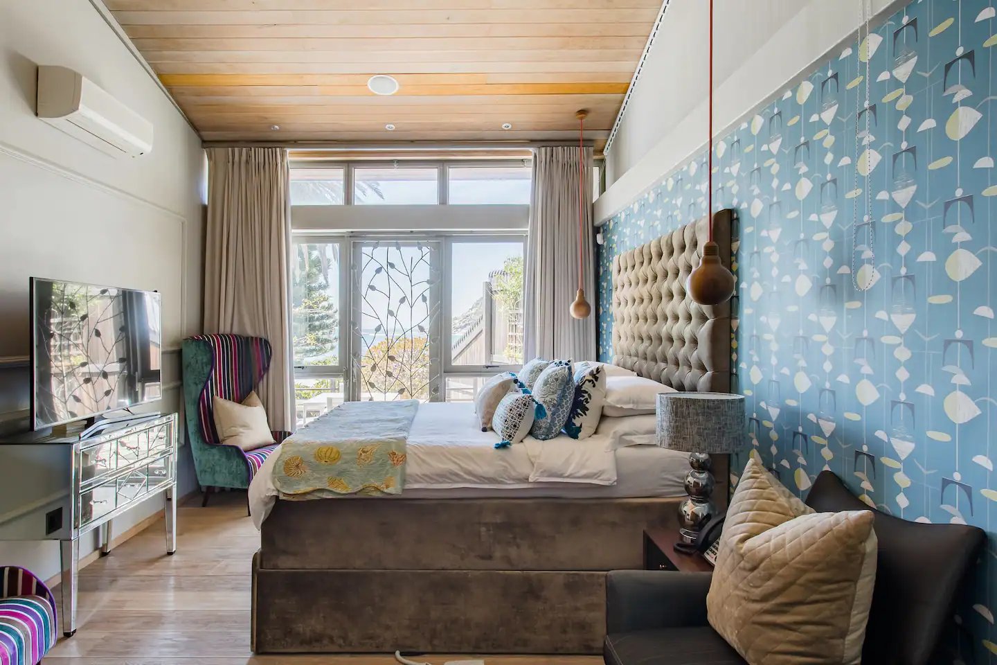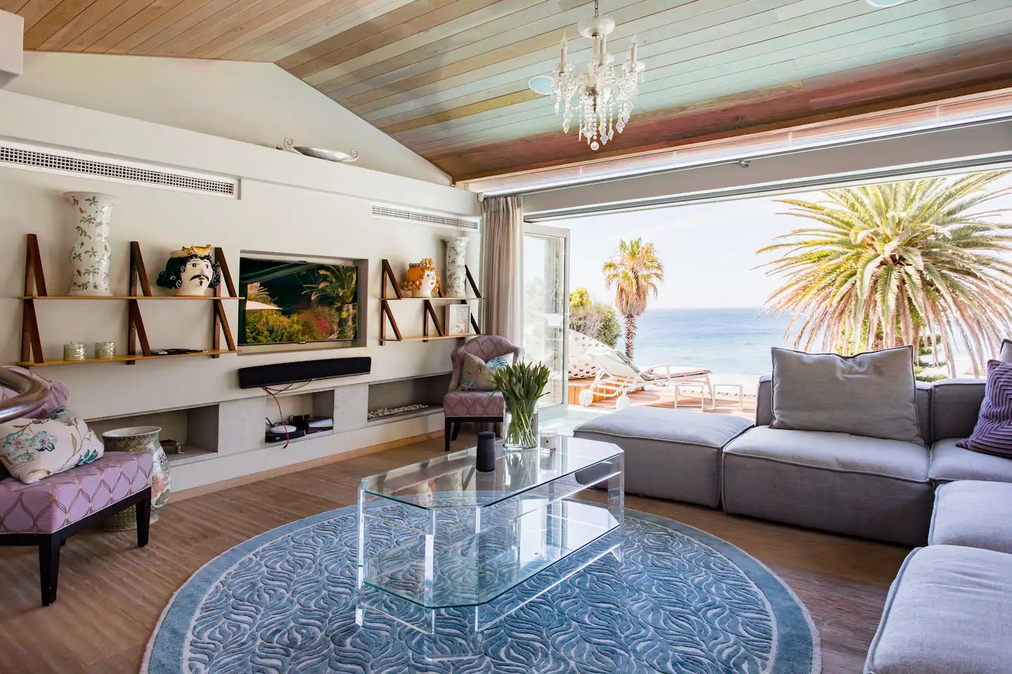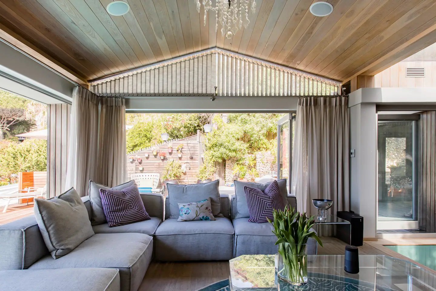 Savour the pleasure of BBQ evenings while watching breathtaking sunsets. The bungalow showcases a striking vaulted wooden ceiling adorned with elegant chandeliers and vast windows that frame the awe-inspiring vistas. Each bedroom and living space exudes luxury and is equipped with cutting-edge amenities and high-speed Wi-Fi. And don’t forget the private movie theatre for your entertainment.