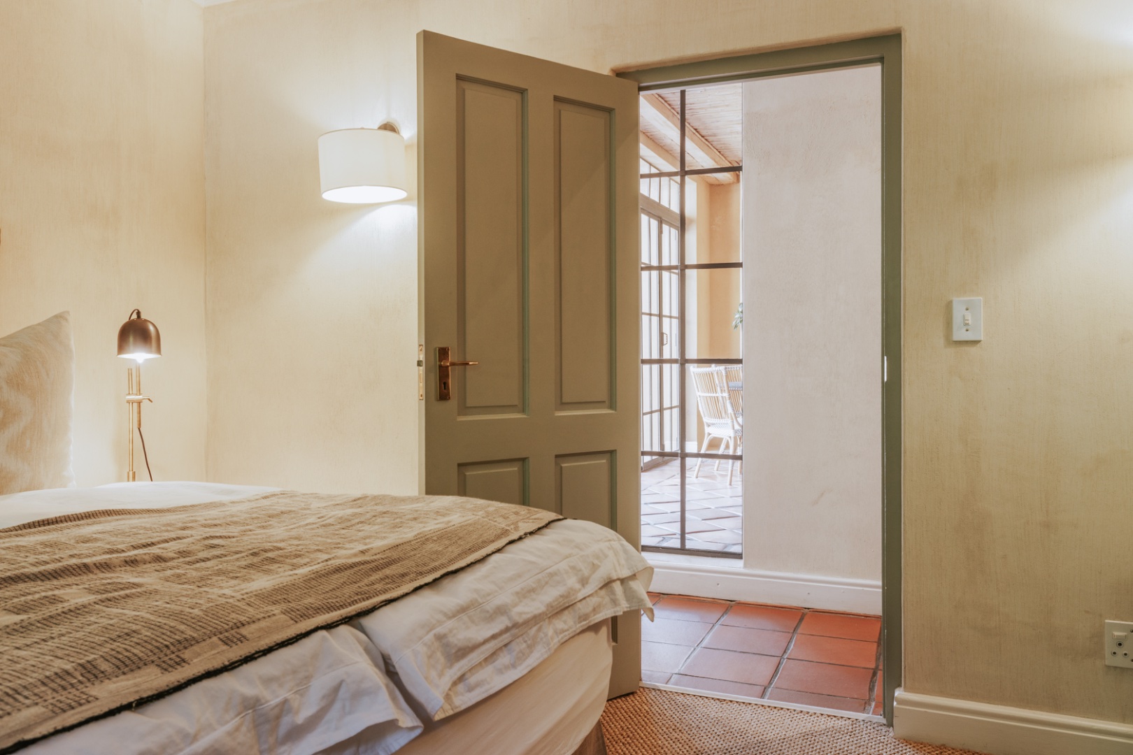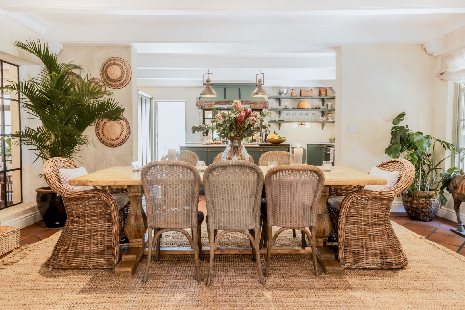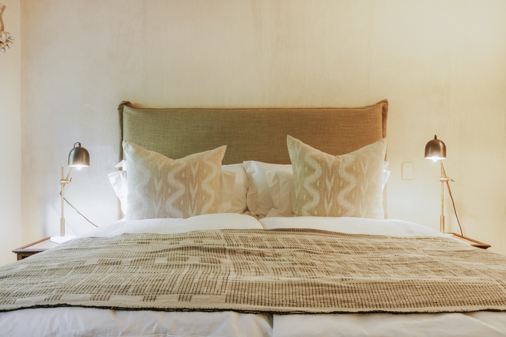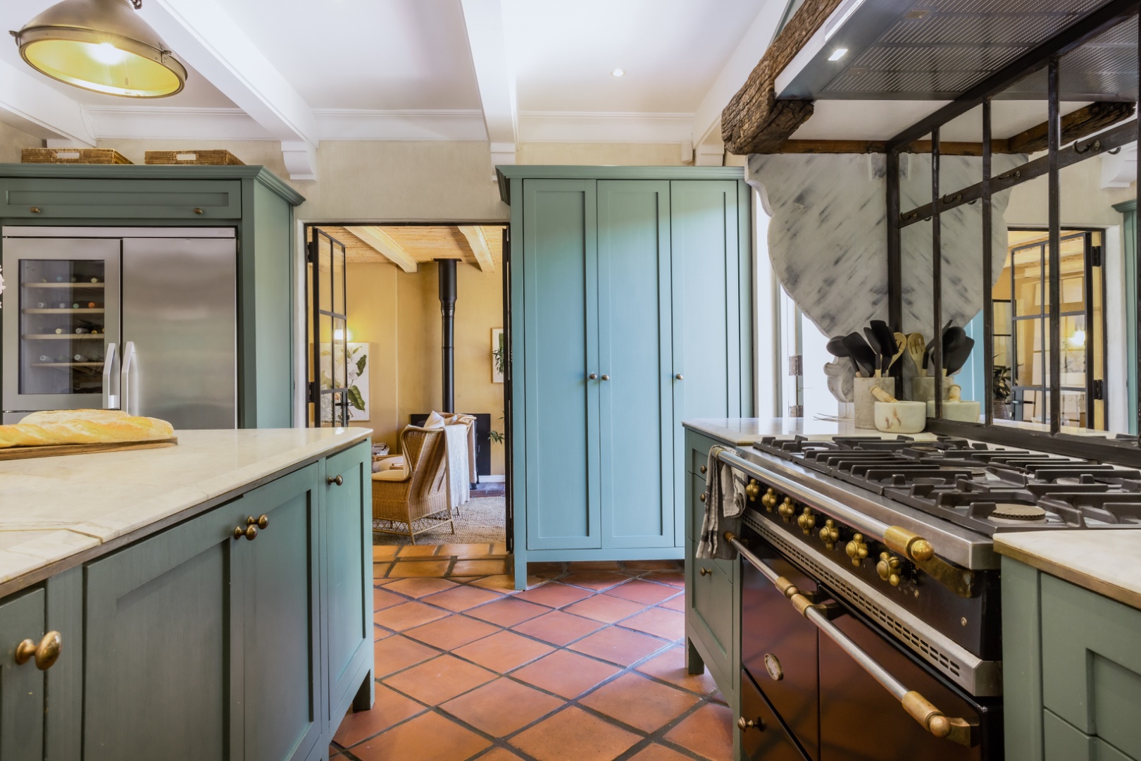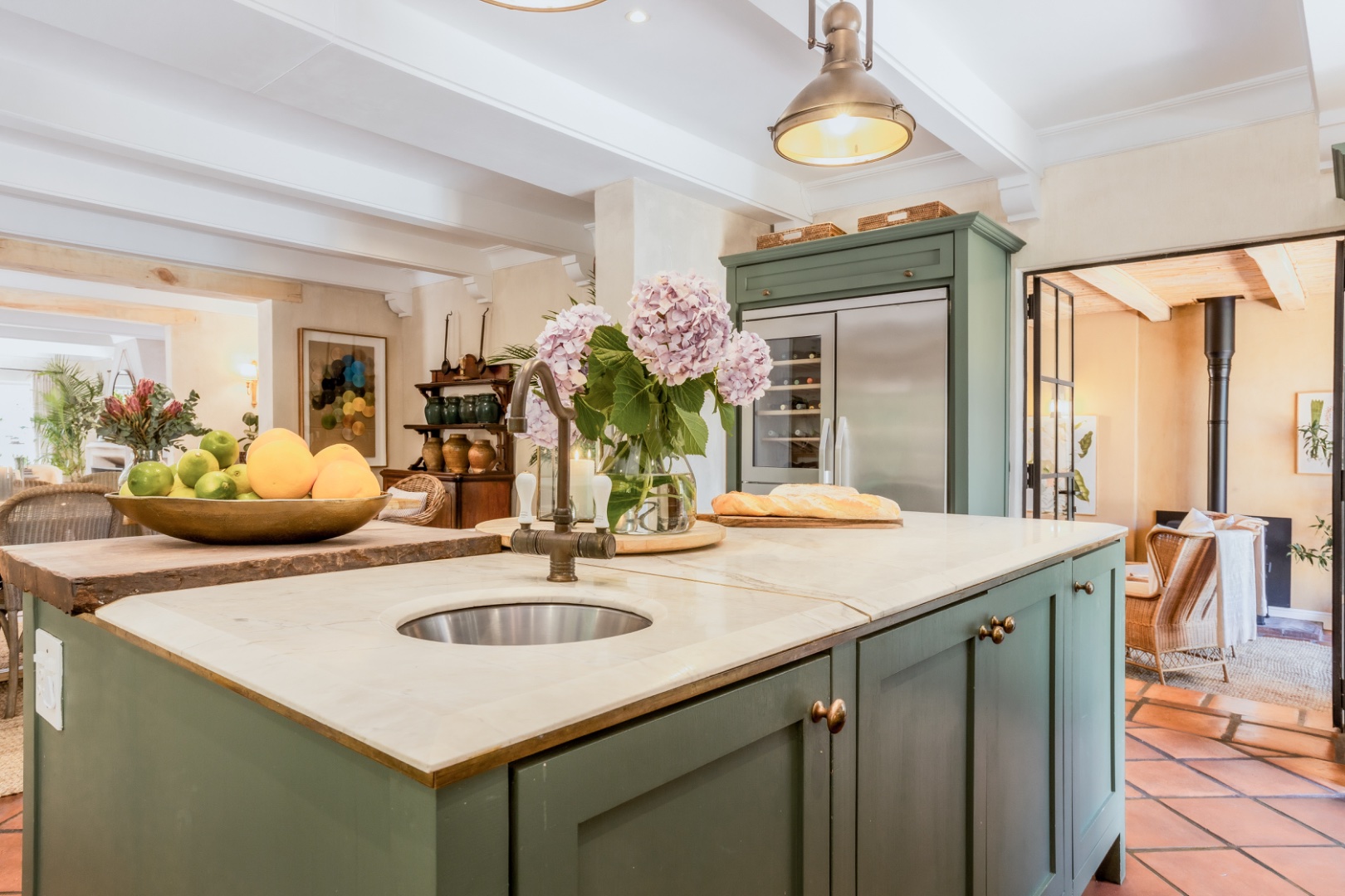 In winter under-floor heating in the bedrooms, an open fireplace and a wood-burning fireplace stove entice you indoors for red wine, crusty home baked bread and ripe Brie, perhaps the spoils of your morning out at the markets or the nearby wine farms. Stacked at the fireplace dense, hard Kameeldoring wood adds rustic warmth to the room and when the wood burns, the house is fragrant with its distinctive musky, aromatic scent. By night, the exterior of the house is lit to create welcoming pools of warm light. ‘Calm, quiet and solid,’ say the owners about their special retreat. ‘We love the fact that we sleep so well here.’ With three suites and an extra loft, this is where a family can call Limewood Lodge home – a base from which to explore Cape Point, the city and Stellenbosch and Franschhoek, all easy drives.