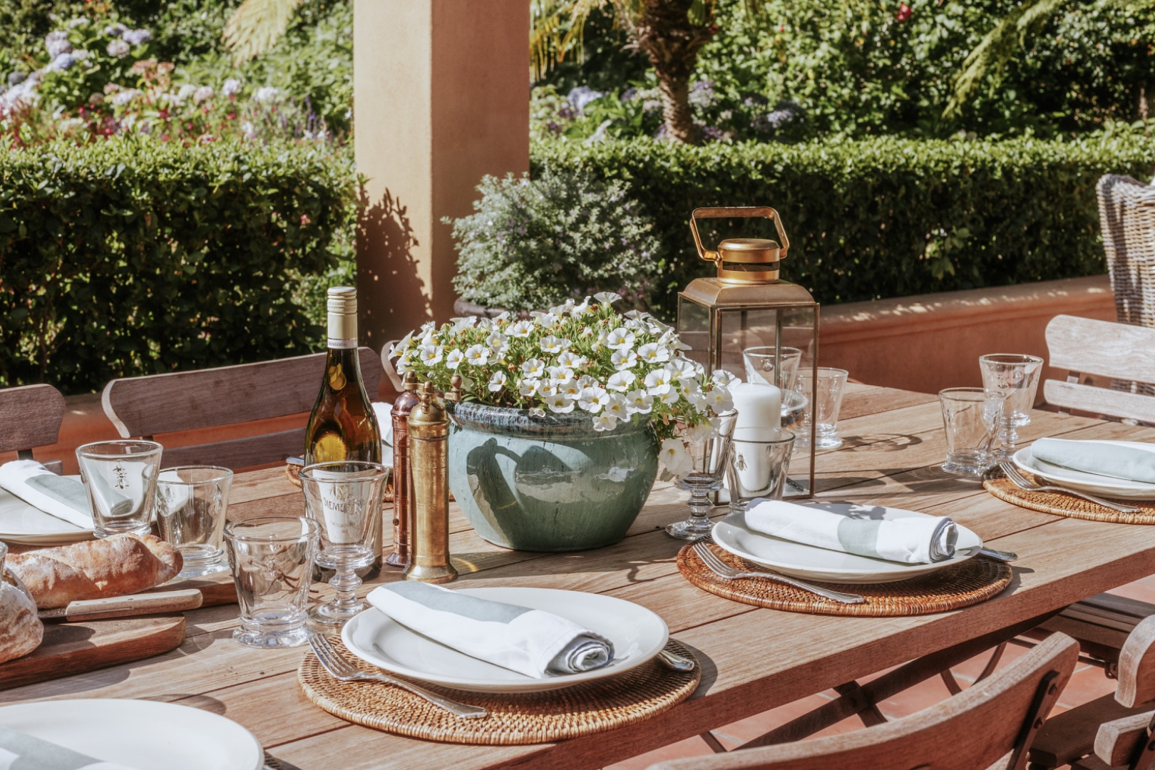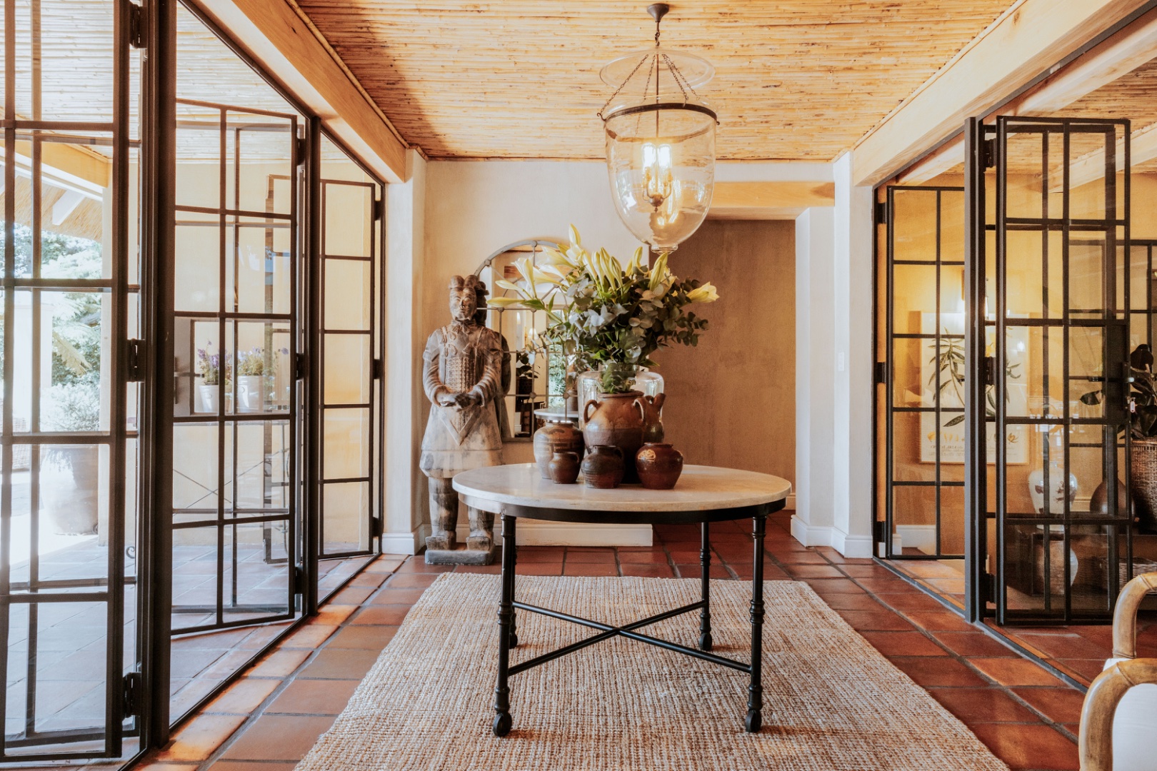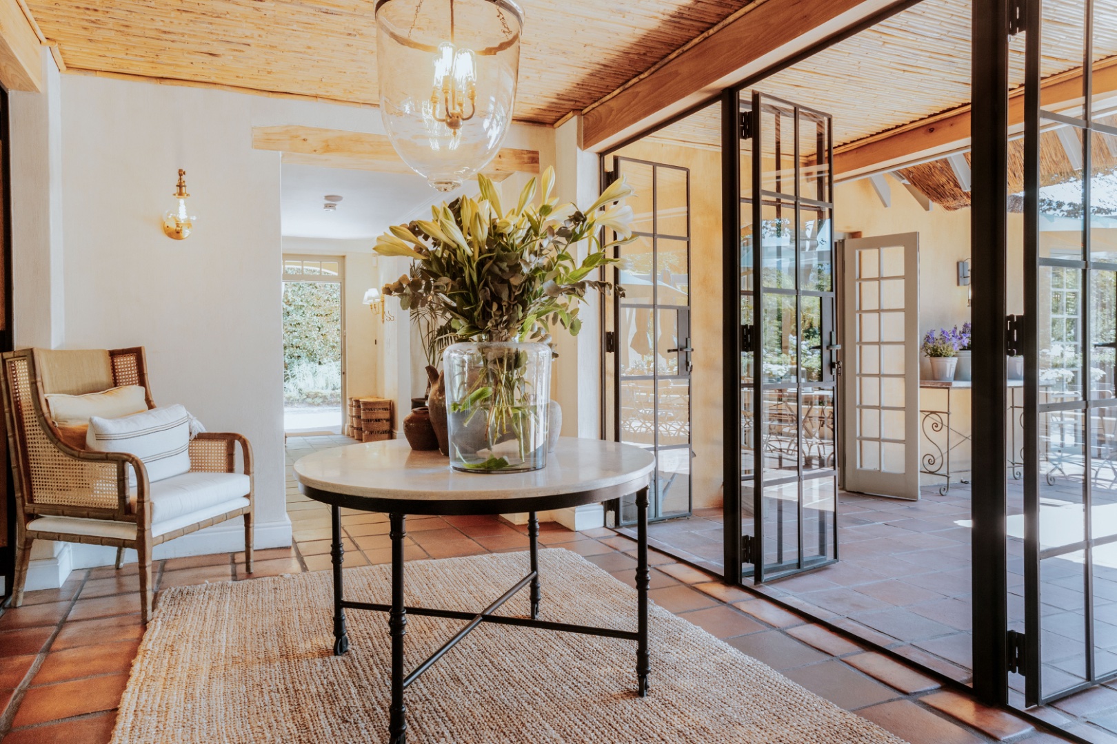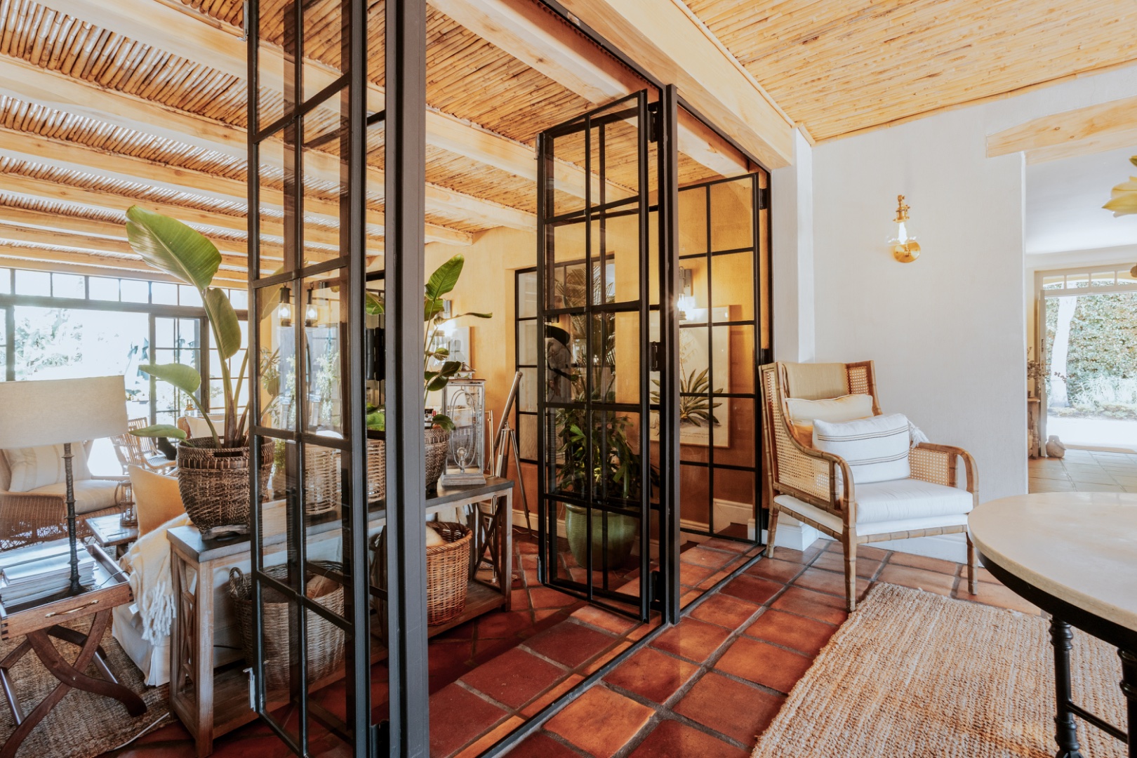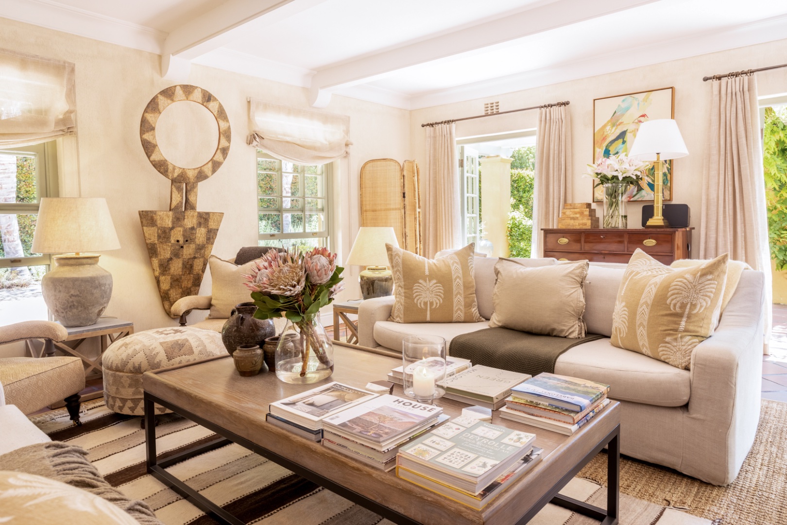 In winter under-floor heating in the bedrooms, an open fireplace and a wood-burning fireplace stove entice you indoors for red wine, crusty home baked bread and ripe Brie, perhaps the spoils of your morning out at the markets or the nearby wine farms. Stacked at the fireplace dense, hard Kameeldoring wood adds rustic warmth to the room and when the wood burns, the house is fragrant with its distinctive musky, aromatic scent. By night, the exterior of the house is lit to create welcoming pools of warm light. ‘Calm, quiet and solid,’ say the owners about their special retreat. ‘We love the fact that we sleep so well here.’ With three suites and an extra loft, this is where a family can call Limewood Lodge home – a base from which to explore Cape Point, the city and Stellenbosch and Franschhoek, all easy drives.
