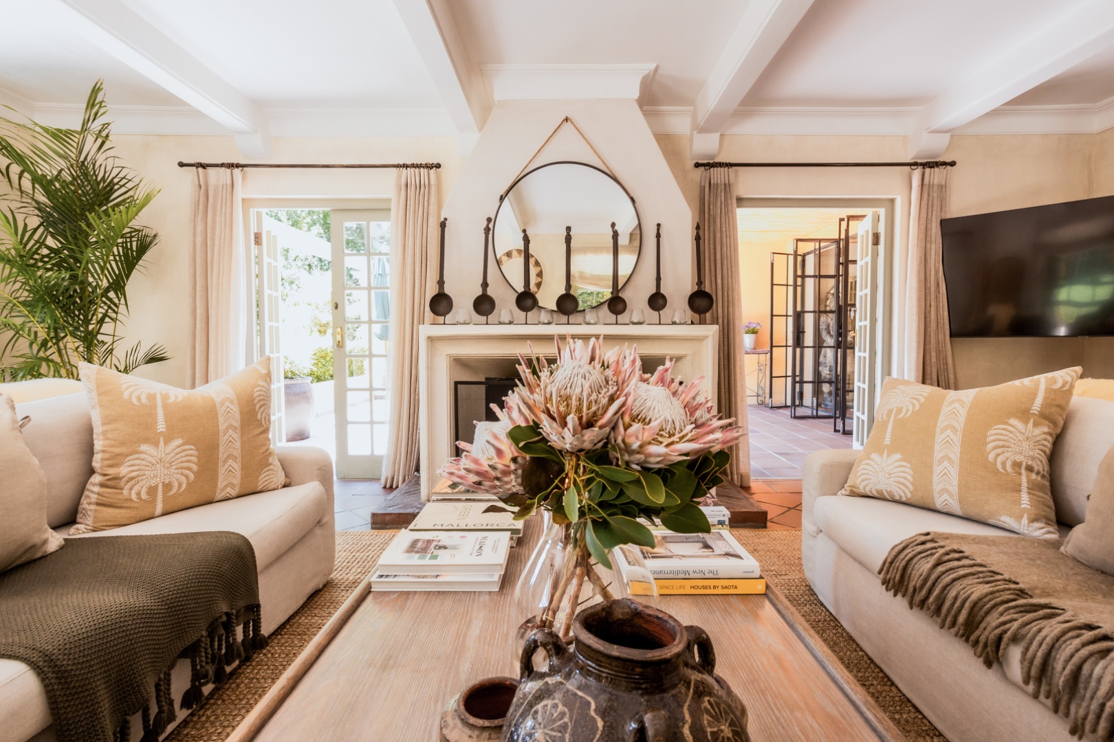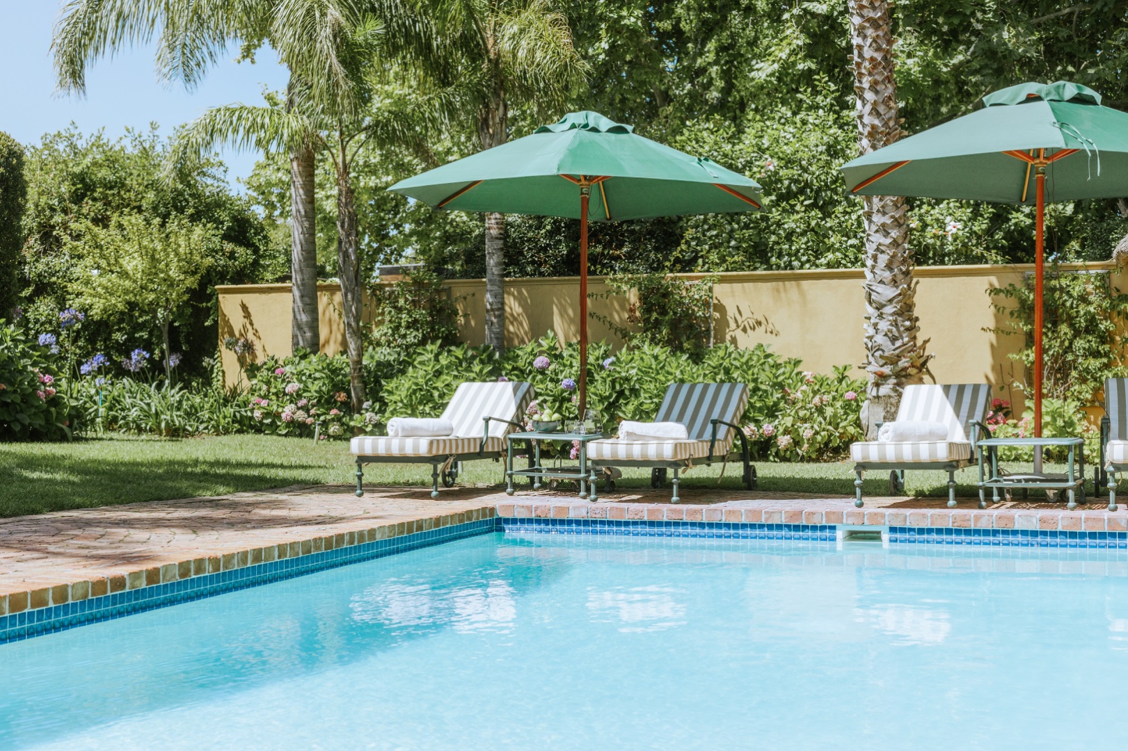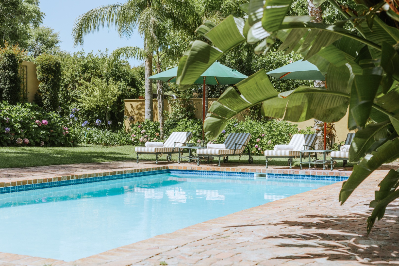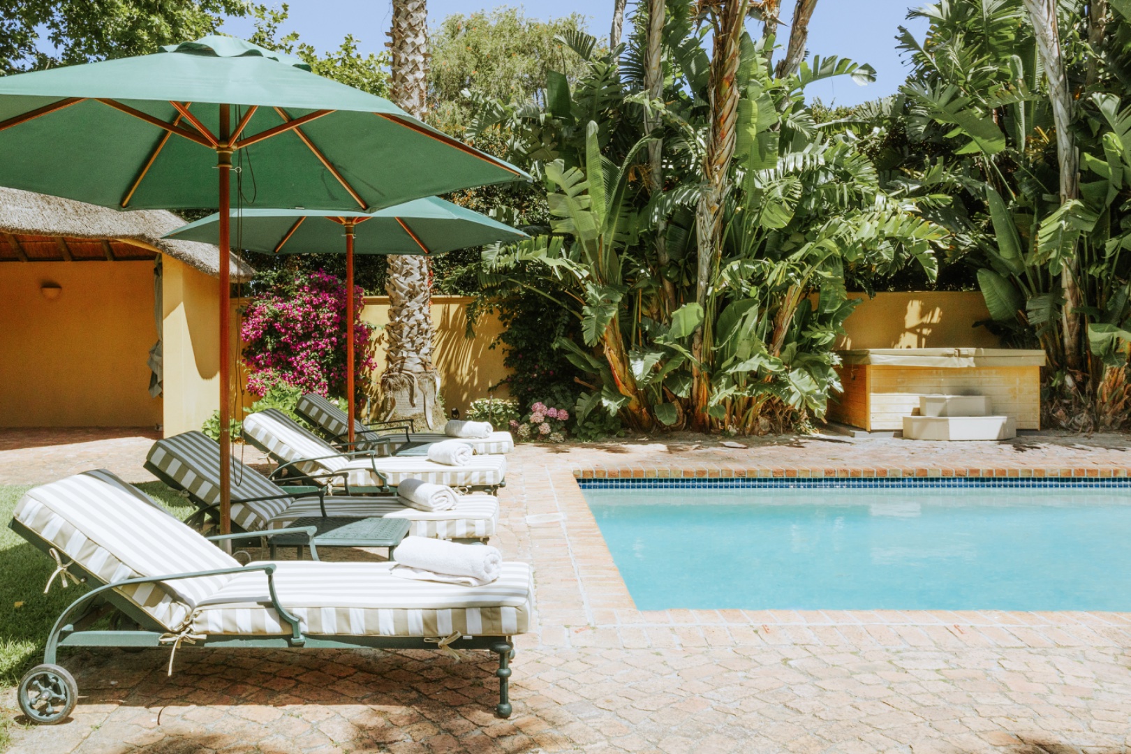 The house is fully serviced by regular staff: fireplaces are stacked and prepared: pool loungers are set out with swimming towels and all laundry services done on the premises.While stringent water restrictions remain in place, the water from the property’s borehole ensures an uninterrupted supply. The swimming pool has a net and the home is totally child-friendly. We also have an outdoor hot tub that is warm and enjoyable the whole year around.