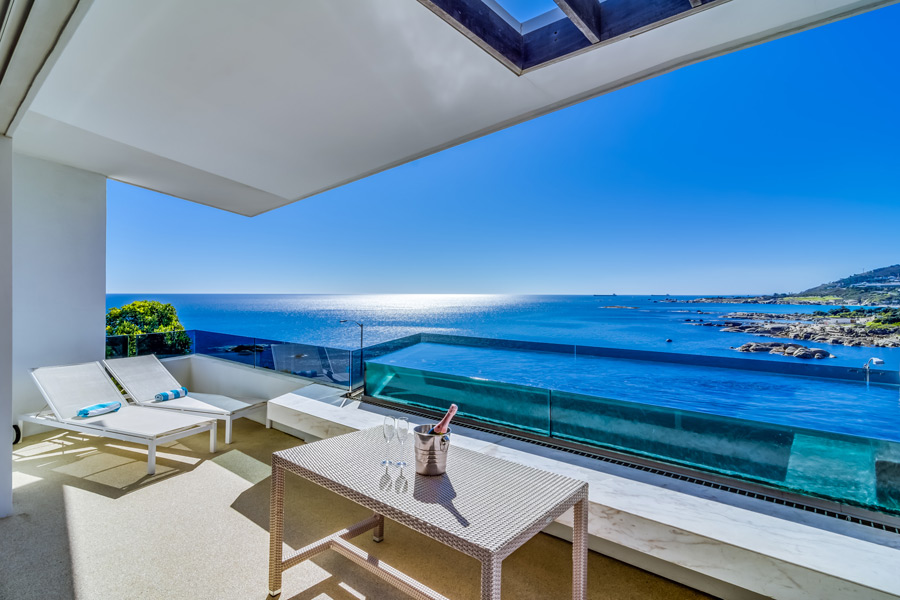 Ebb Tide is a sea-facing apartment overlooking Bali Bay in Camps Bay, offering spectacular views of the Atlantic Ocean and the Twelve Apostles.