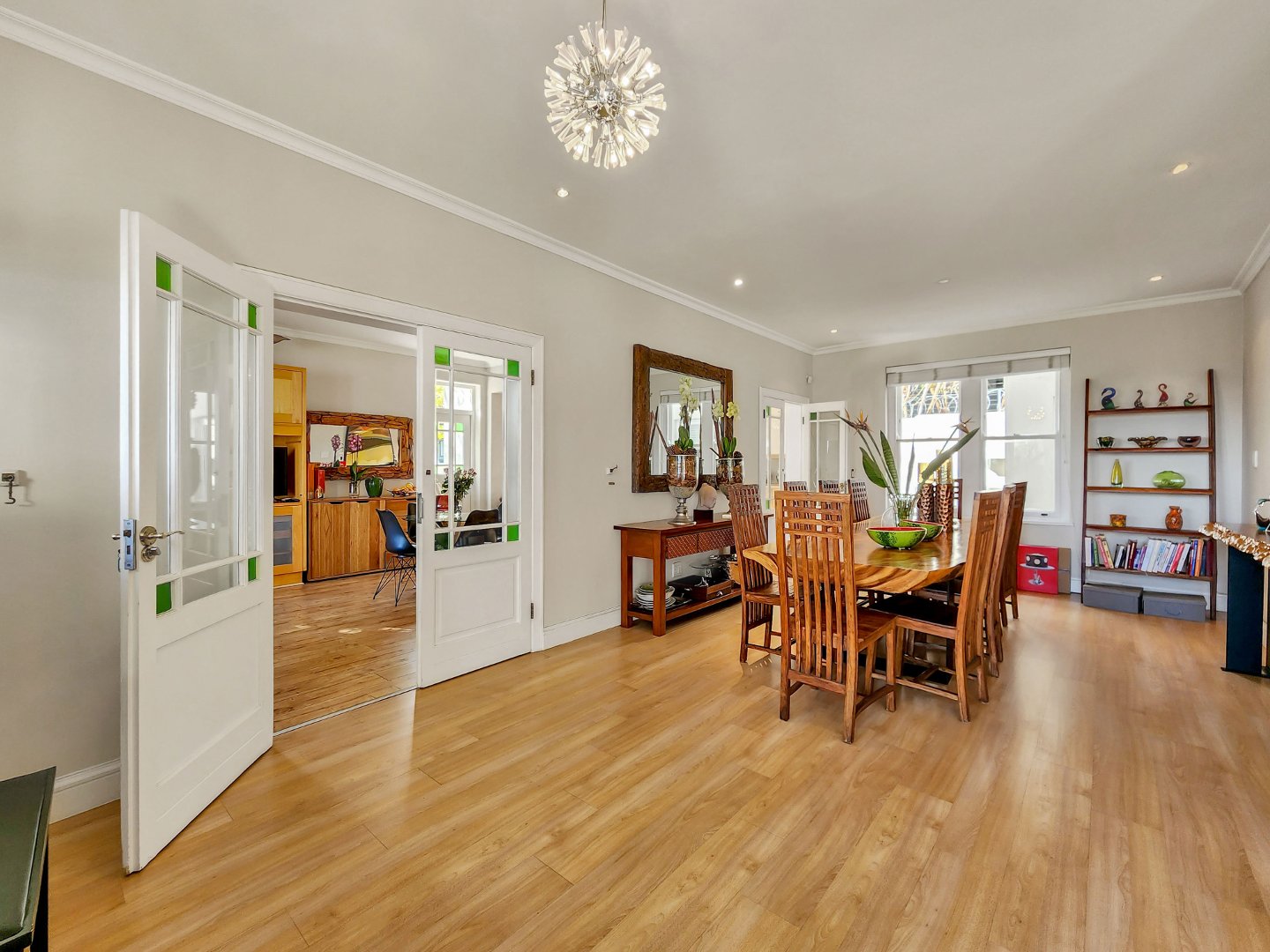 Located on the ground floor, one is met with the main entertainment space, the formal lounge and dining room, which leads onto the entertainer’s kitchen and family room. The flow between indoor and outdoor living allows for effortless harmony throughout the main living space; a guest WC is also located on this level.