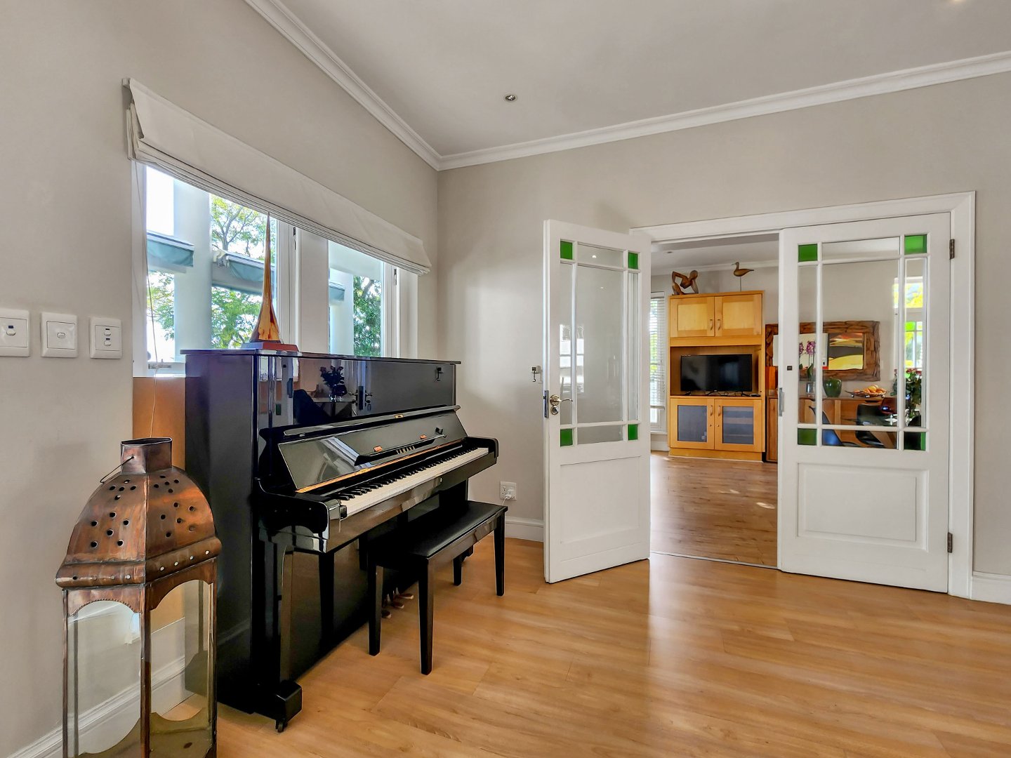 The master suite is on the second floor and offers an en-suite bathroom, dressing room and master lounge. The additional three bedrooms are found on the first floor and share two family-size bathrooms. Also found on this level is a small computer nook/ pyjama lounge/study.
