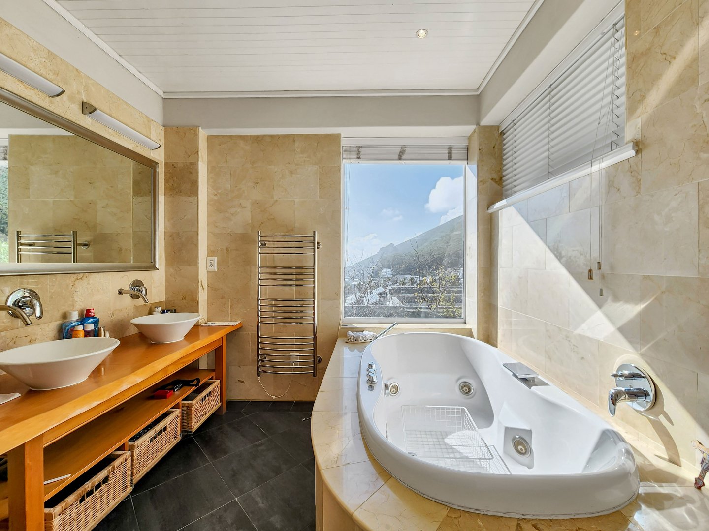 This large family home is spread across three levels and boasts magnificent mountains and ocean views from every floor.
