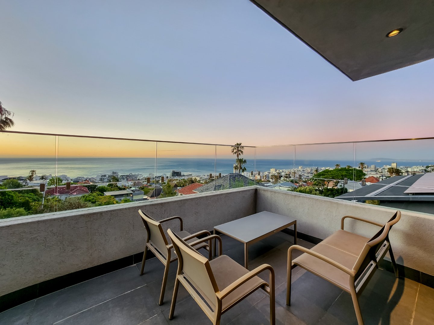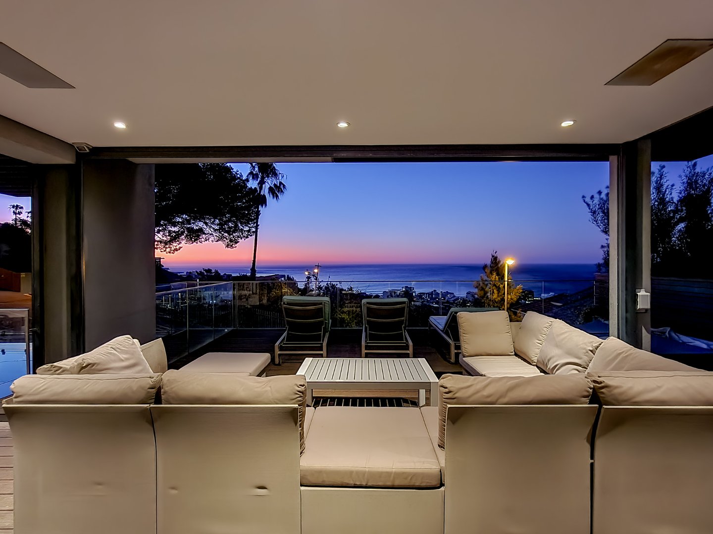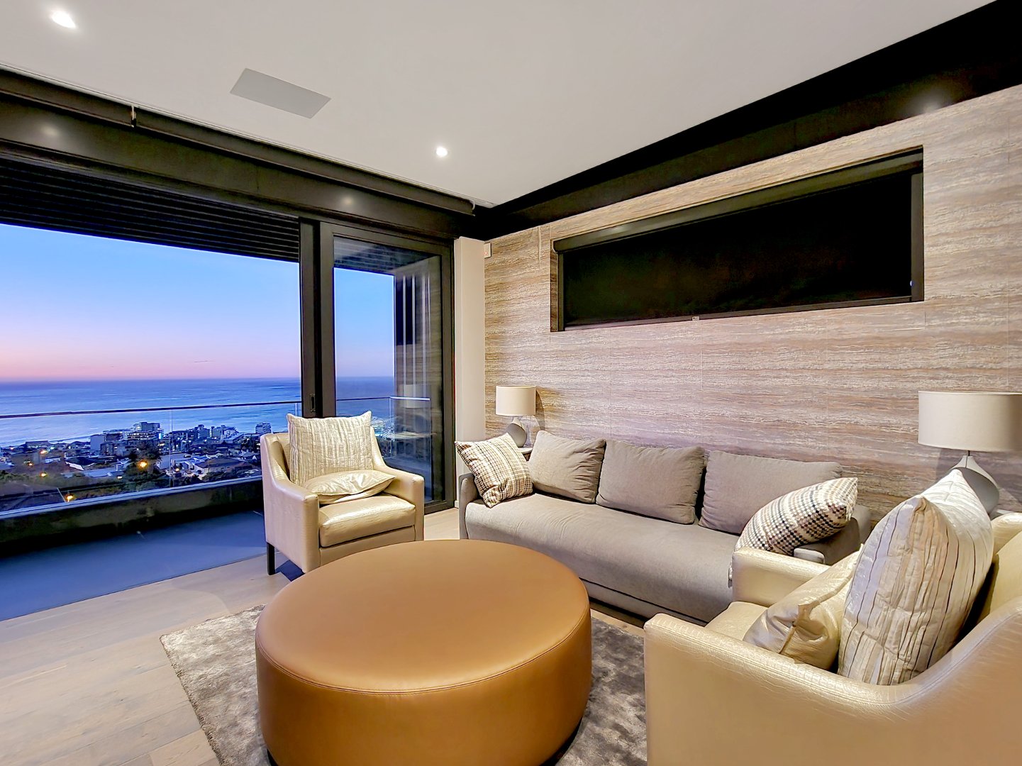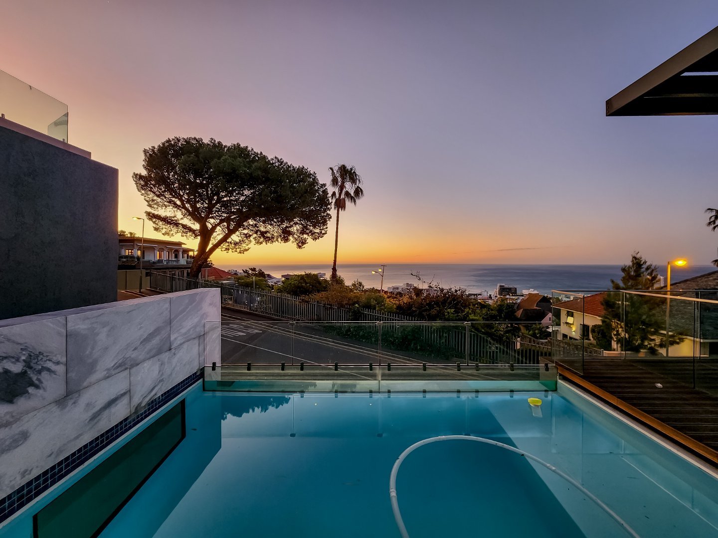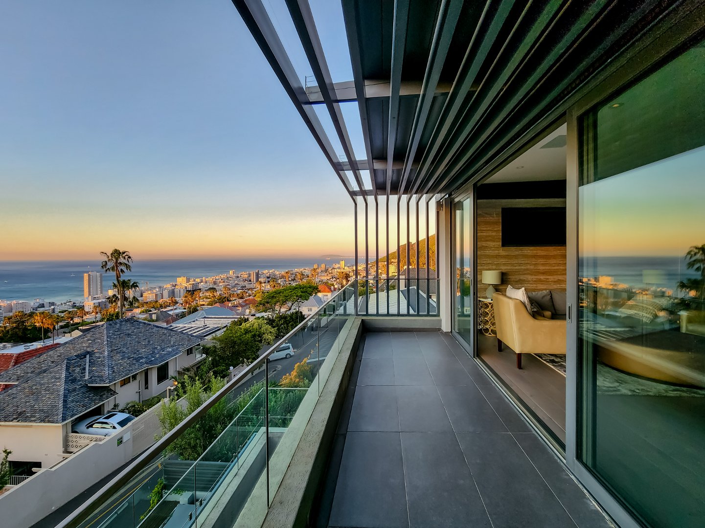 This luxurious, three-story residence in prestigious Fresnaye stands poised against the slopes of Lion’s Head, with sweeping views of the Atlantic Ocean stretching out below.