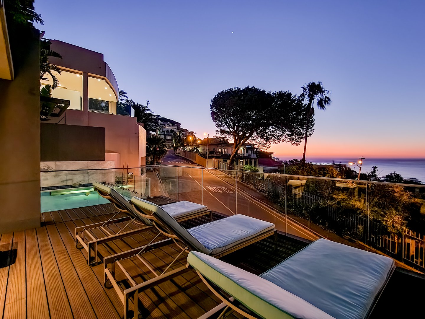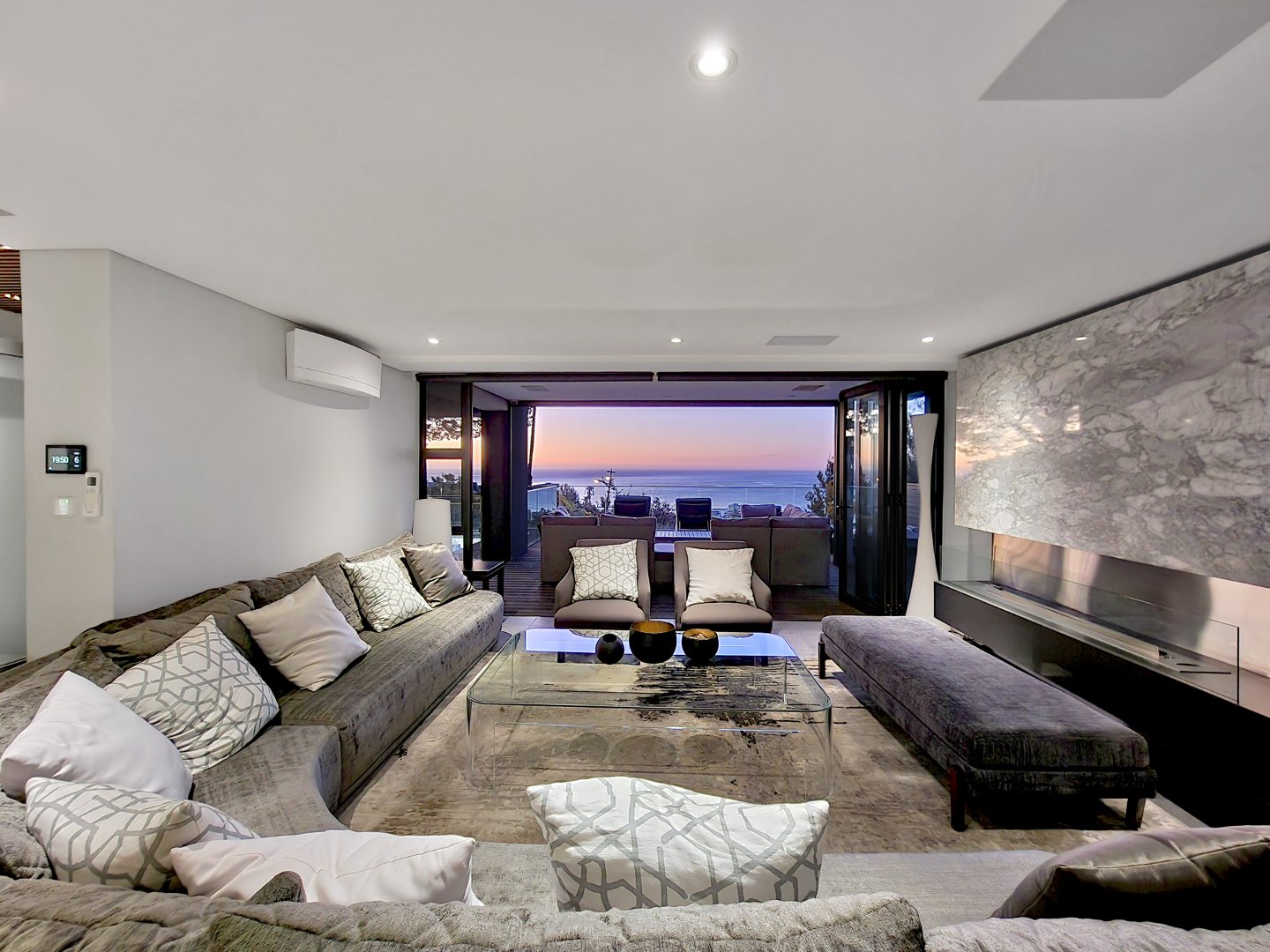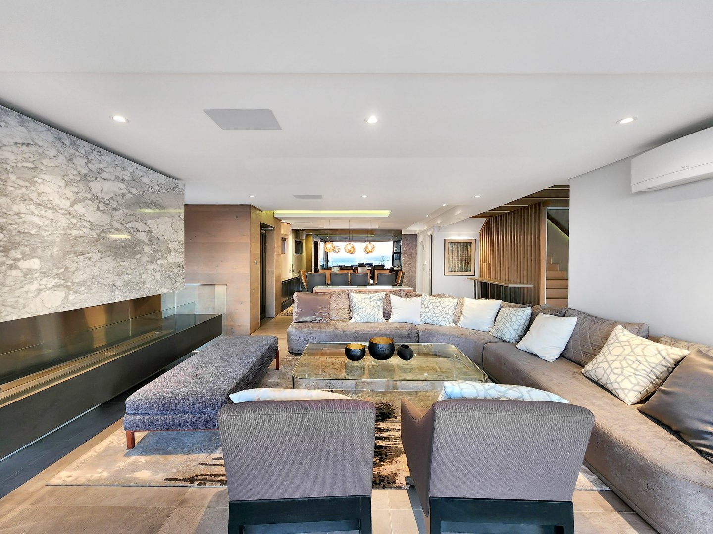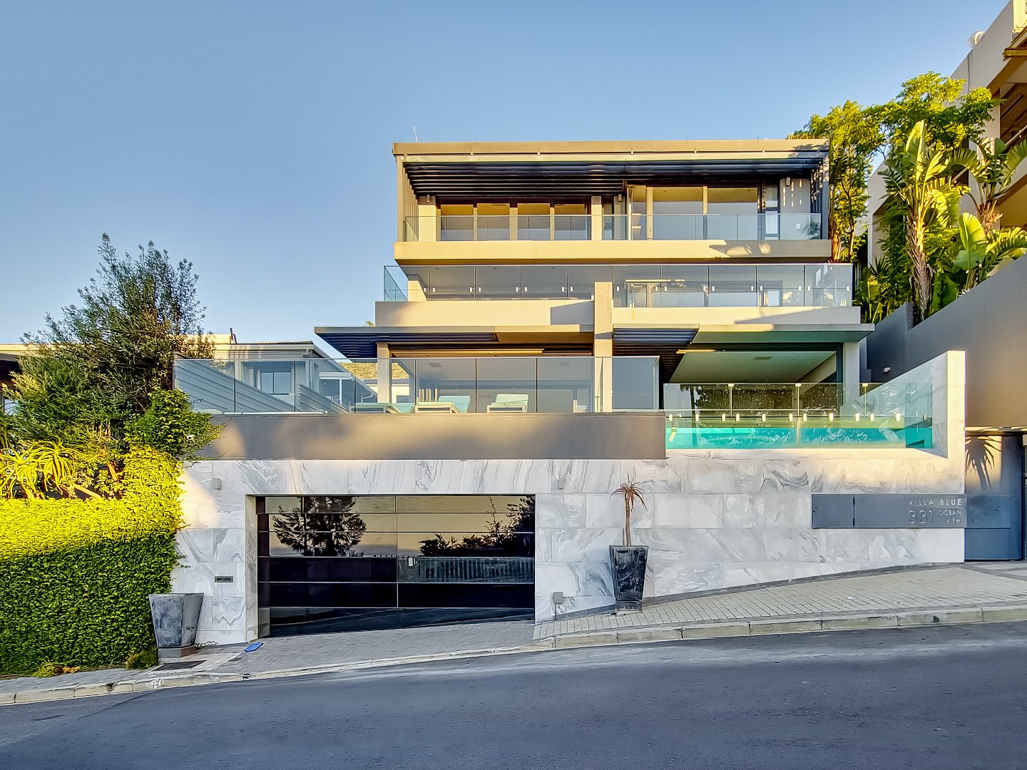 This luxurious, three-story residence in prestigious Fresnaye stands poised against the slopes of Lion’s Head, with sweeping views of the Atlantic Ocean stretching out below.