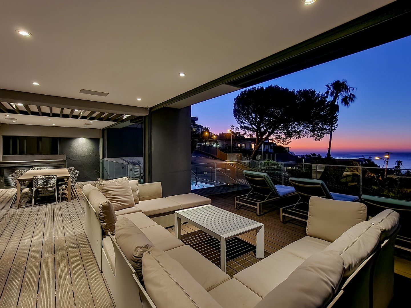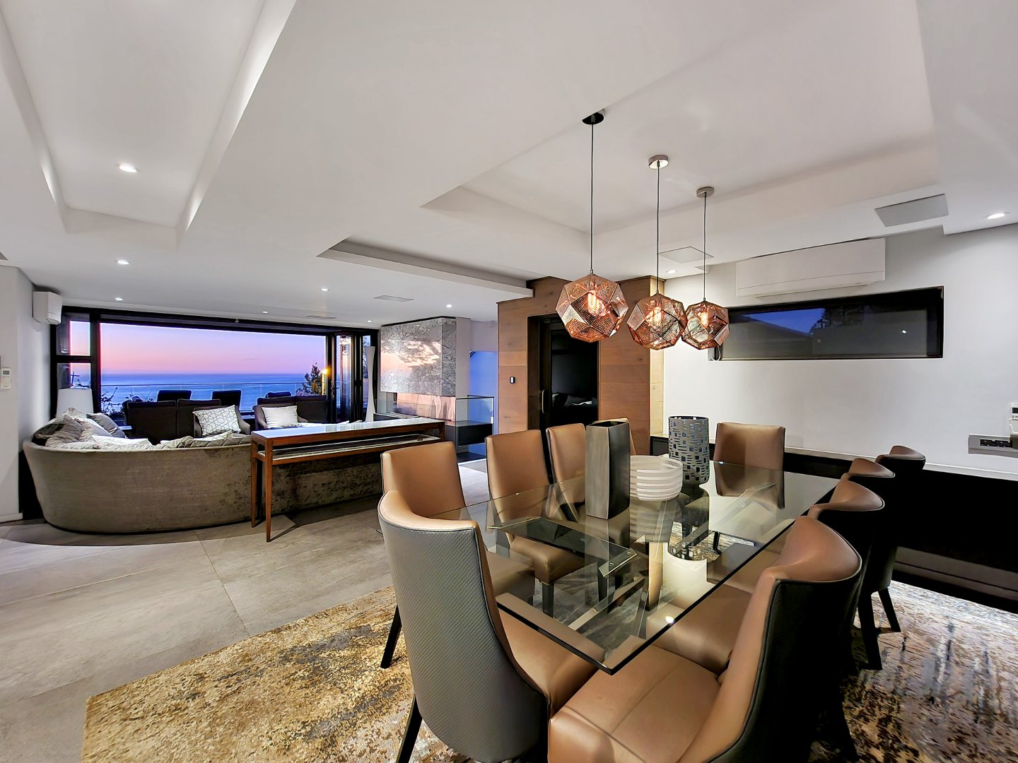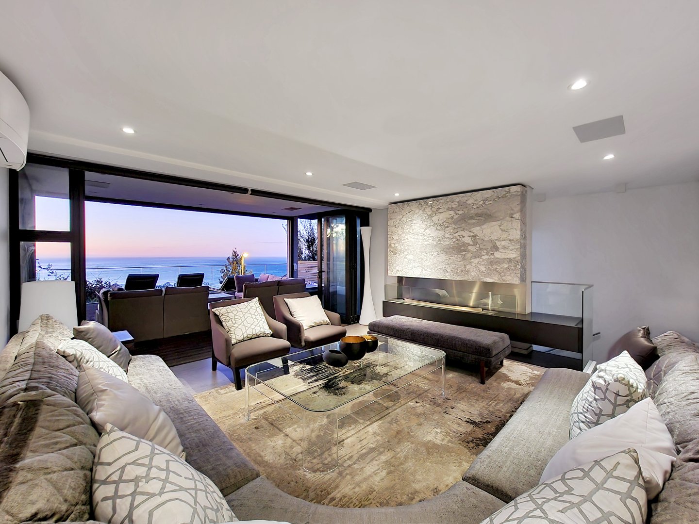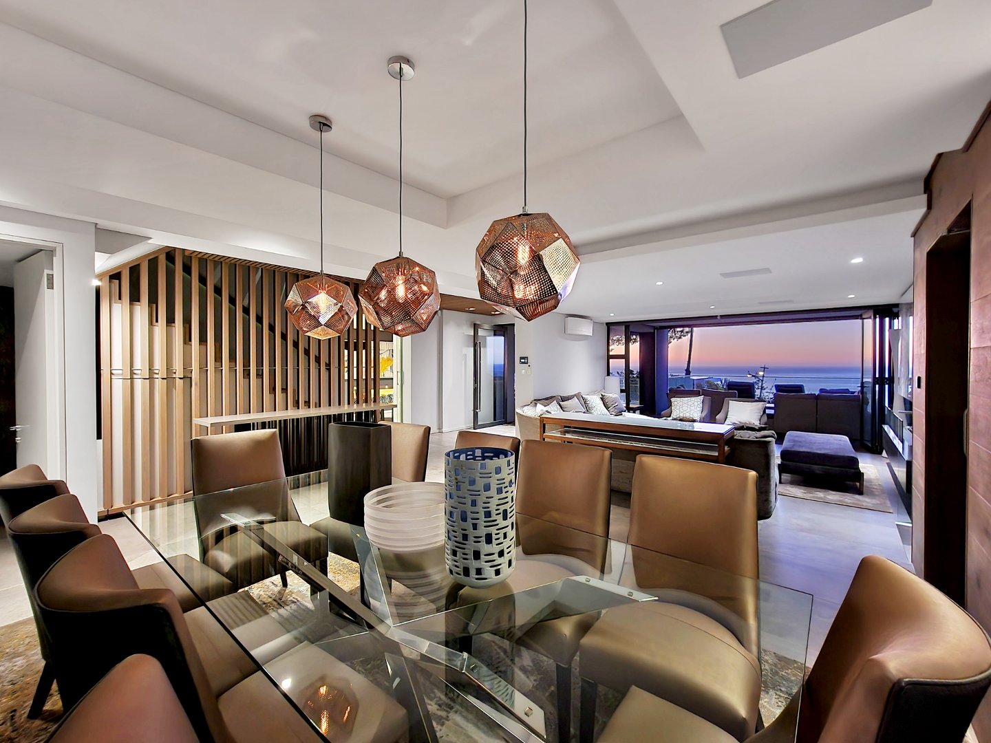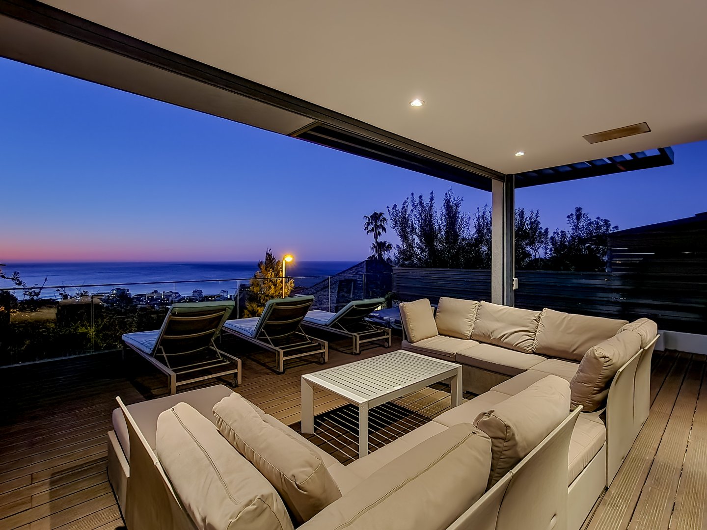 This luxurious, three-story residence in prestigious Fresnaye stands poised against the slopes of Lion’s Head, with sweeping views of the Atlantic Ocean stretching out below.