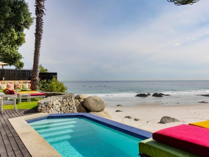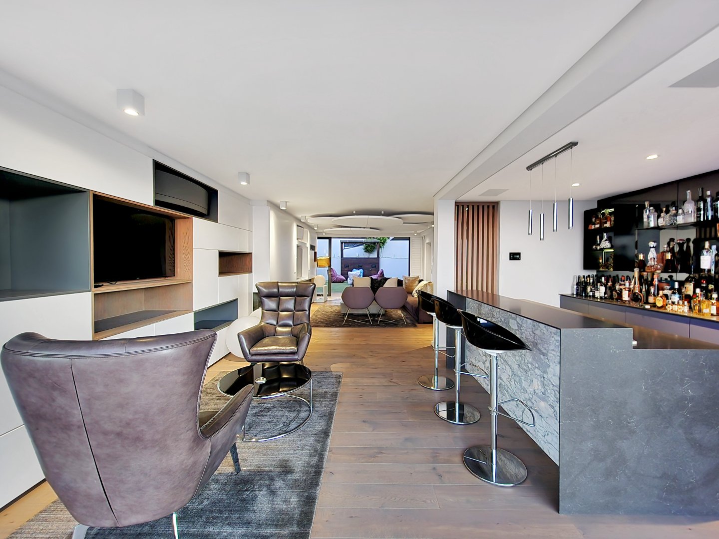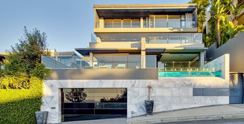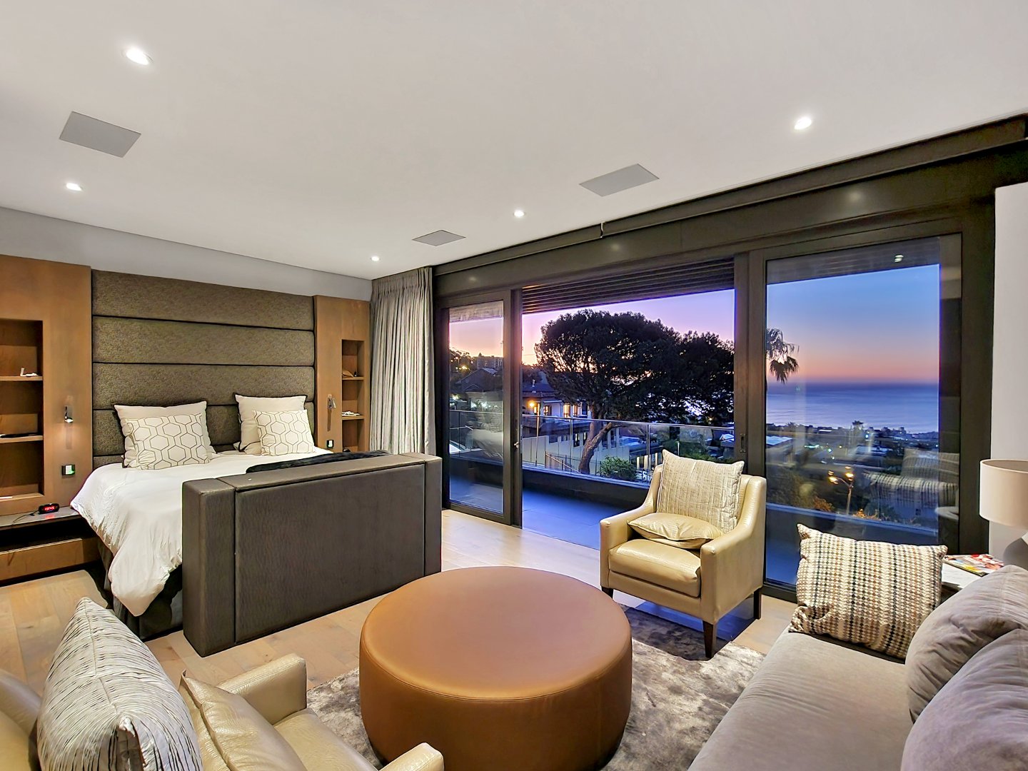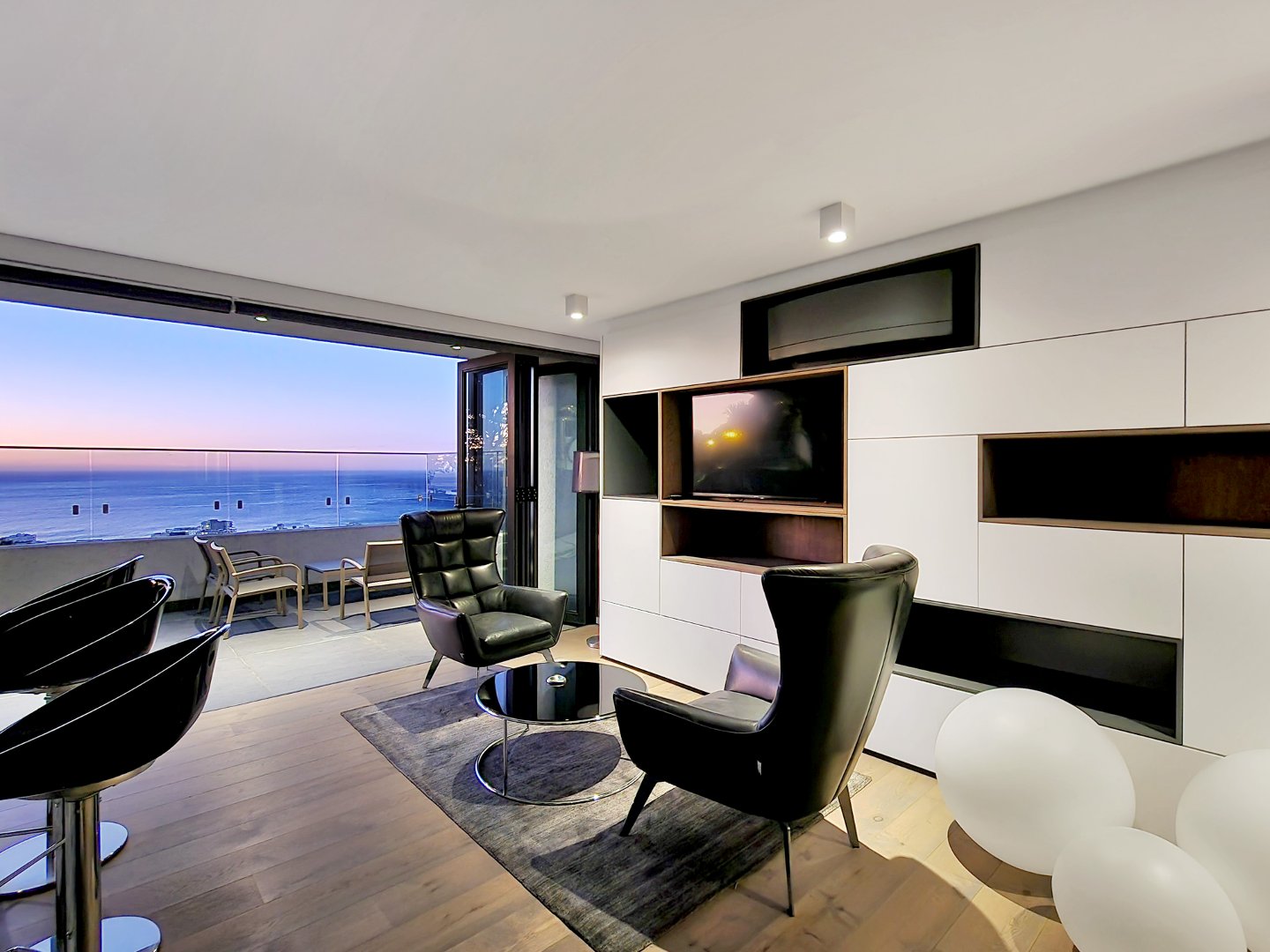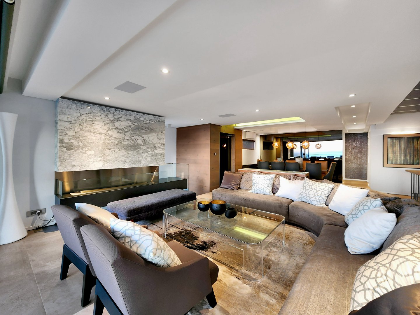 This luxurious, three-story residence in prestigious Fresnaye stands poised against the slopes of Lion’s Head, with sweeping views of the Atlantic Ocean stretching out below.
