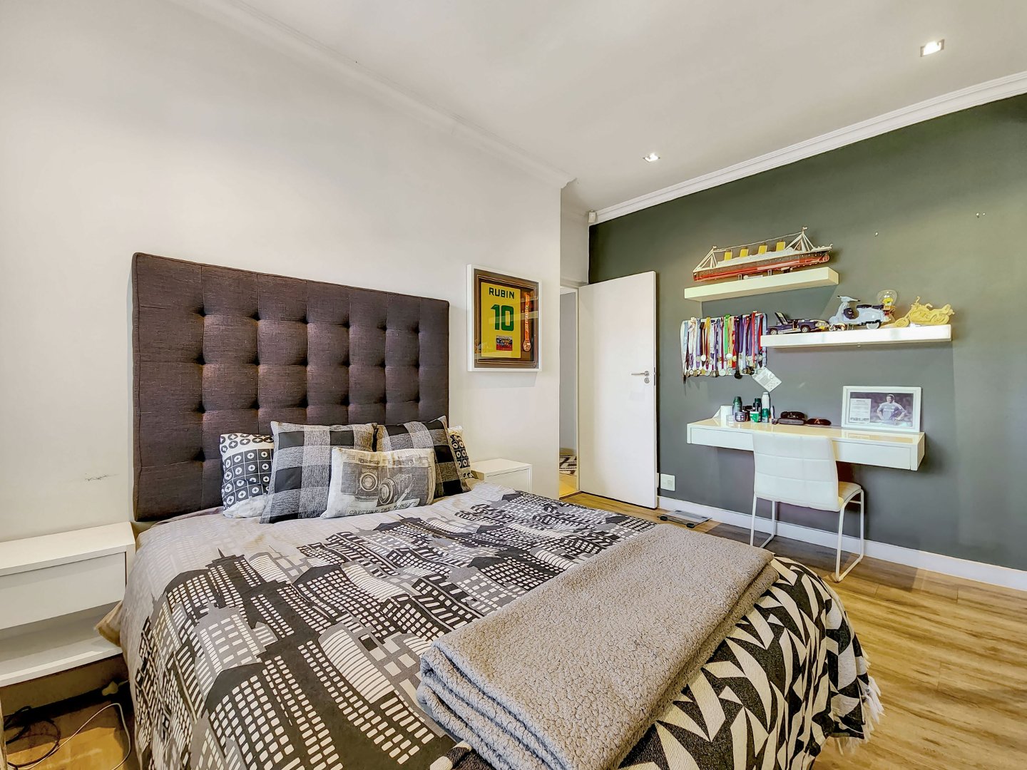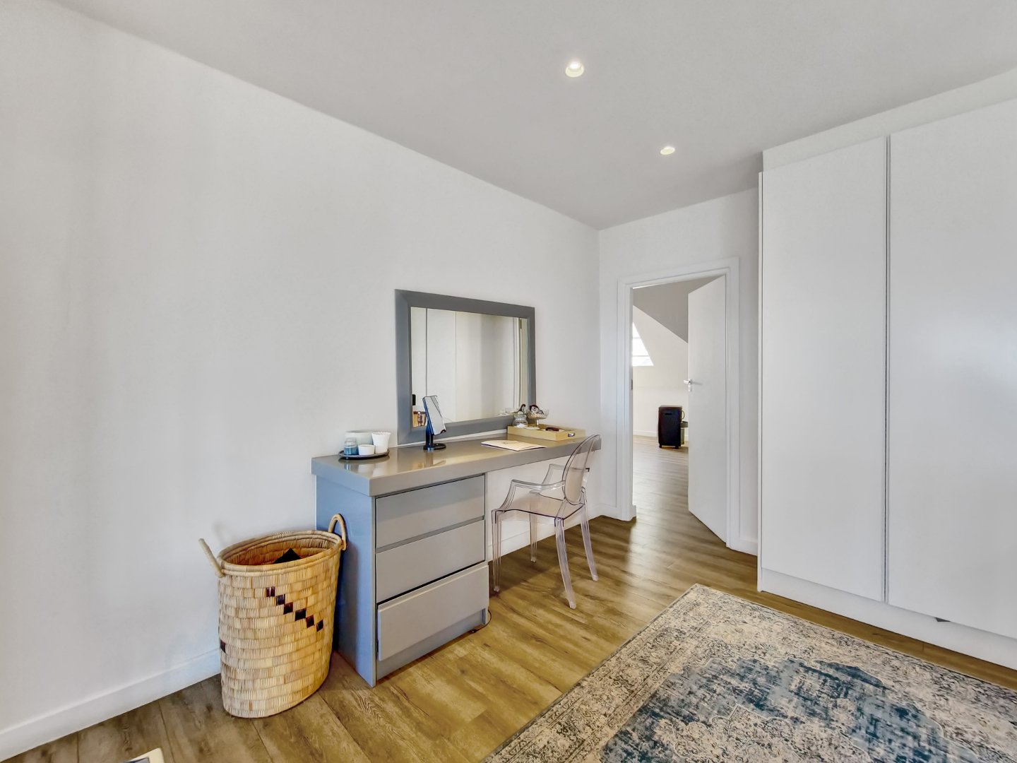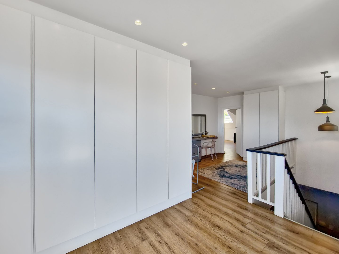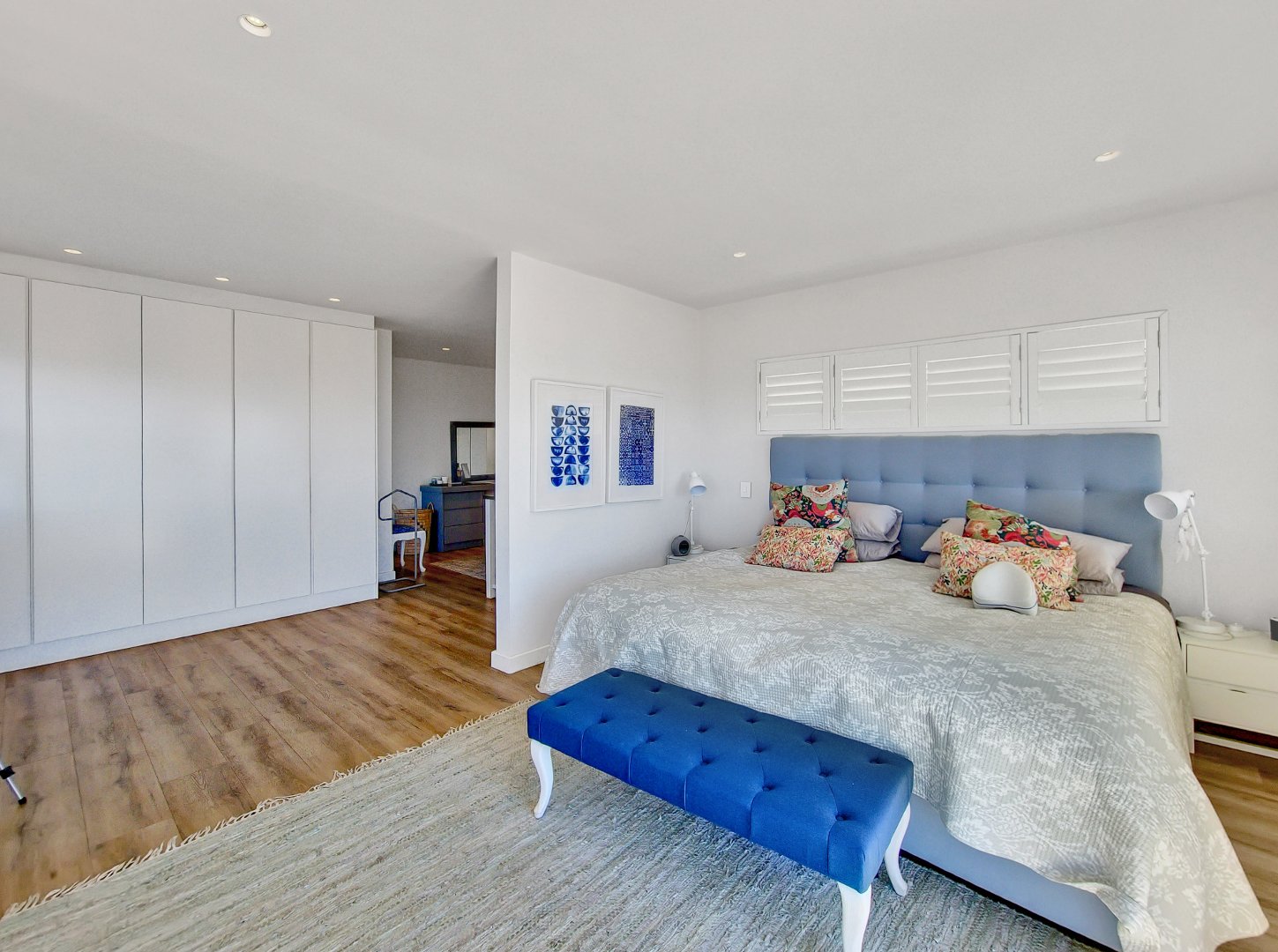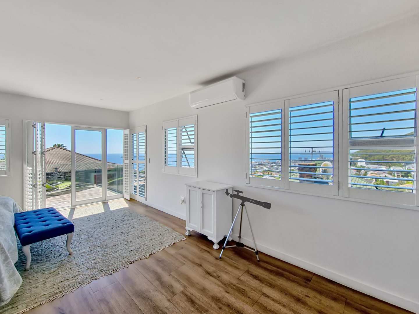 Moving to the upper level, you’ll discover the master suite, characterized by its luxurious size and breathtaking sea views. The master suite is complete with built-in cupboards, a vanity, and an ensuite bathroom. The crowning feature of this level is the stunning balcony, an ideal spot for watching the sunrise or sunset.