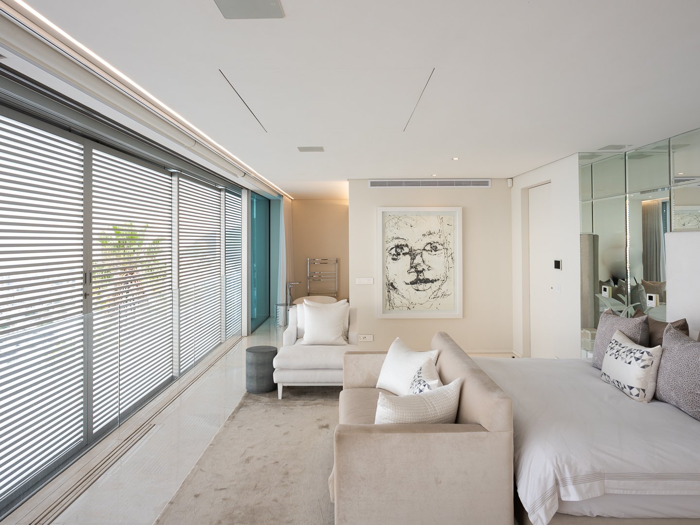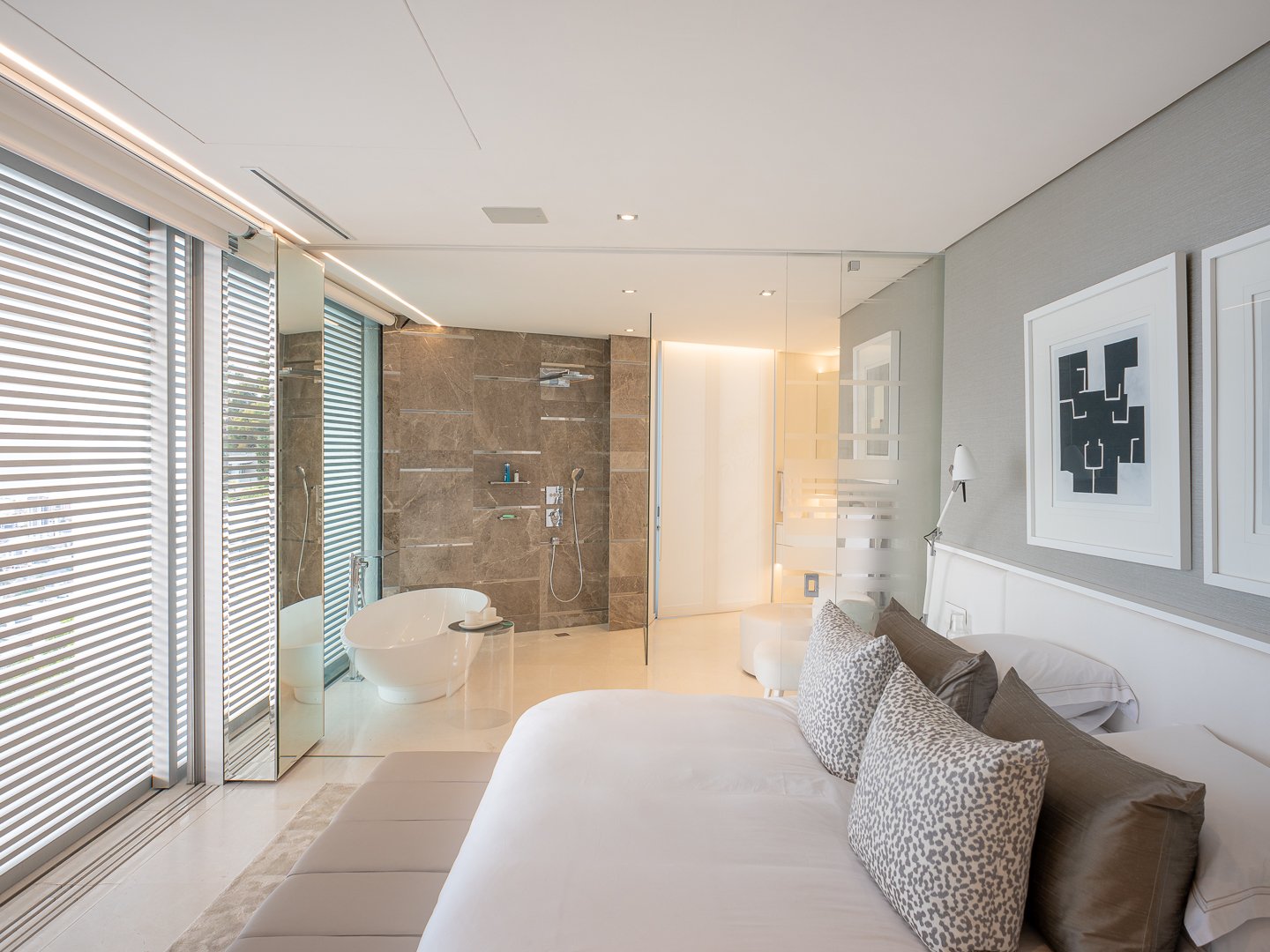 One can take the elevator to the top level and step out onto a floating glass bridge, which leads to the master suite which has a backdrop of the expansive Atlantic Ocean, giving a true one-of-a-kind daily backdrop. There are a further three en-suite bedrooms all with the same level of creative flair.