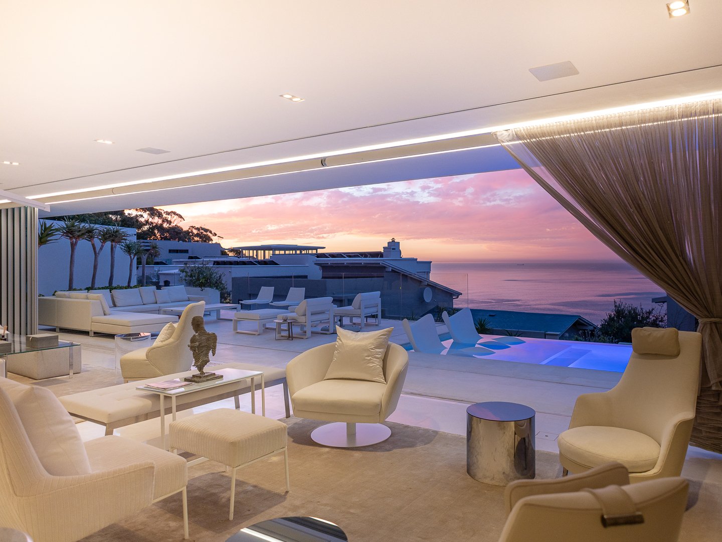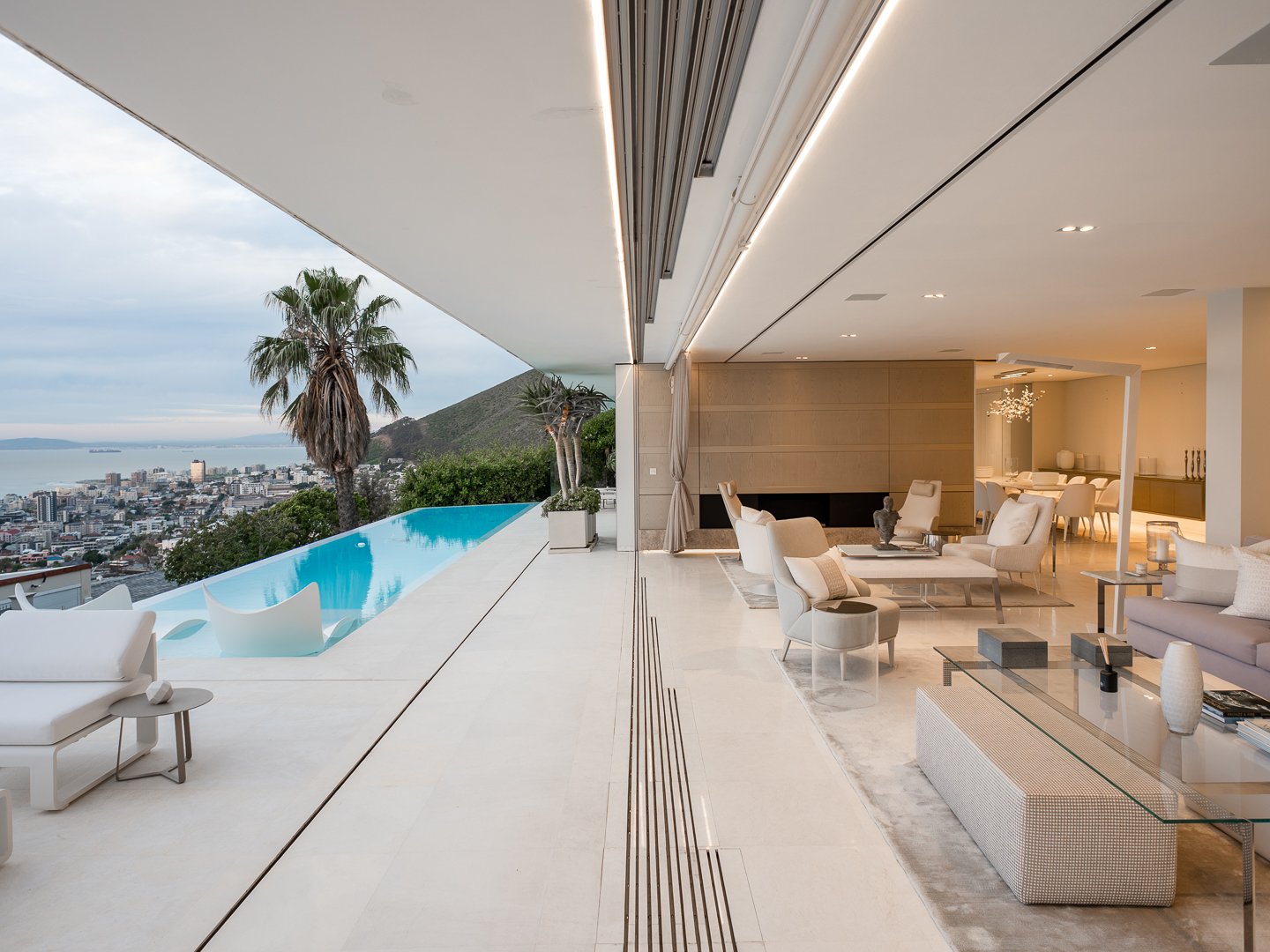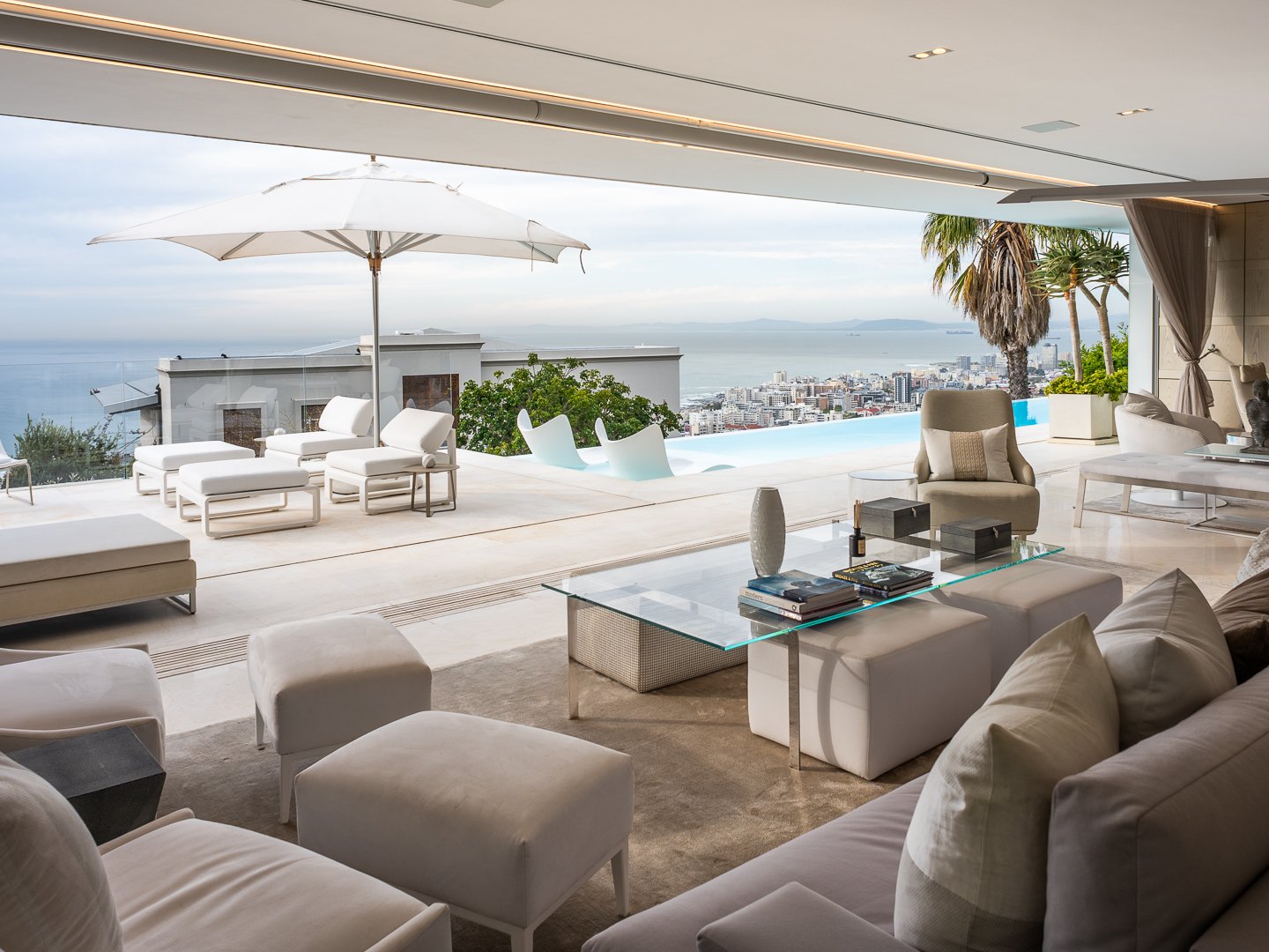 Each of these spaces flows out onto the most spectacular and sprawling entertainers deck accompanied by a stylish rim-flow pool with sweeping views over the Atlantic Ocean towards Lions Head and beyond. The house is fully automated and has the highest quality joinery and carpentry throughout with many fittings having been imported.