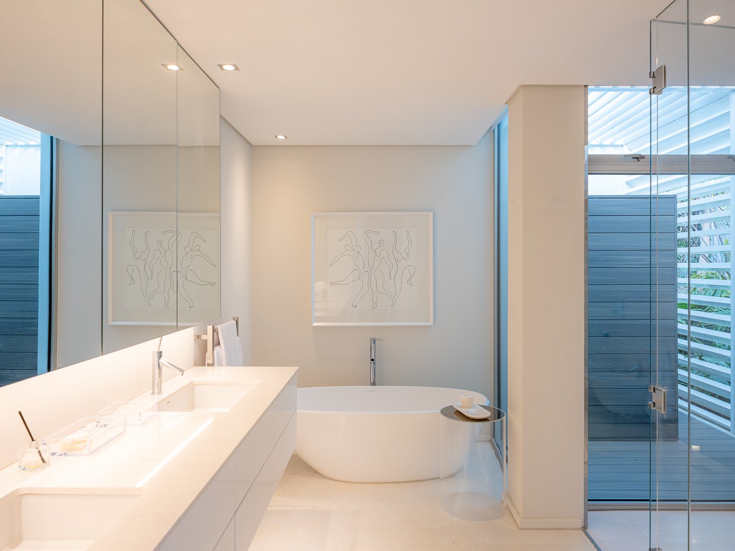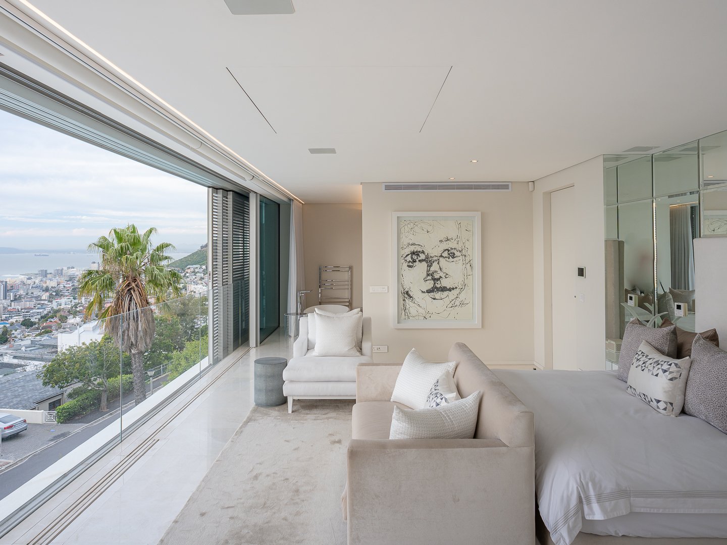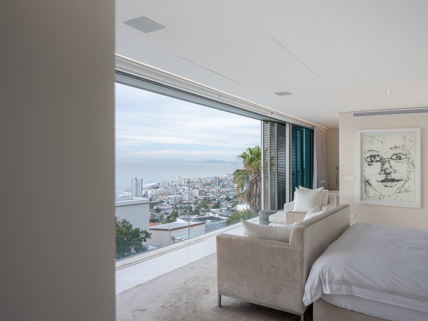 One can take the elevator to the top level and step out onto a floating glass bridge, which leads to the master suite which has a backdrop of the expansive Atlantic Ocean, giving a true one-of-a-kind daily backdrop. There are a further three en-suite bedrooms all with the same level of creative flair.