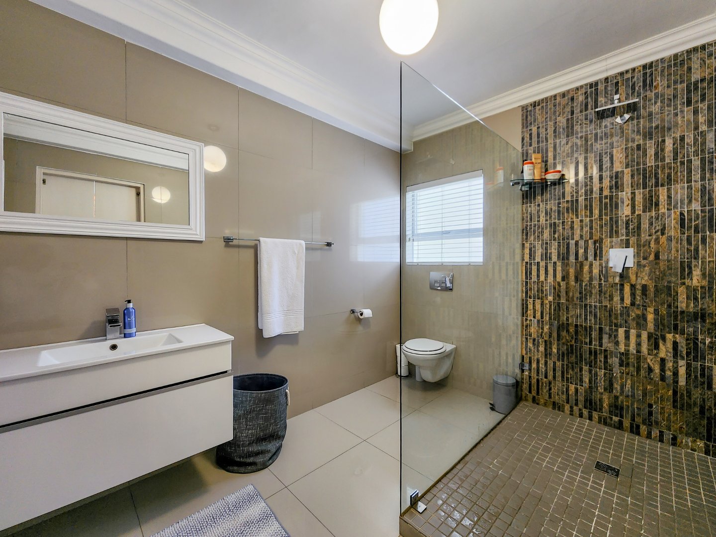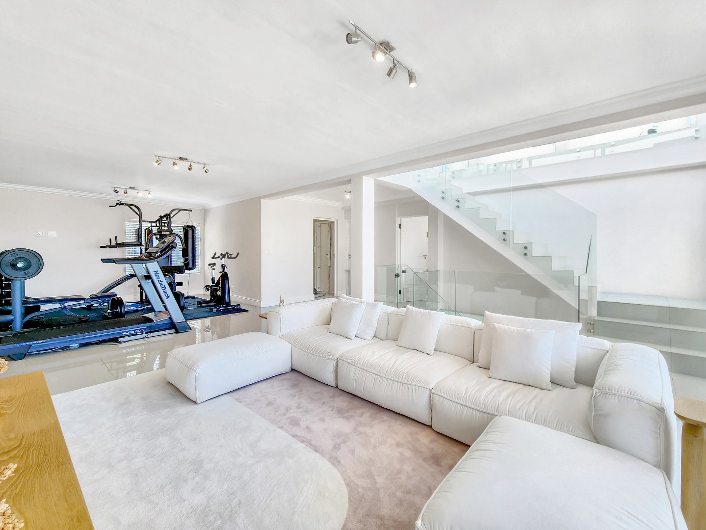 The versatile middle level offers an array of possibilities, currently serving as a gym and TV lounge but easily adaptable to accommodate various needs, whether it be a children’s playroom, a home office, or a cosy retreat separate from the main living space.