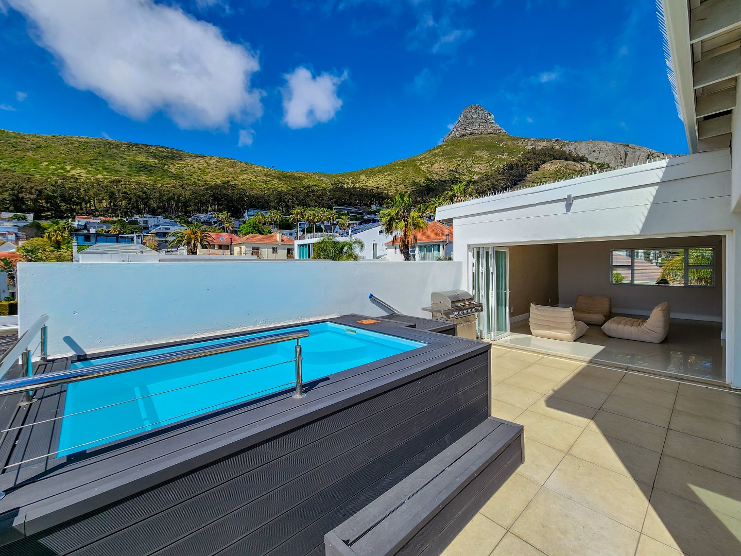 Ascend to the pinnacle of tranquillity on the top level, where breathtaking views and abundant natural light create an idyllic setting for relaxation and entertainment. Here, an entertainment space with a kitchenette and bar area opens onto a private deck featuring a refreshing splash pool, transforming your everyday routine into a perpetual vacation.