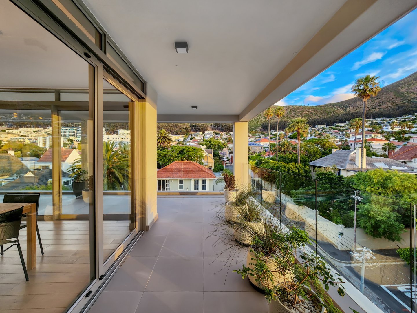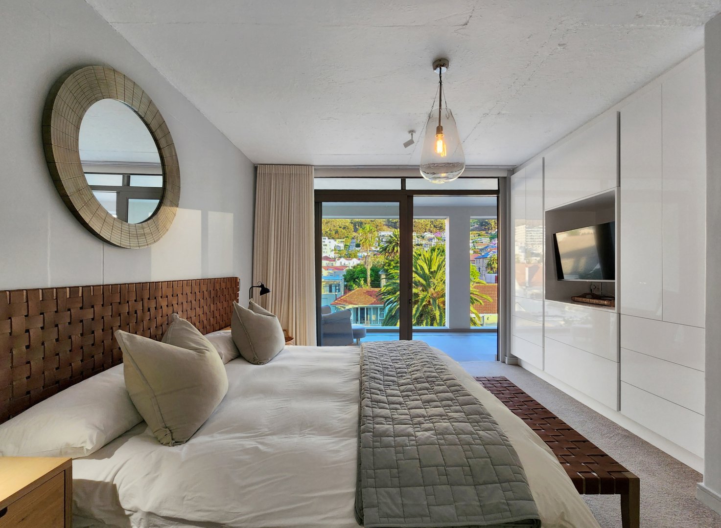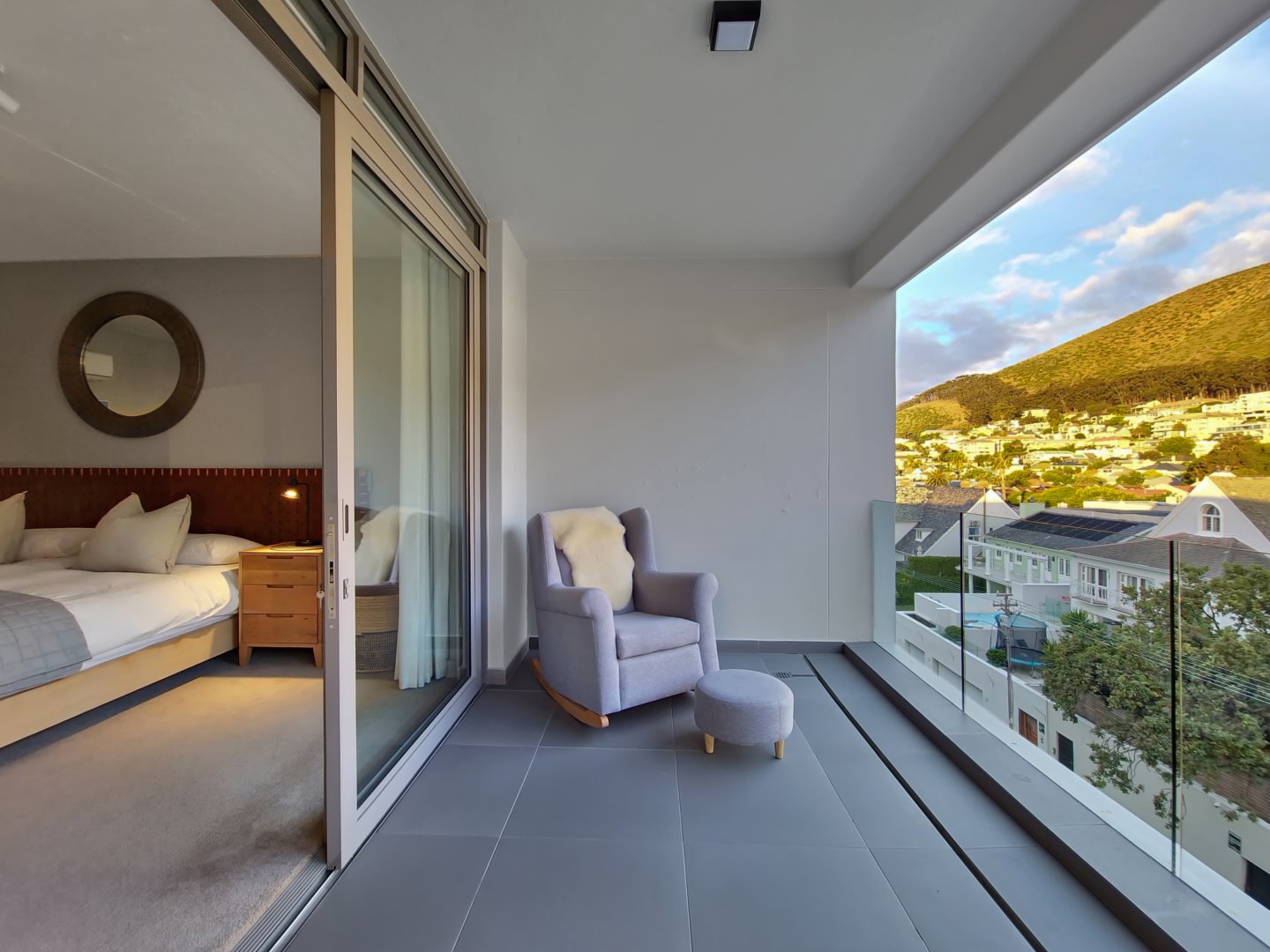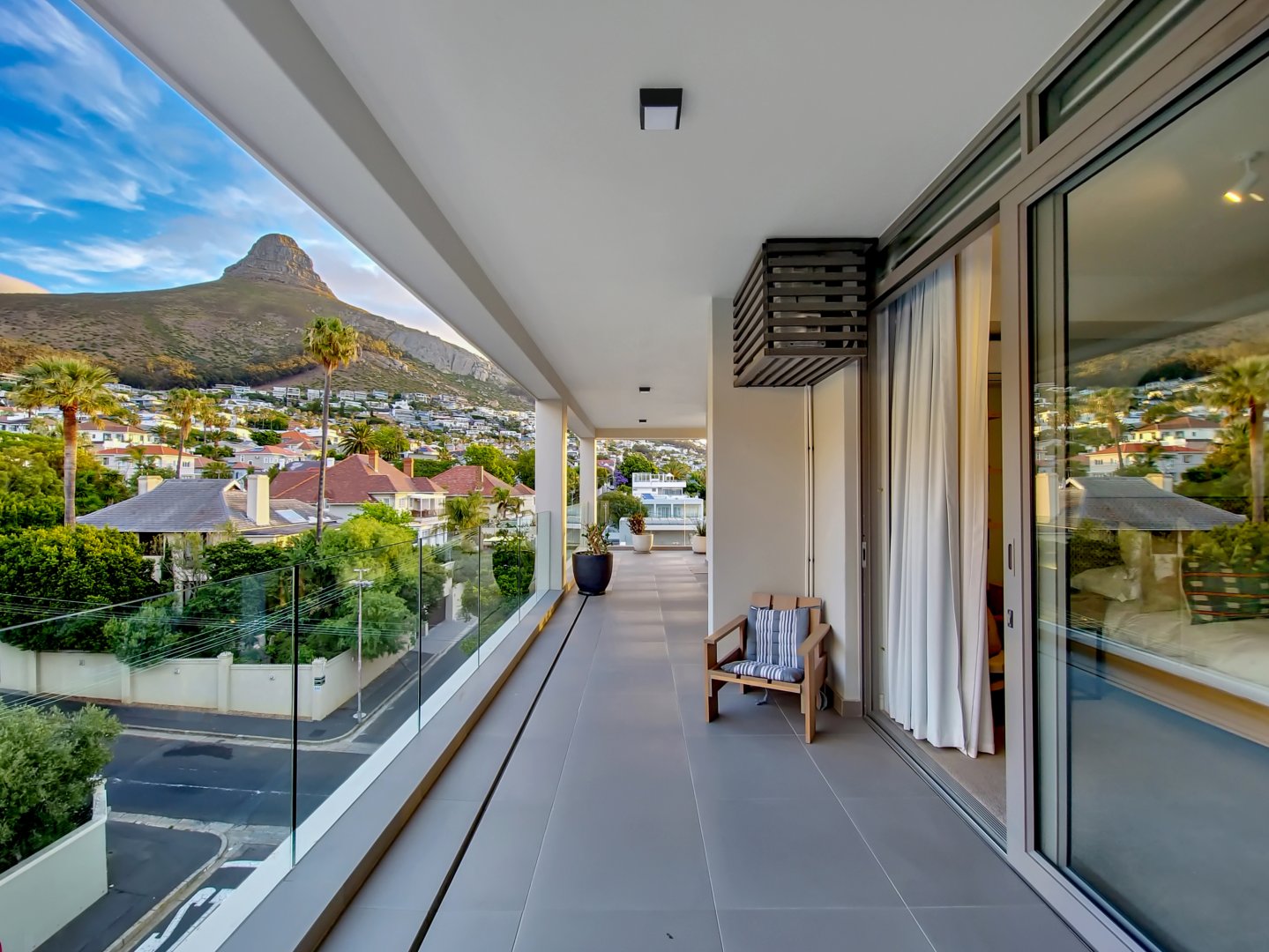 The three bedrooms contain built-in wardrobes, electric blackout blinds with linen curtains, entertainment units and air conditioning throughout. There are 2 beautiful en suite bathrooms each with underfloor heating. Besides the bedrooms is a versatile utility room for all cleaning needs. All 3 bedrooms connect to a wraparound balcony with views of Lion’s Head.