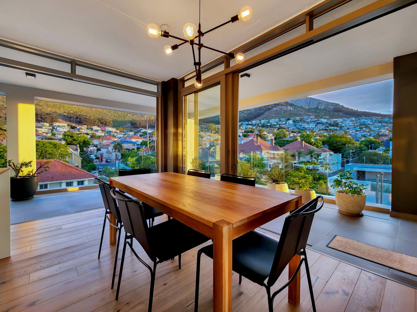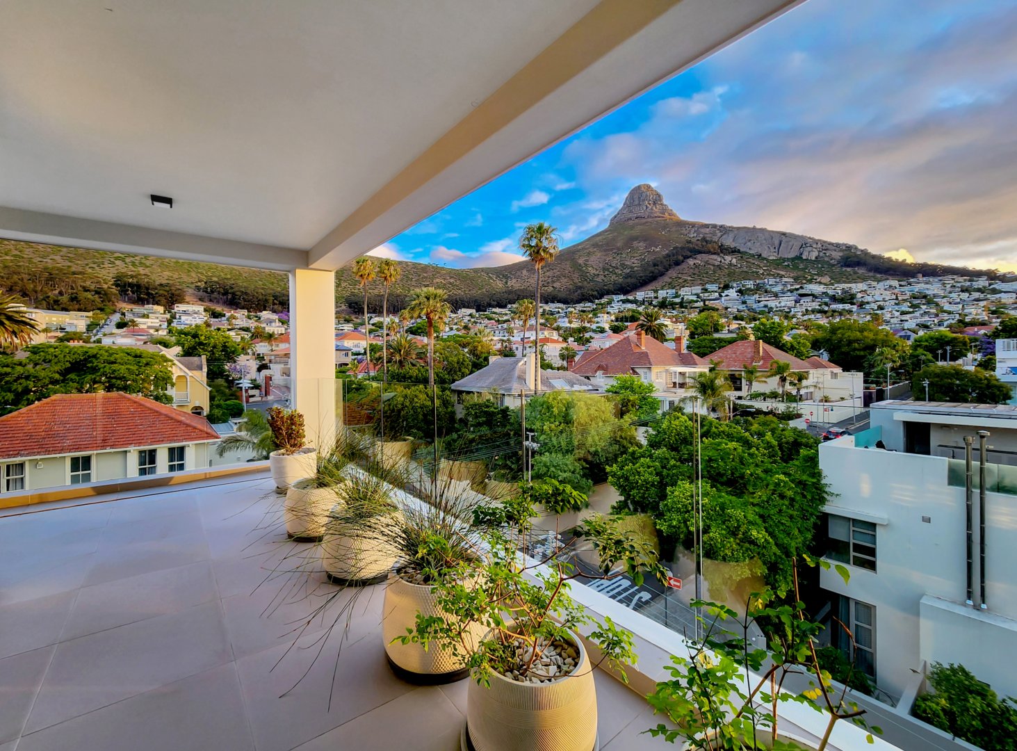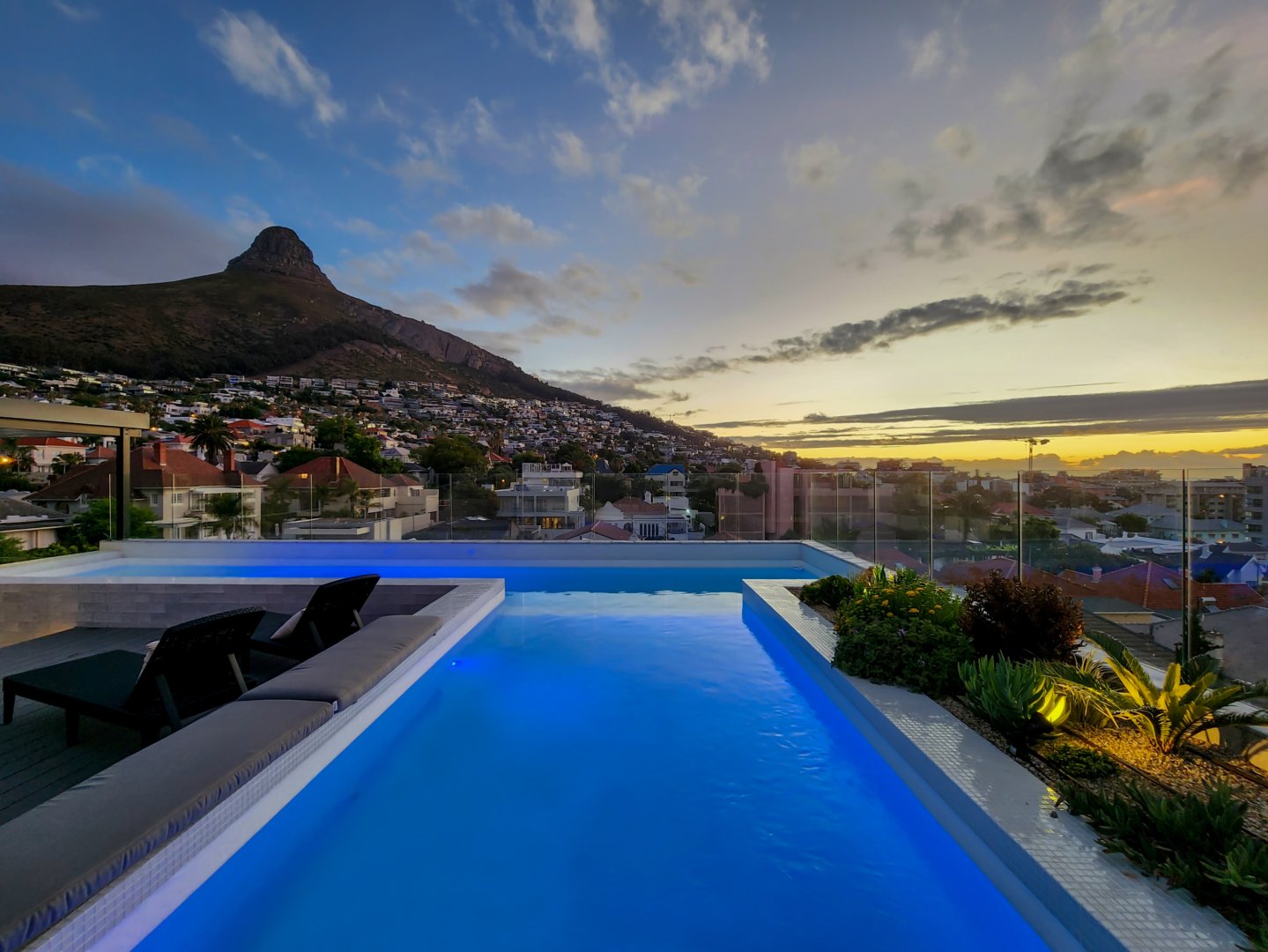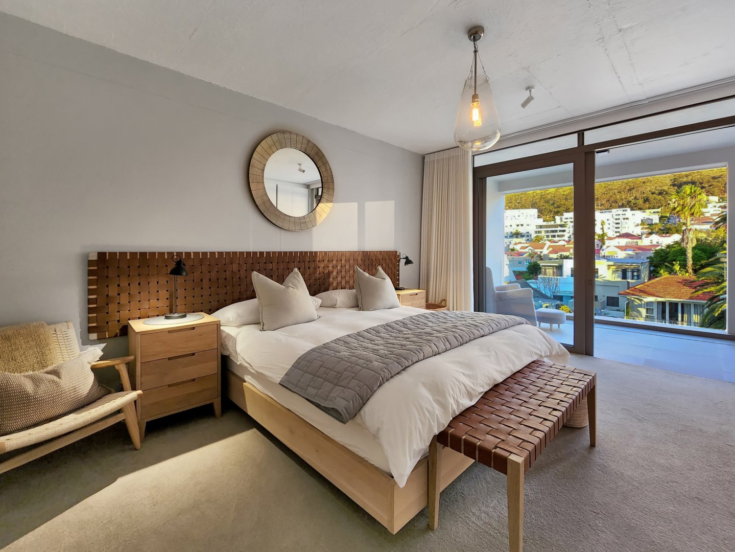 The three bedrooms contain built-in wardrobes, electric blackout blinds with linen curtains, entertainment units and air conditioning throughout. There are 2 beautiful en suite bathrooms each with underfloor heating. Besides the bedrooms is a versatile utility room for all cleaning needs. All 3 bedrooms connect to a wraparound balcony with views of Lion’s Head.