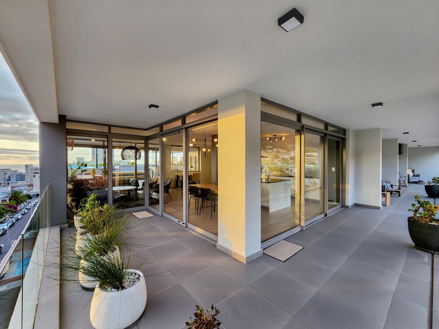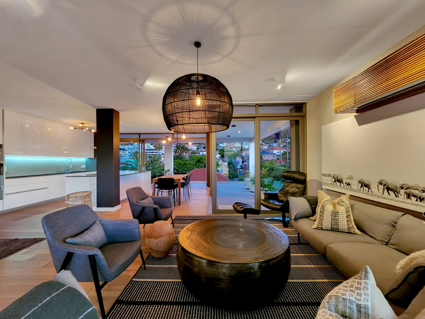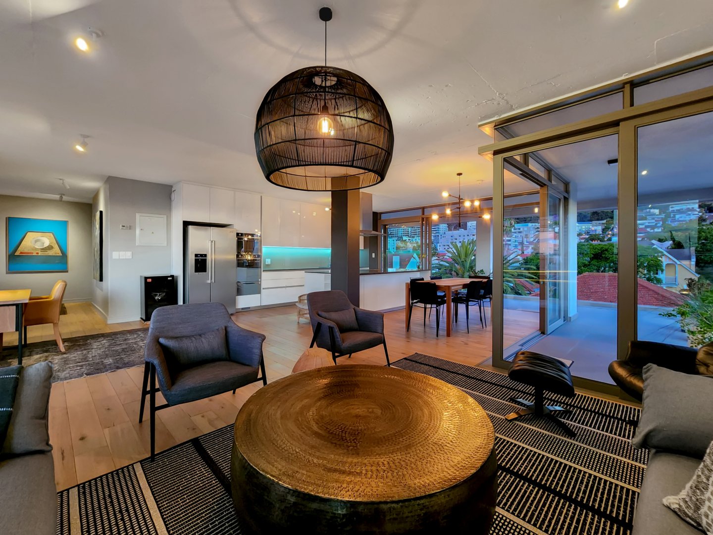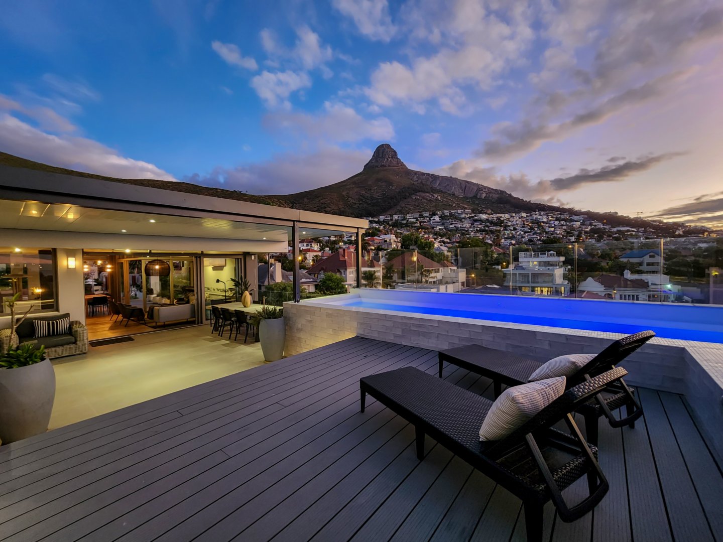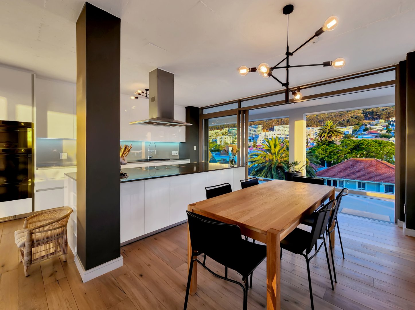 The three bedrooms contain built-in wardrobes, electric blackout blinds with linen curtains, entertainment units and air conditioning throughout. There are 2 beautiful en suite bathrooms each with underfloor heating. Besides the bedrooms is a versatile utility room for all cleaning needs. All 3 bedrooms connect to a wraparound balcony with views of Lion’s Head.