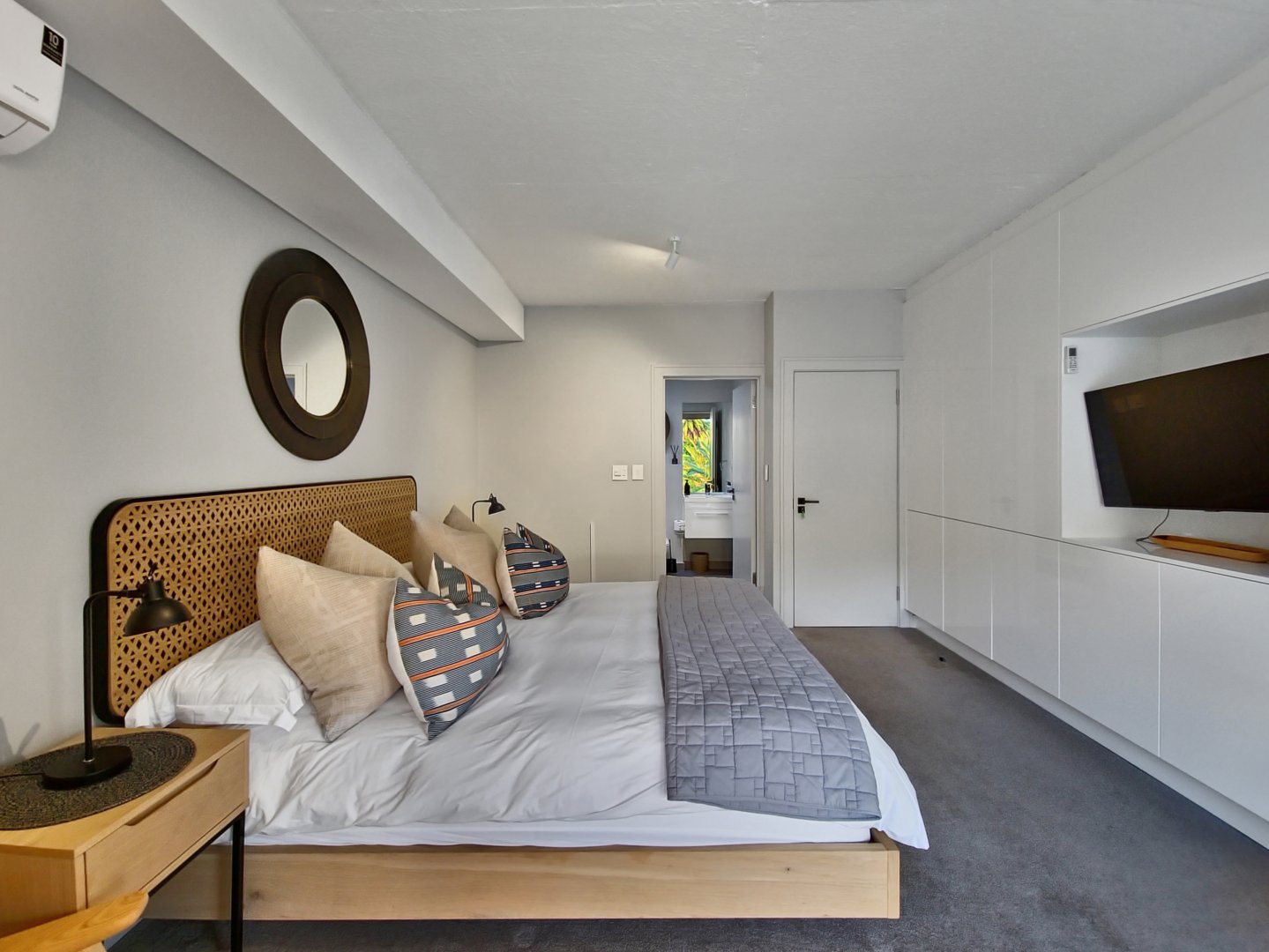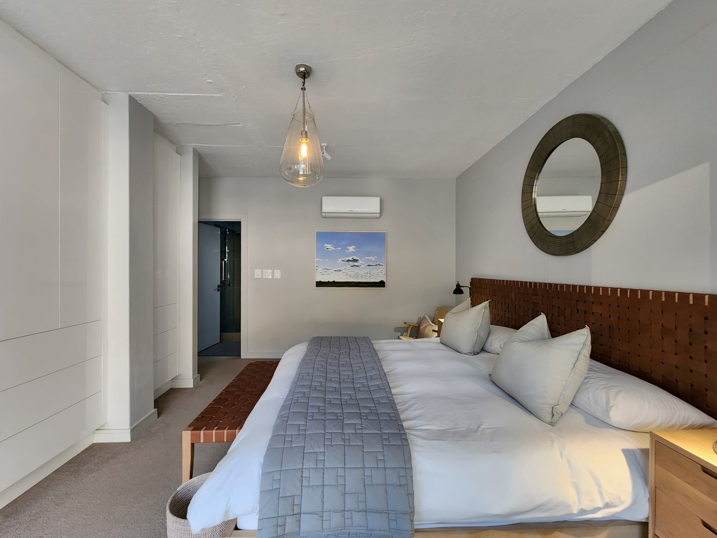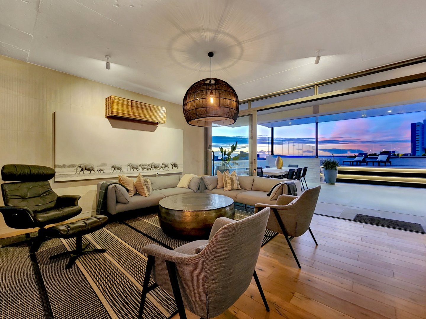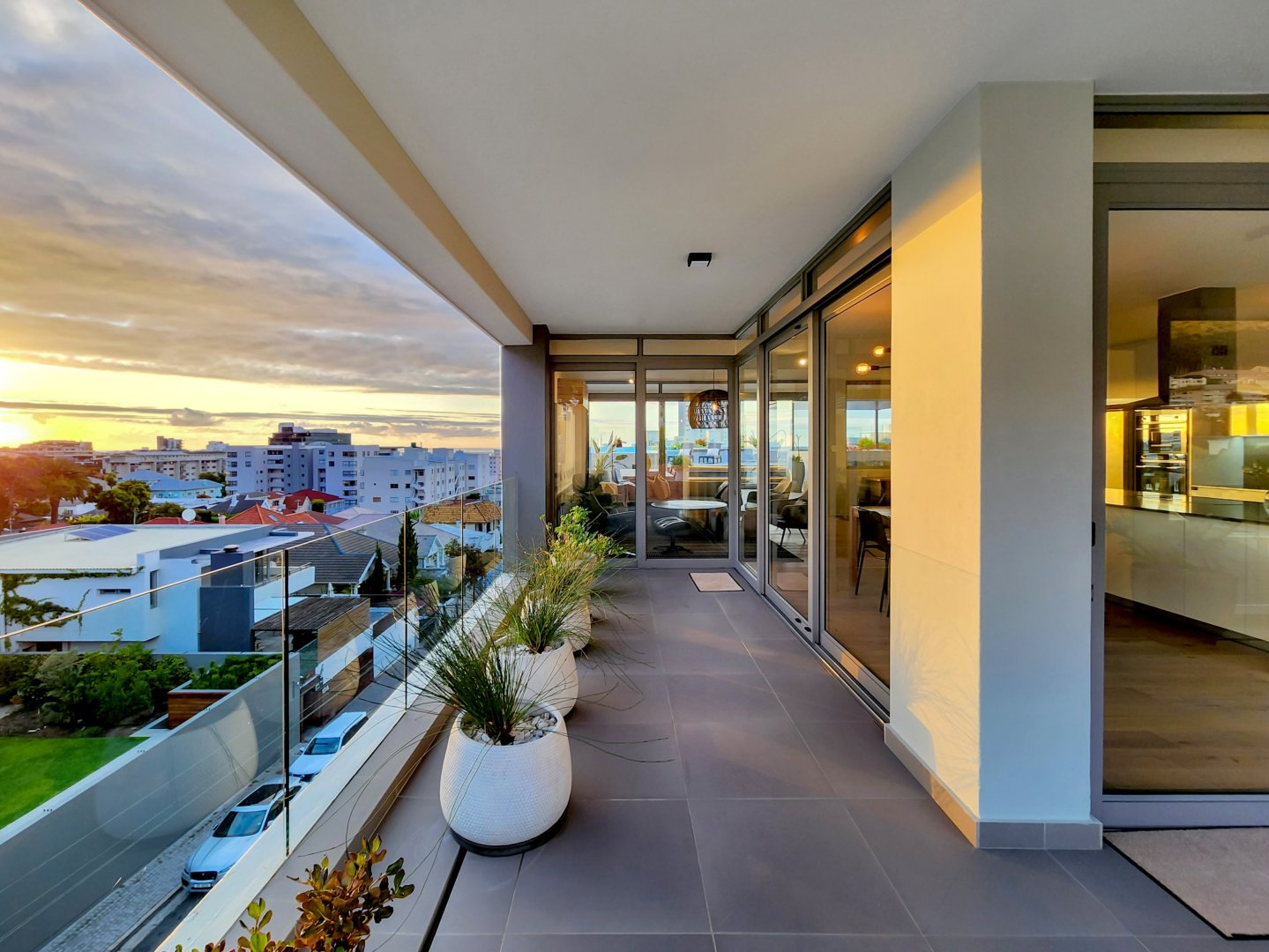 The three bedrooms contain built-in wardrobes, electric blackout blinds with linen curtains, entertainment units and air conditioning throughout. There are 2 beautiful en suite bathrooms each with underfloor heating. Besides the bedrooms is a versatile utility room for all cleaning needs. All 3 bedrooms connect to a wraparound balcony with views of Lion’s Head.