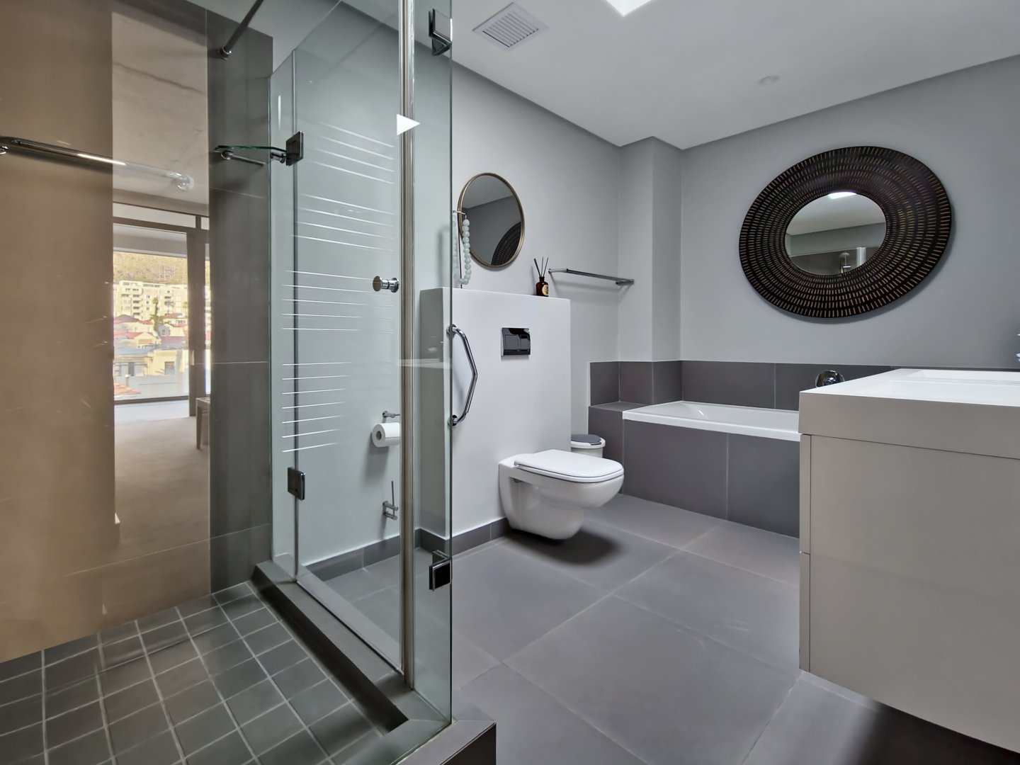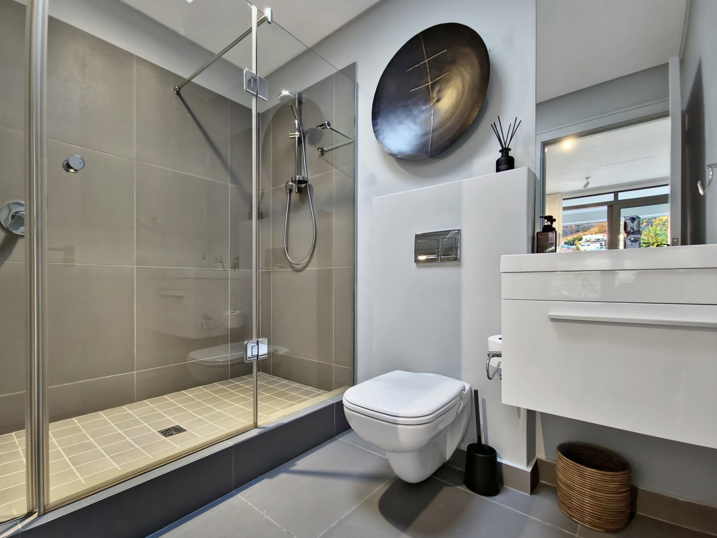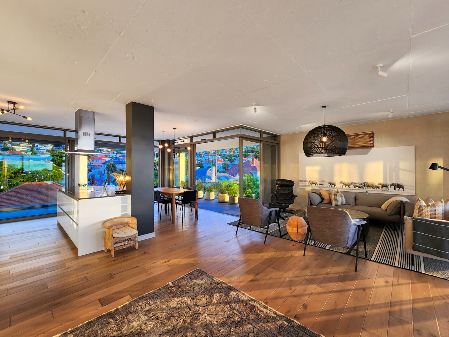 The wonderfully spacious living area contains floor-to-ceiling sliding windows, which make you feel as if you were living above the trees of Fresnaye. Open plan kitchen with large cooking island sits beside your indoor dining with cloakroom. A spacious lounge opens onto the covered 260 sqm terrace which creates seamless indoor/ outdoor living.