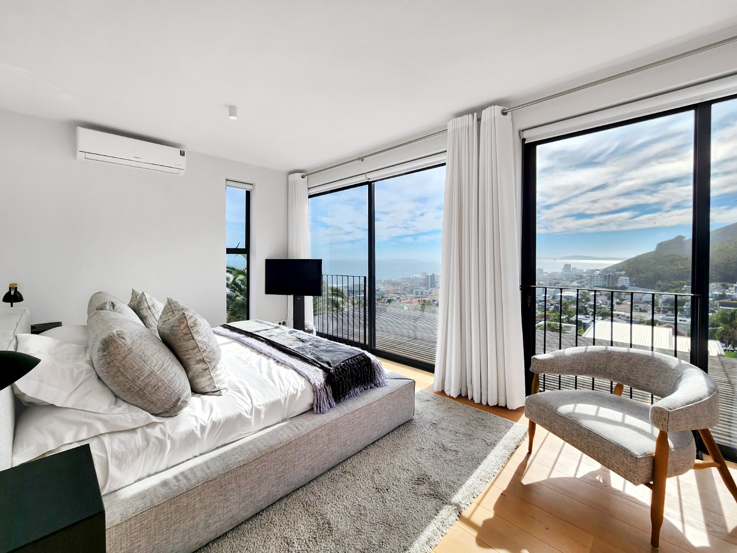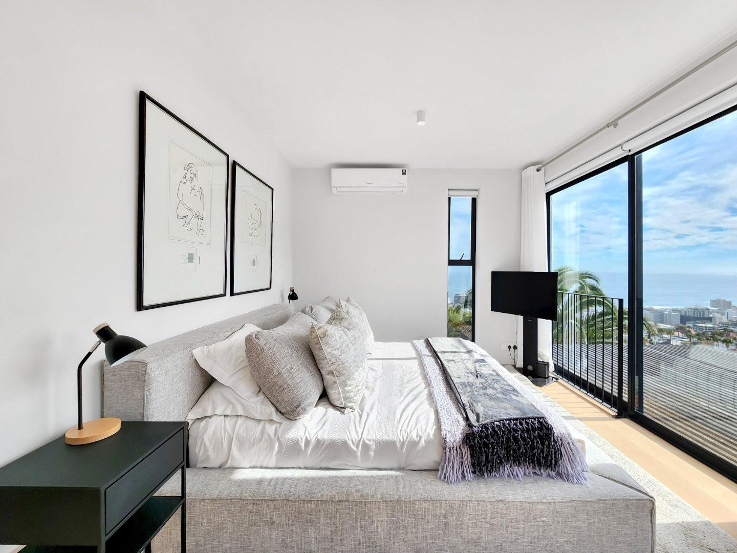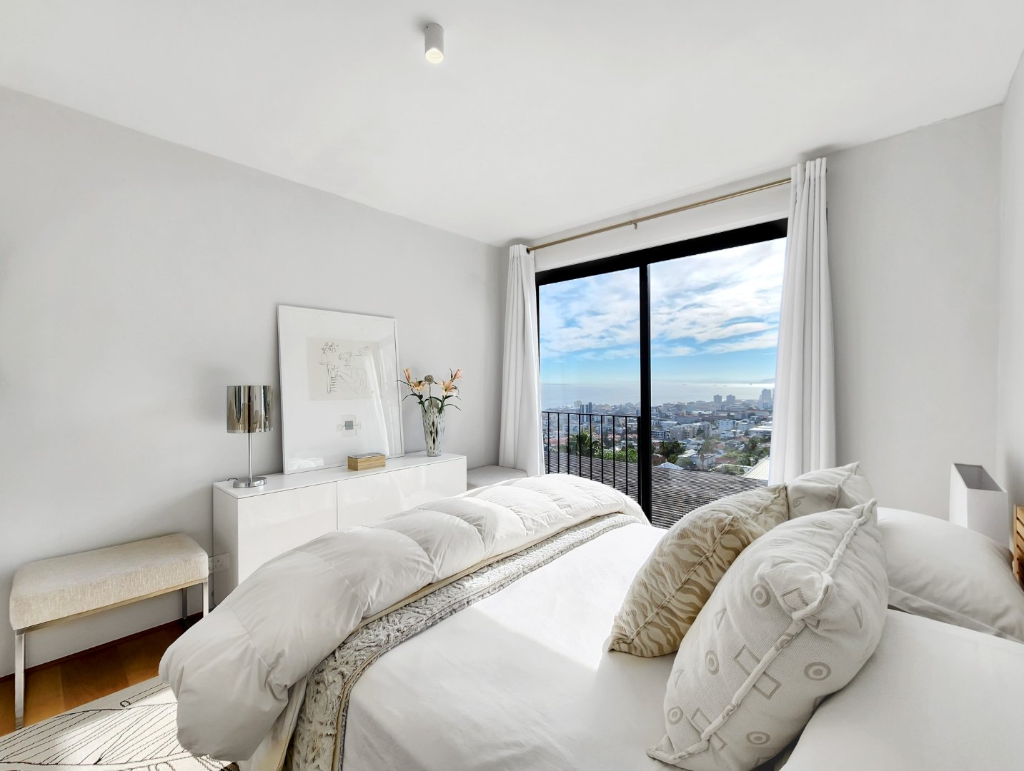 Perched high above the Atlantic Seaboard, this exceptional two-bedroom penthouse offers panoramic views stretching all the way to Robben Island. One of only three residences in a boutique development, this home blends minimalistic Mexican-inspired design with luxurious finishes to create a serene and sophisticated living space.