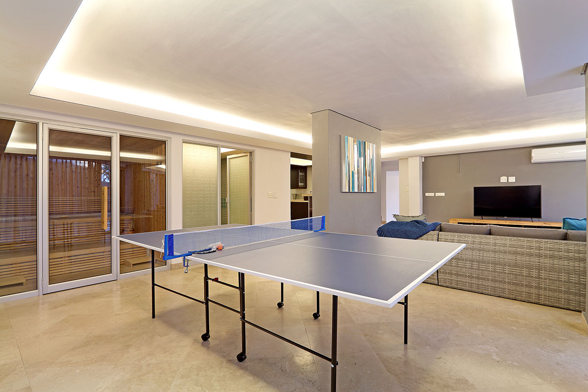 Downstairs entertainment area: Bar, Lounge 2 Table Tennis, Sauna, TV with Full DSTV Package, Air-conditioning