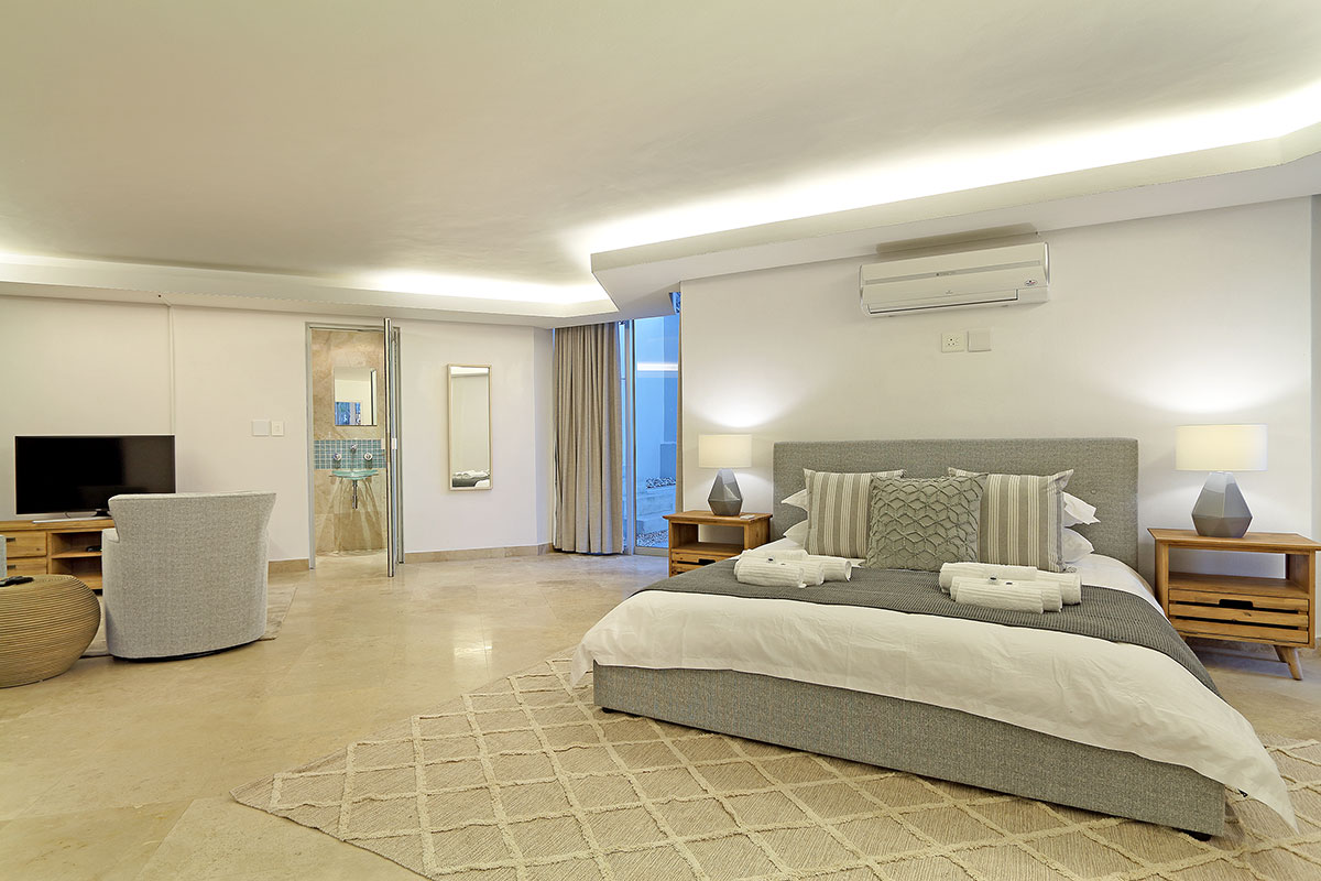 Main Bedroom (Upstairs): King Size Bed, En-Suite Bathroom (Shower & Bath), Air-conditioning, TV with Full DSTV Package