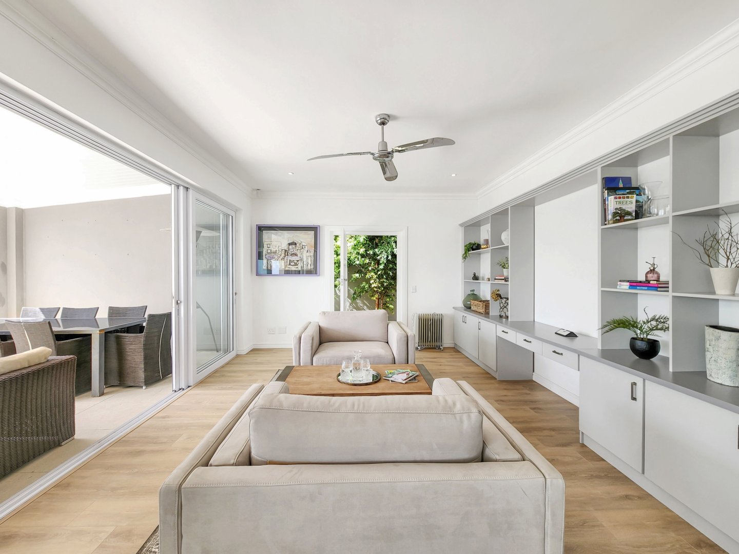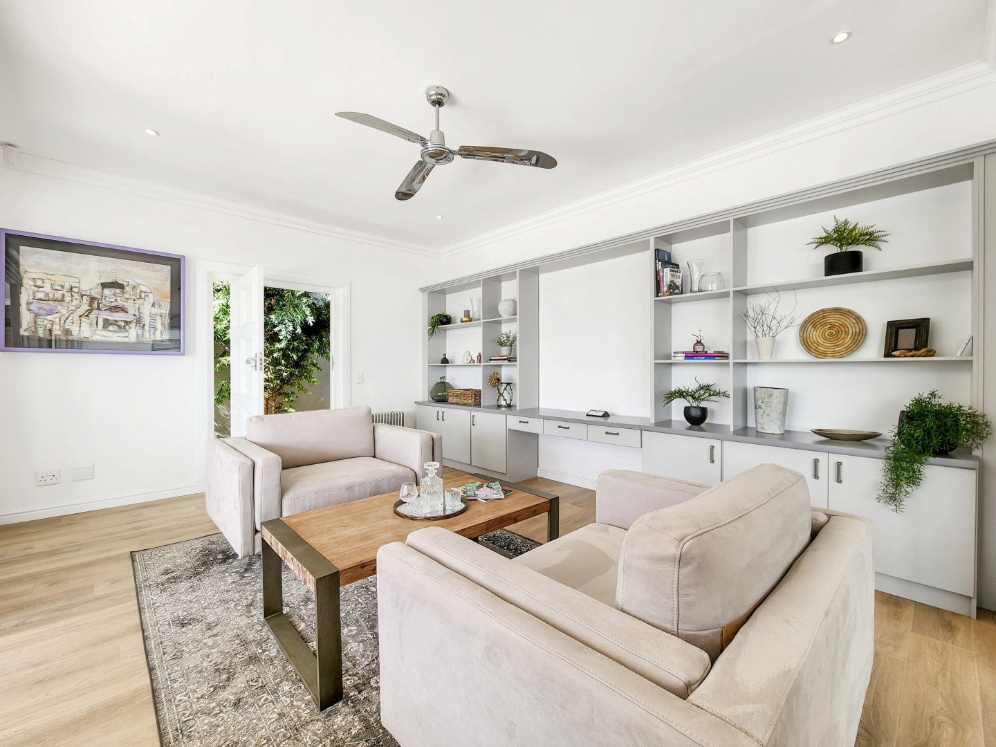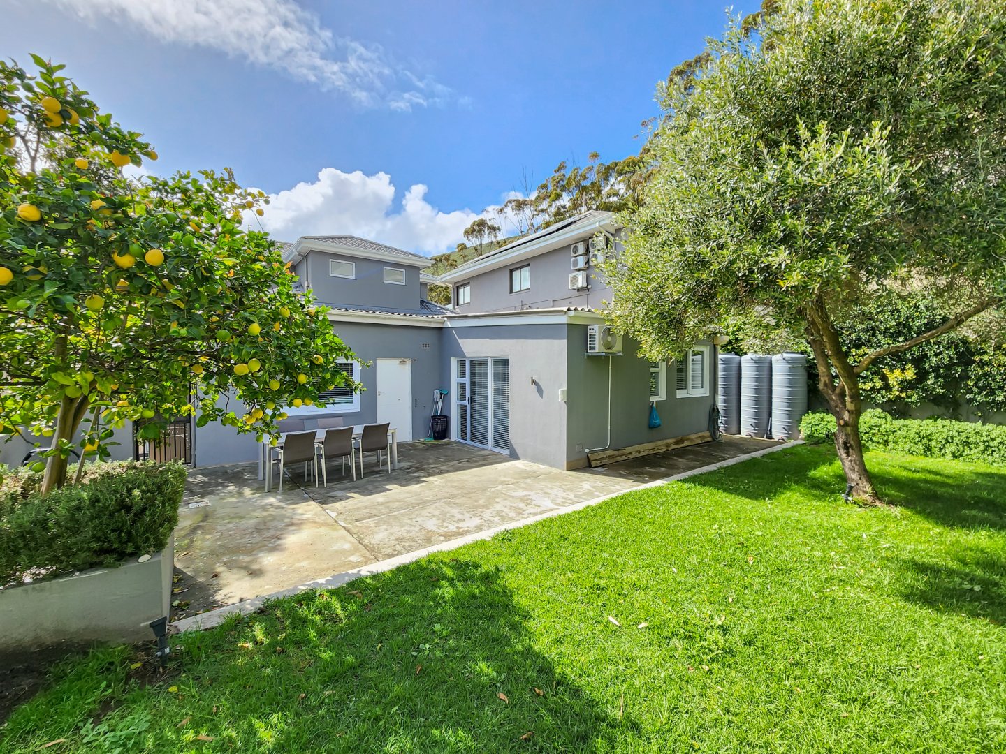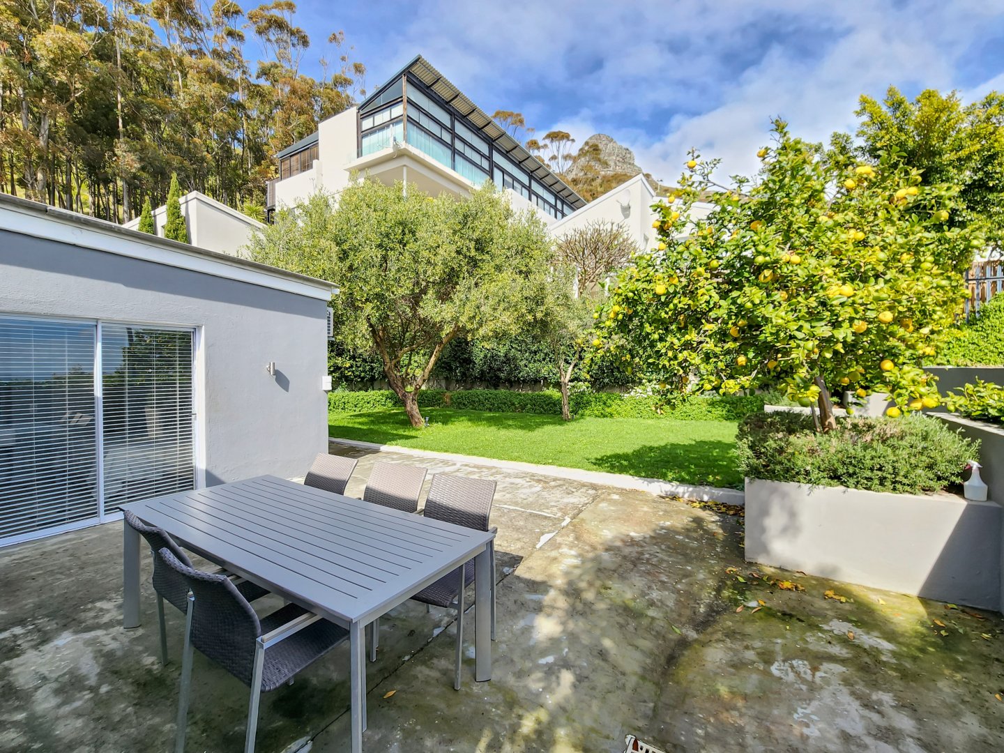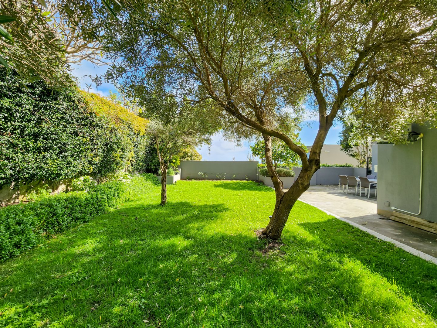 The Space: Effortless entertaining is facilitated by the terrace’s dining setup, comfortable lounge area, and Weber barbecue. A fully serviced plunge pool with sparkling blue water awaits for refreshing dips after leisurely days basking on the deck chairs. To the rear, an enchanting garden graced by lemon and olive trees sets the scene for Mediterranean-inspired alfresco dining experiences.