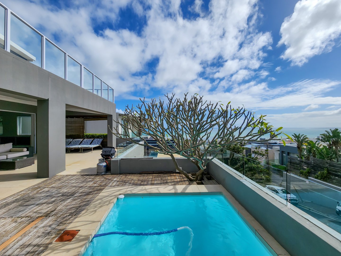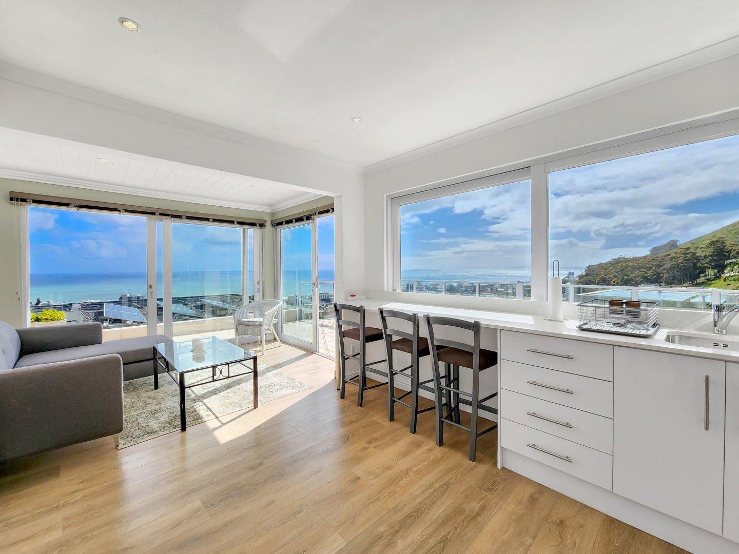 This expansive residence is perfectly suited for family or group vacations and is equipped with a UPS and generator to navigate through load-shedding. Additionally, it provides direct access to hiking trails on Lion’s Head, renowned for its captivating sunsets and sweeping Atlantic vistas.